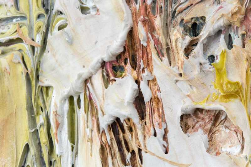 Layered impasto swaths in a palette of orange, pink, white and grey are incised with dynamic sharp lines in this powerful composition by Adam Cohen. The painting is aptly titled Sirocco, a hot wind blowing from North Africa across the Mediterranean to southern Europe. This price is in USD.