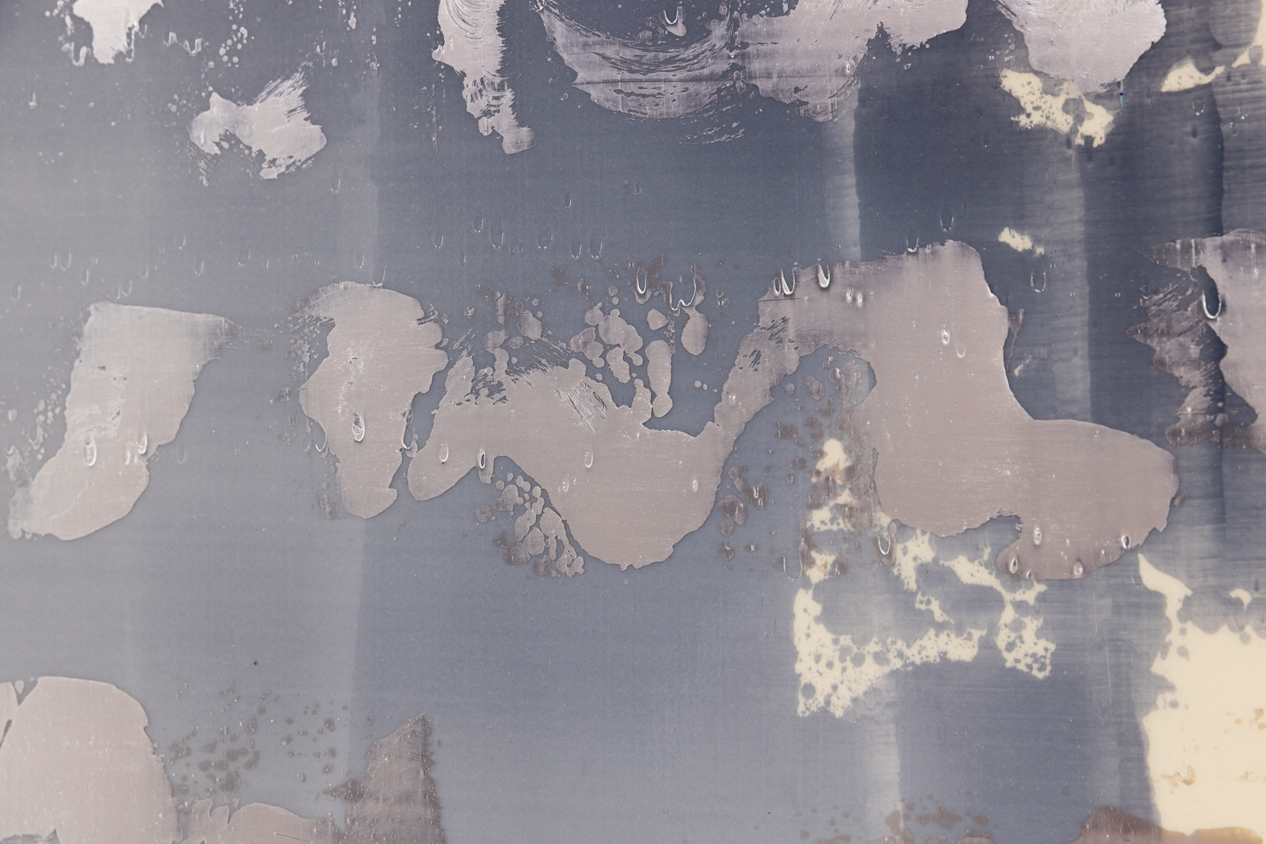 “I approach painting like a printmaker. So the preparation of the paint and everything around me has to be in place. Each preparation of the surface is one short gesture. Most of the time is spent on the layers to create that depth. Then I add punctuation marks…it could be a mark or a little arabesque-like gesture.” Alice Teichert