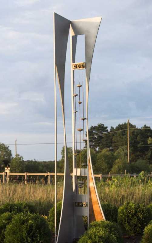 Copper burnished in fire, solid brass, piano wires, nylon, aluminum blasted with glass beads and stones—these are the elements used to create Alice Vander Vennen’s elegant new sculpture, Dance. For the past ten years Vander Vennen has enjoyed working with mixed media assemblage, carefully arranged in shadow boxes. Now, the Canadian artist has re-imagined those pieces in this series of beautiful sculptures.“….my contemporary compositions invite connection with ancient wisdom and emergent stories through engagement with the natural world. This work pushes that form into the sculptural realm, exploring new possibilities of shadow and light, and invites a deeper dialogue with place.” Alice Vander Vennen