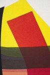 A striking black archway draws the viewer into a world of vivid colour in this abstract composition by Aron Hill. Pure acrylic ink washes in red, pale orange, green, bright yellow, pale green and gray intersect with crisp white behind the black figure. The Calgary artist’s minimalist work is informed by renowned modernists Jack Bush and William Perehudoff.“I’ve always approached my work from the standpoint of figurative work, oddly enough and I’m always drawn to figurative work.” Aron Hill