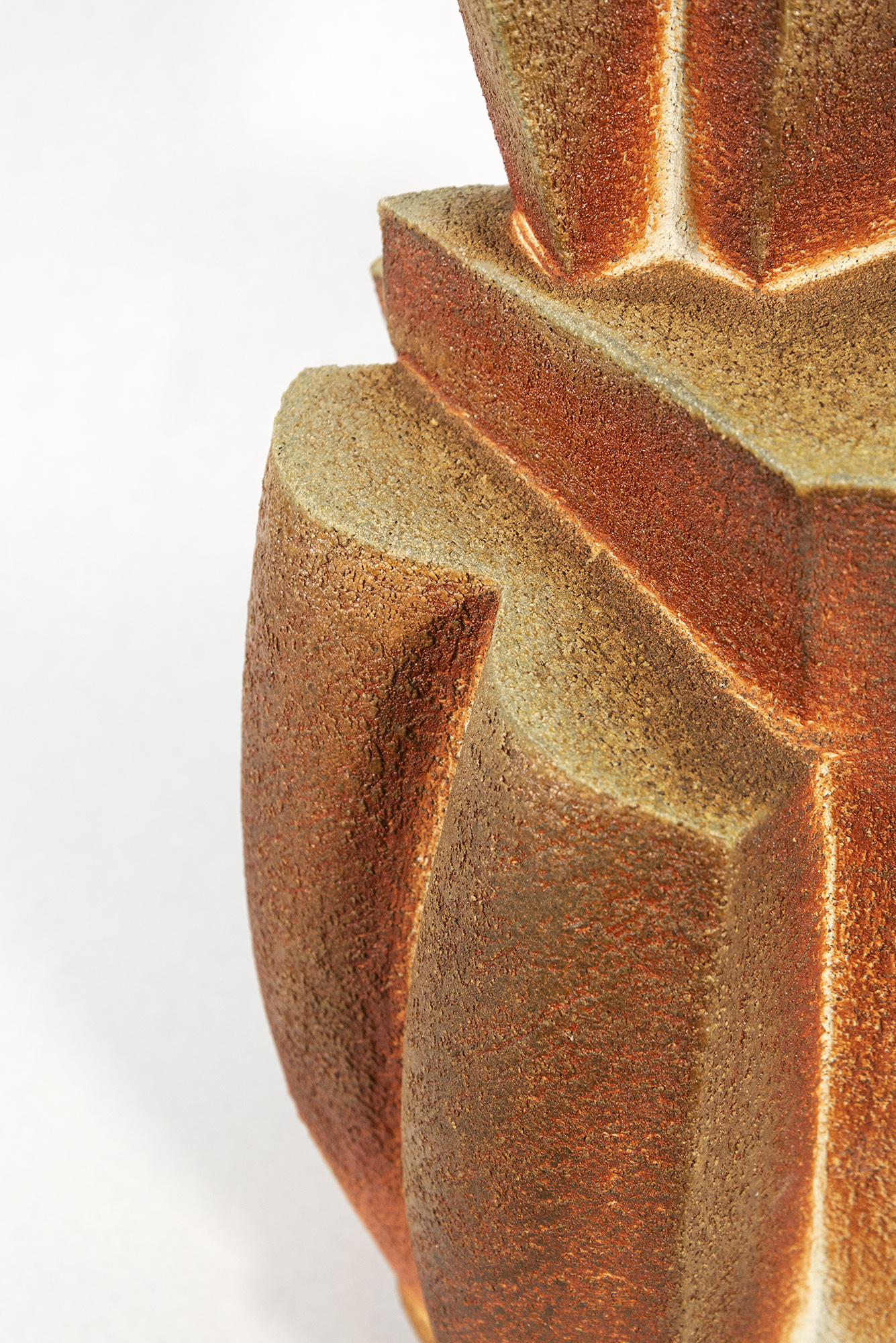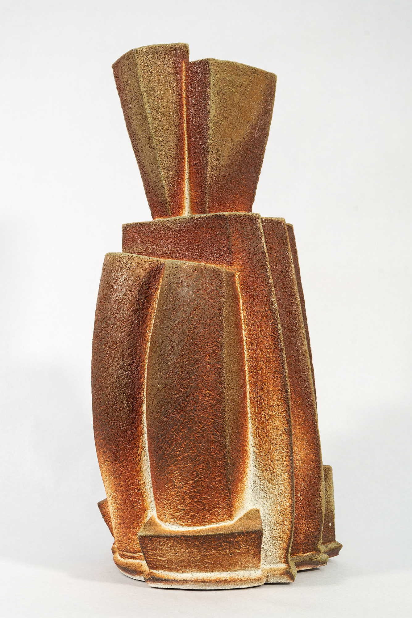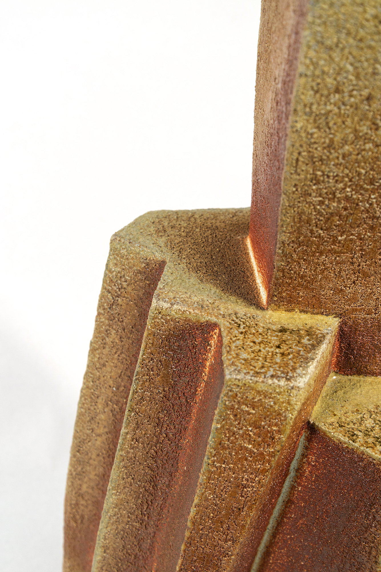This unique contemporary ceramic vessel is by Bruce Cochrane.The striking clay artwork of this Canadian artist has garnered him international attention, including several nominations for the esteemed Governor General’s Award for excellence. A master ceramicist, Cochrane’s ethereal work is wholly contemporary but inspired by the ancient global tradition of working with clay. At the heart of his work is a deep respect for aesthetics but a commitment to functionality. Cochrane has been firing clay for more than fifty years, having developed a signature style that is often described as both ‘tactile and dynamic. He is known for using wood firing, which creates the distinctive texture and rich clay colour variations evident in this unique piece.