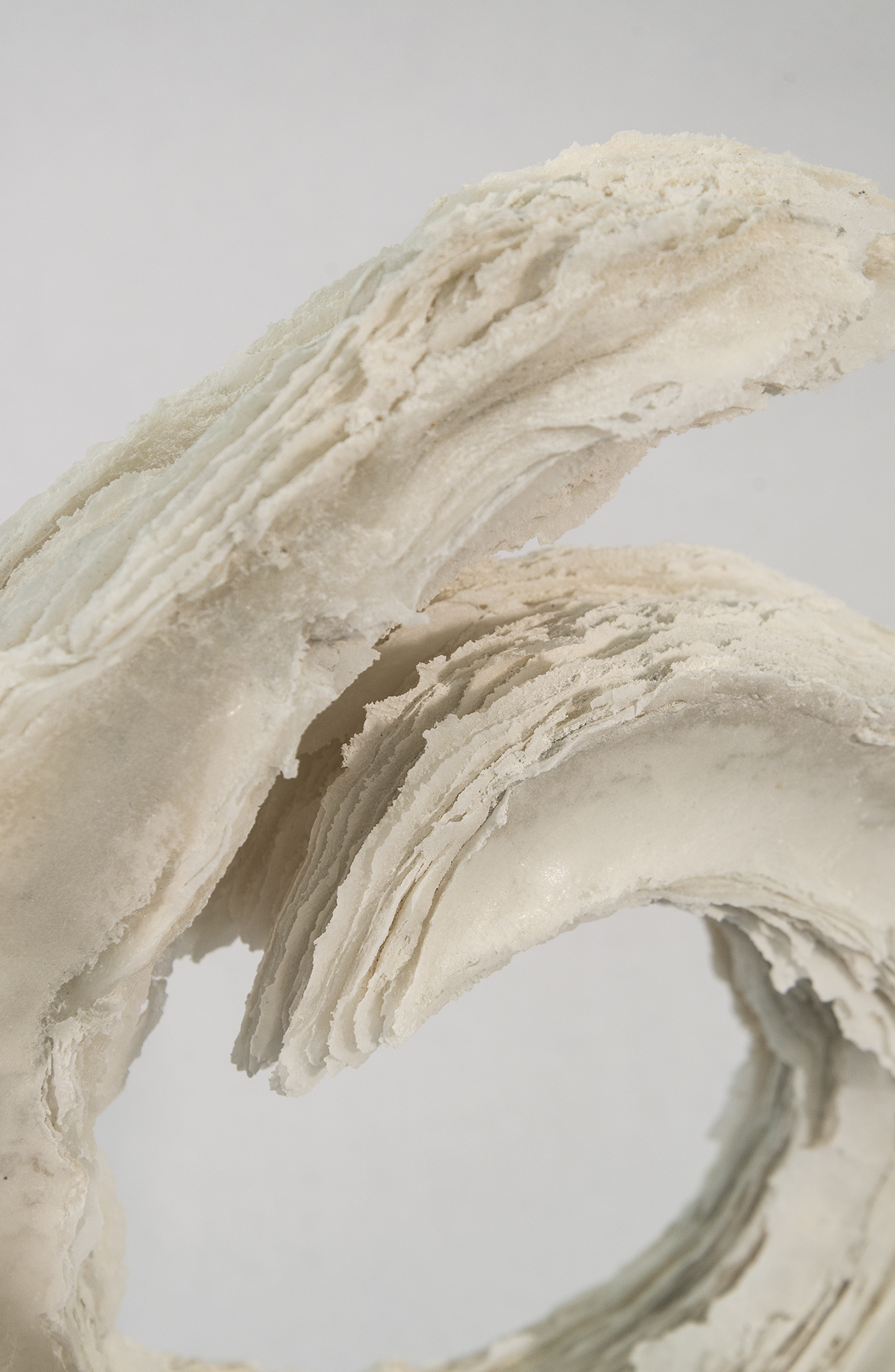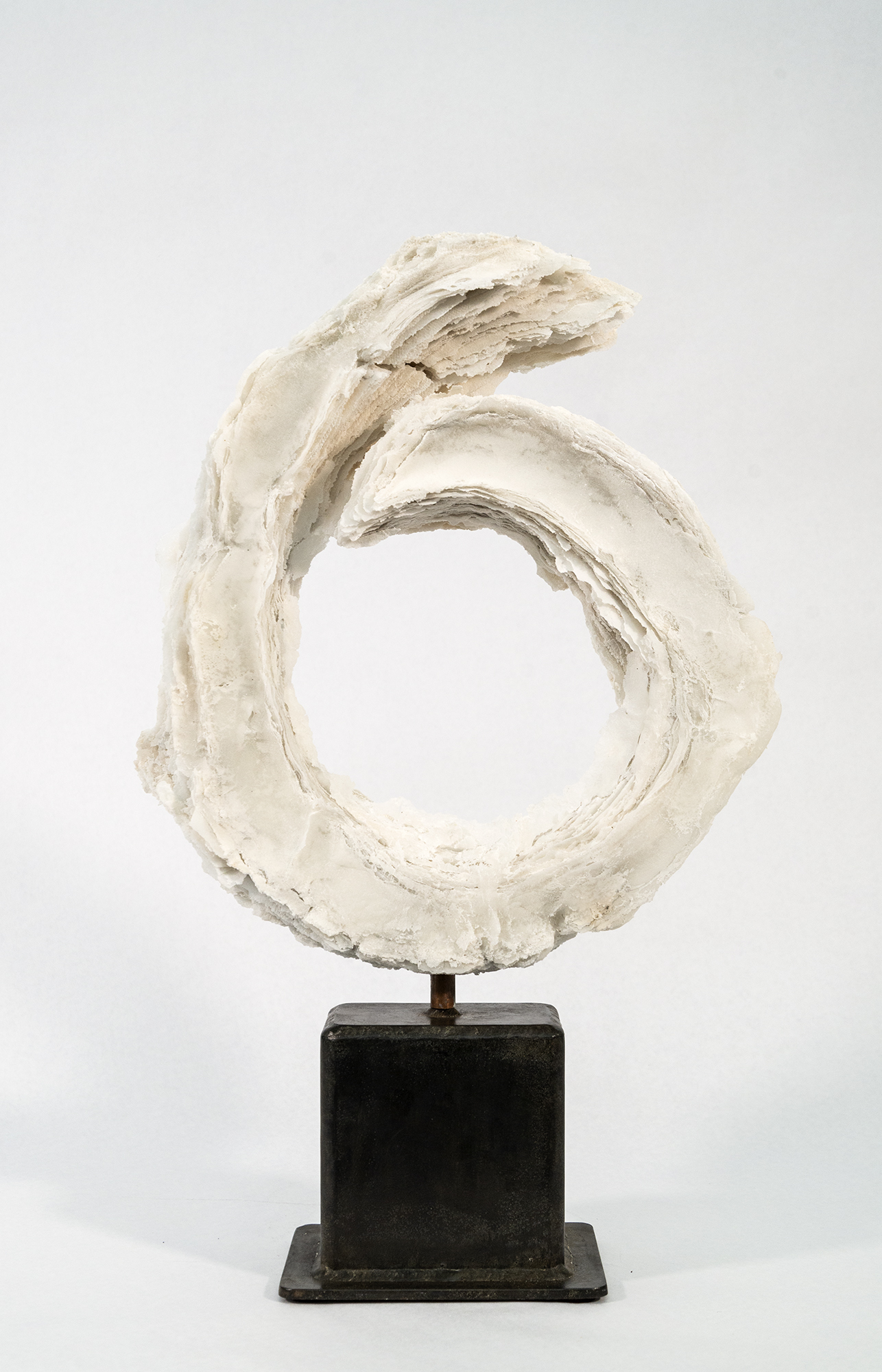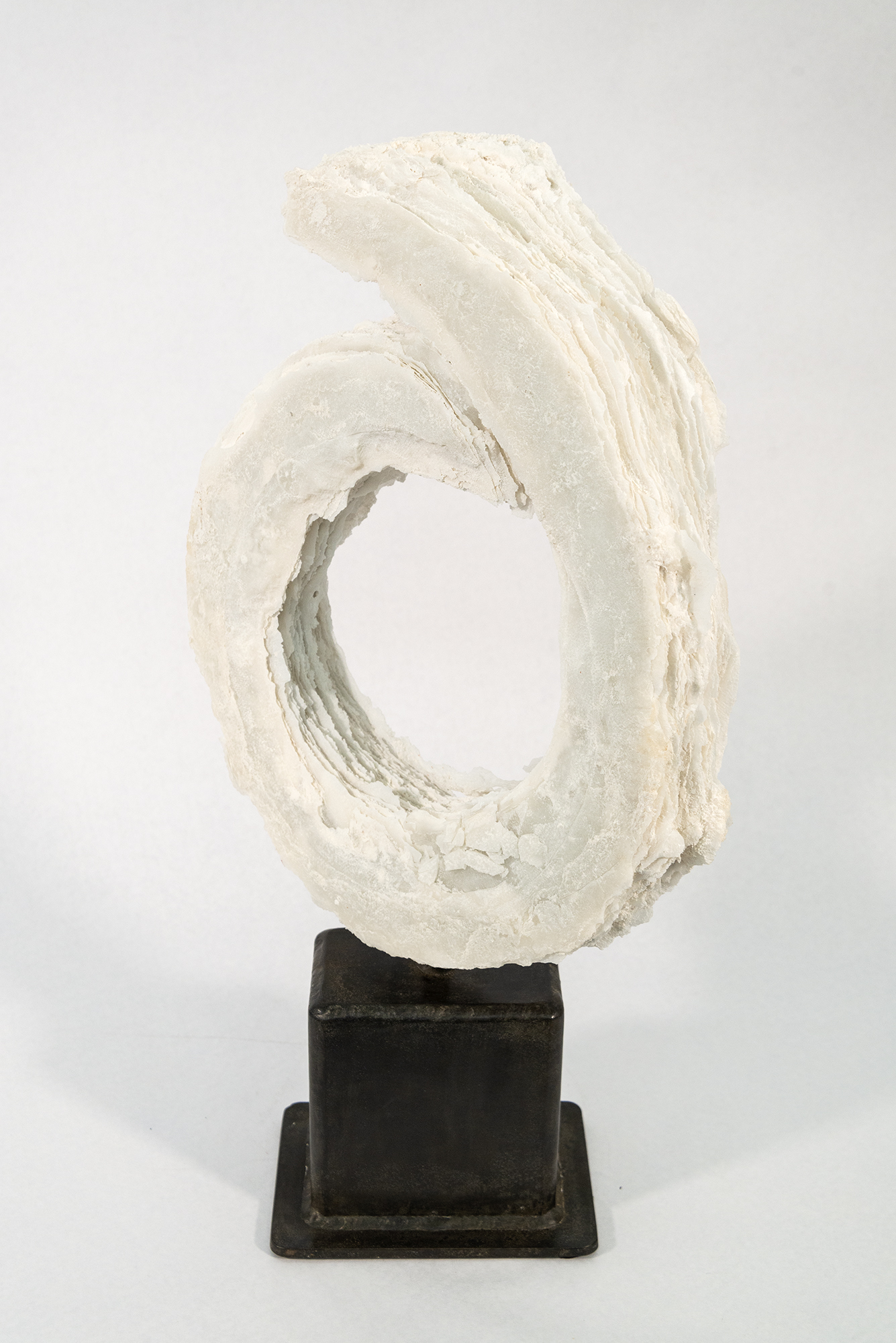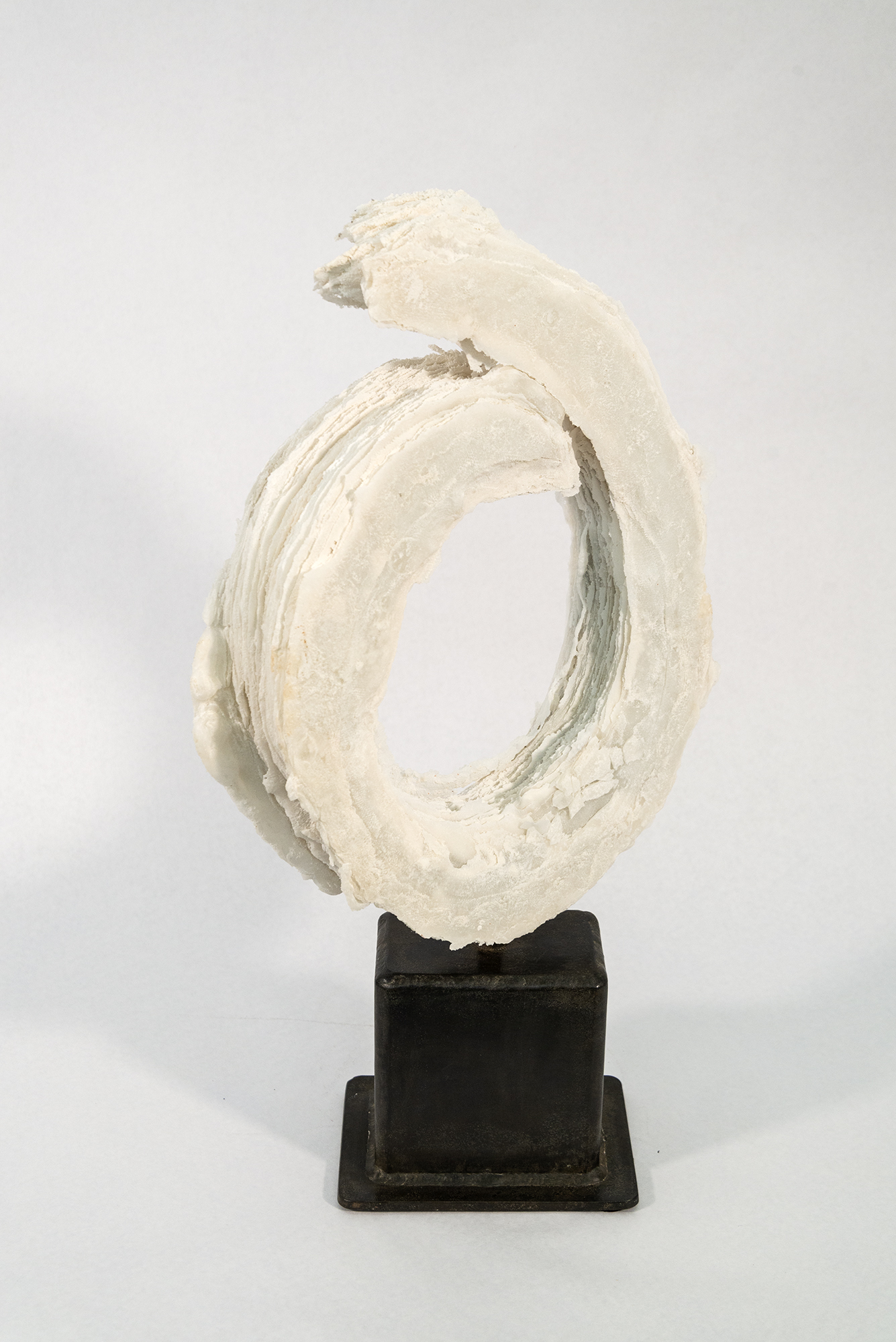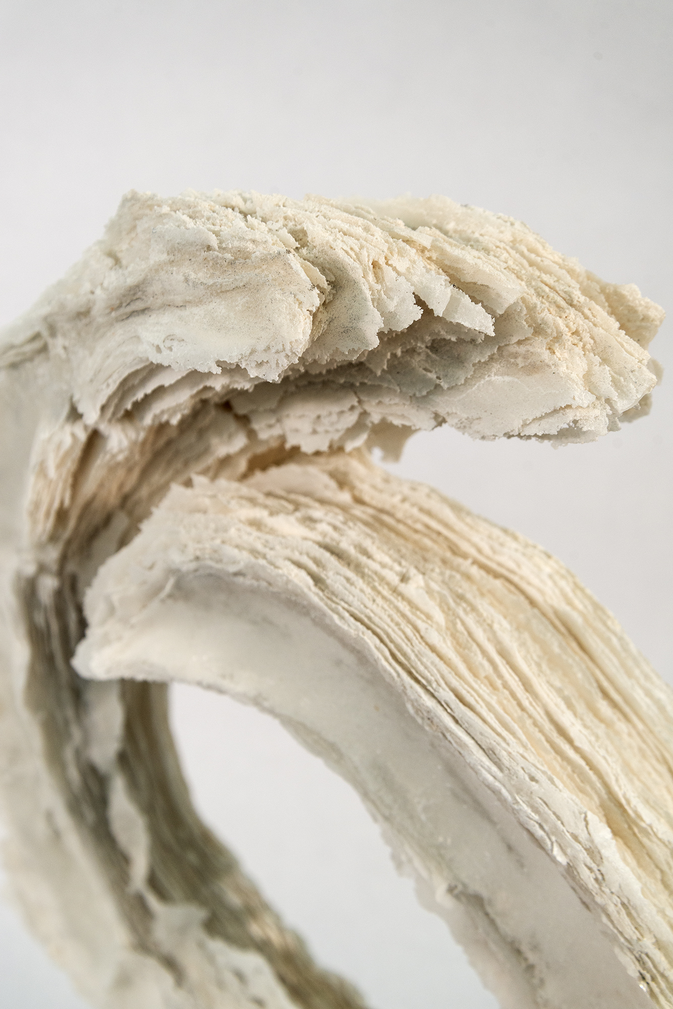 Like a glacial wave building before cresting, delicate layers of glass frit (ground glass) have been fired into a striking circular band in this sculpture by Cheryl Wilson-Smith. She explores themes of nature, culture, inheritance and time in work produced in her remote northern Ontario studio.“Glass is a perfect medium to explore this thought of the passage of time as its own rich history has been passed down through the generations. It takes a great deal of time to master its fragility and strength.” Cheryl Wilson-Smith