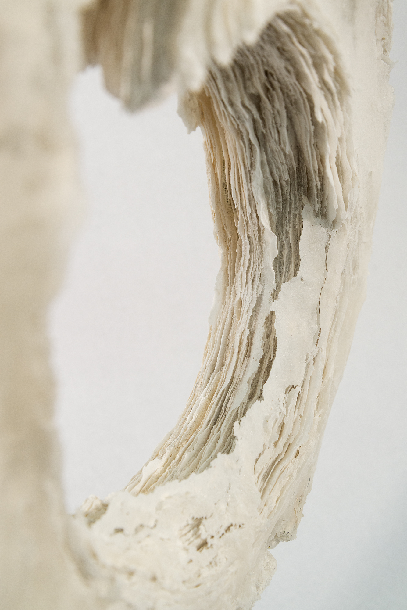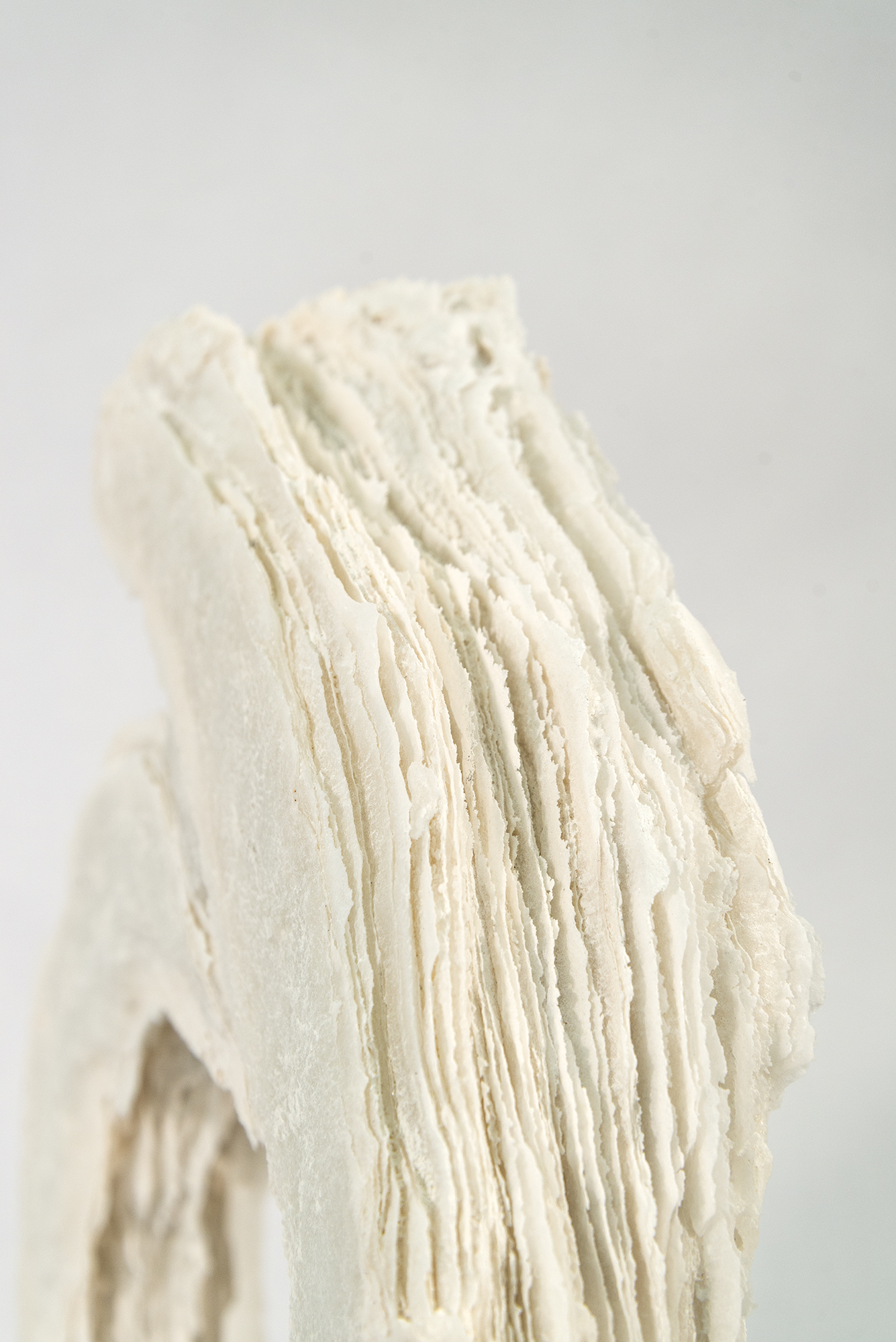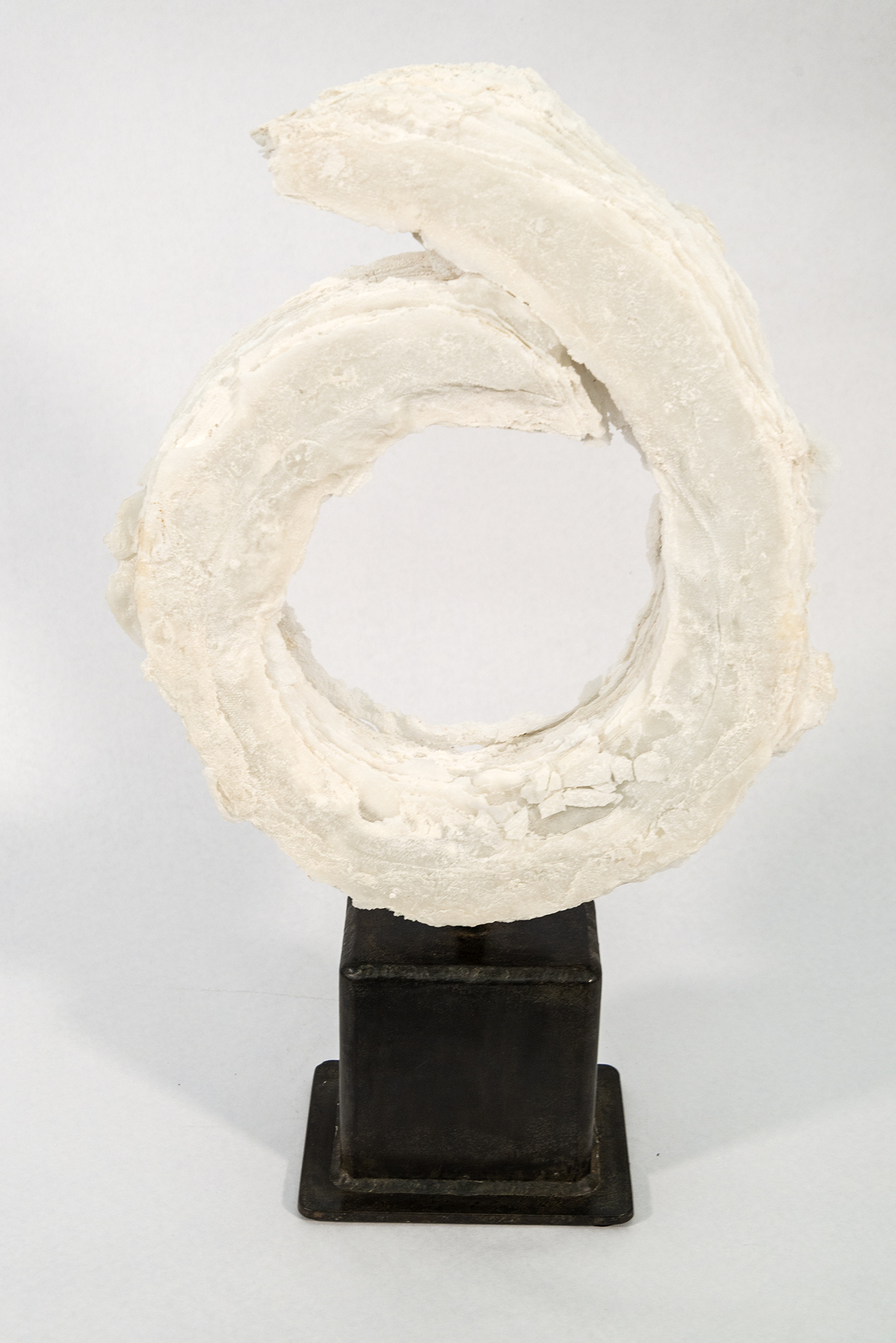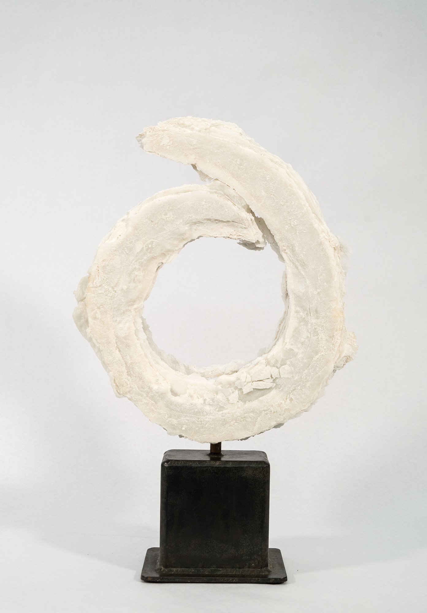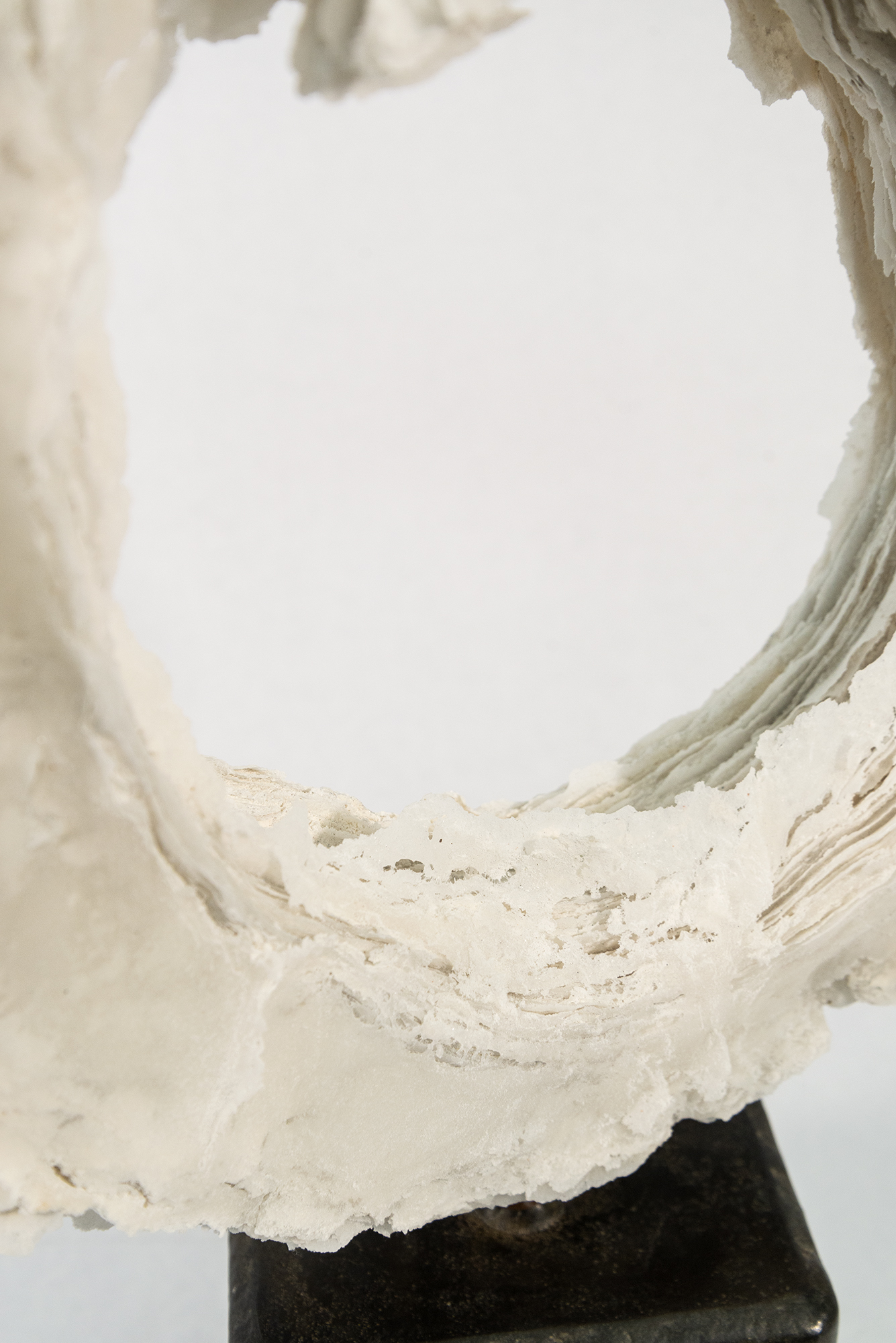 Like a glacial wave building before cresting, delicate layers of glass frit (ground glass) have been fired into a striking circular band in this sculpture by Cheryl Wilson-Smith. She explores themes of nature, culture, inheritance and time in work produced in her remote northern Ontario studio.“Glass is a perfect medium to explore this thought of the passage of time as its own rich history has been passed down through the generations. It takes a great deal of time to master its fragility and strength.” Cheryl Wilson-Smith