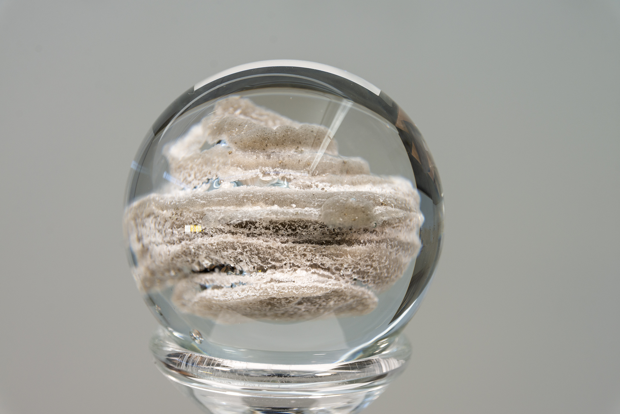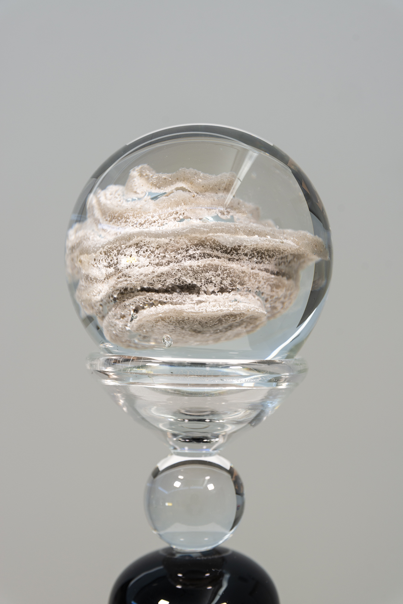 “I love collecting stones, as do many of my friends, and I am often in awe and wonder of what that simple-looking stone went through, both geologically ( pressure and forces) and historically. And when you hold the sphere that the " stone" is encased in, up to a window, you see the optics of the landscape outside. It is condensed and inverted. ( so you are seeing the world).” Cheryl Wilson Smith