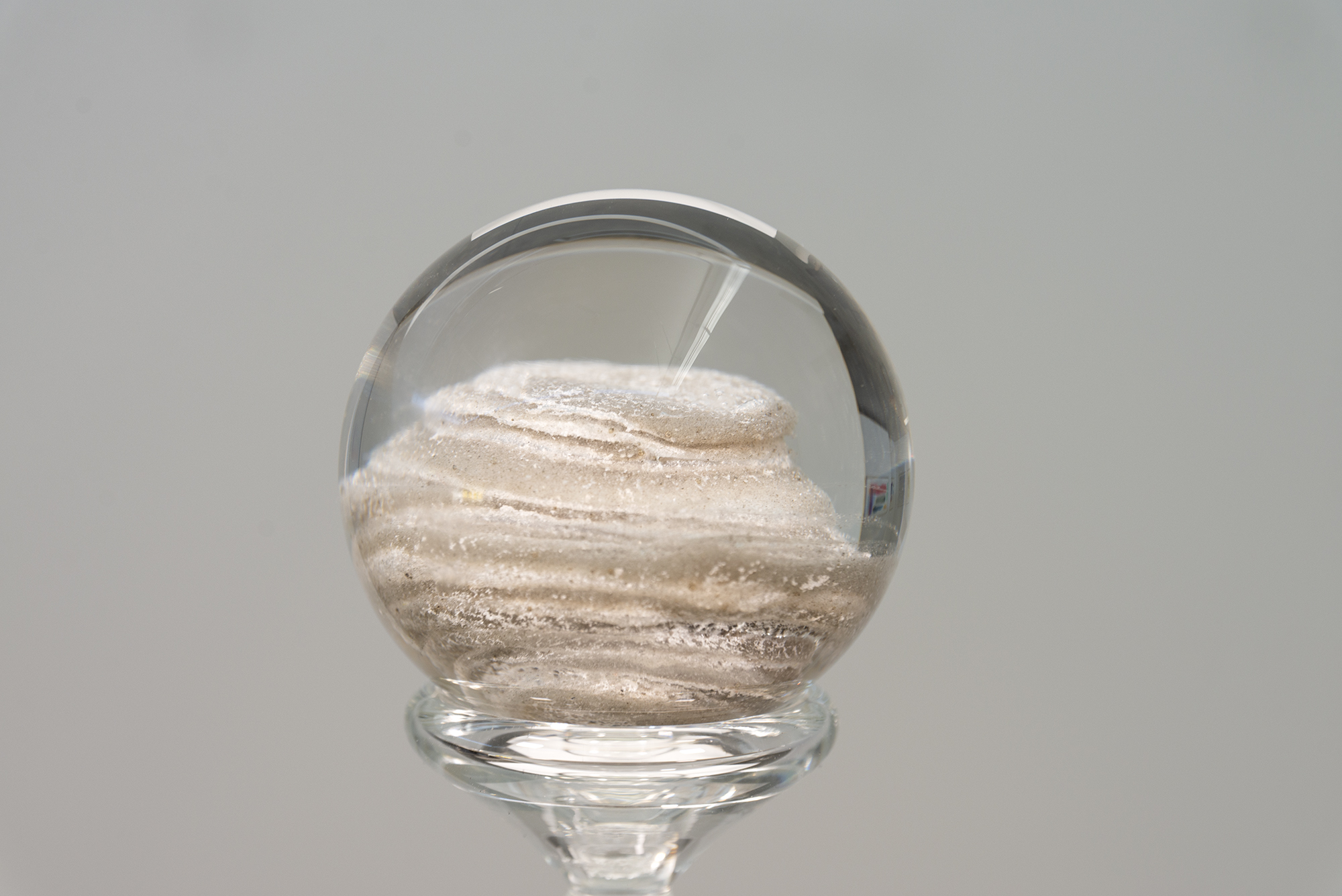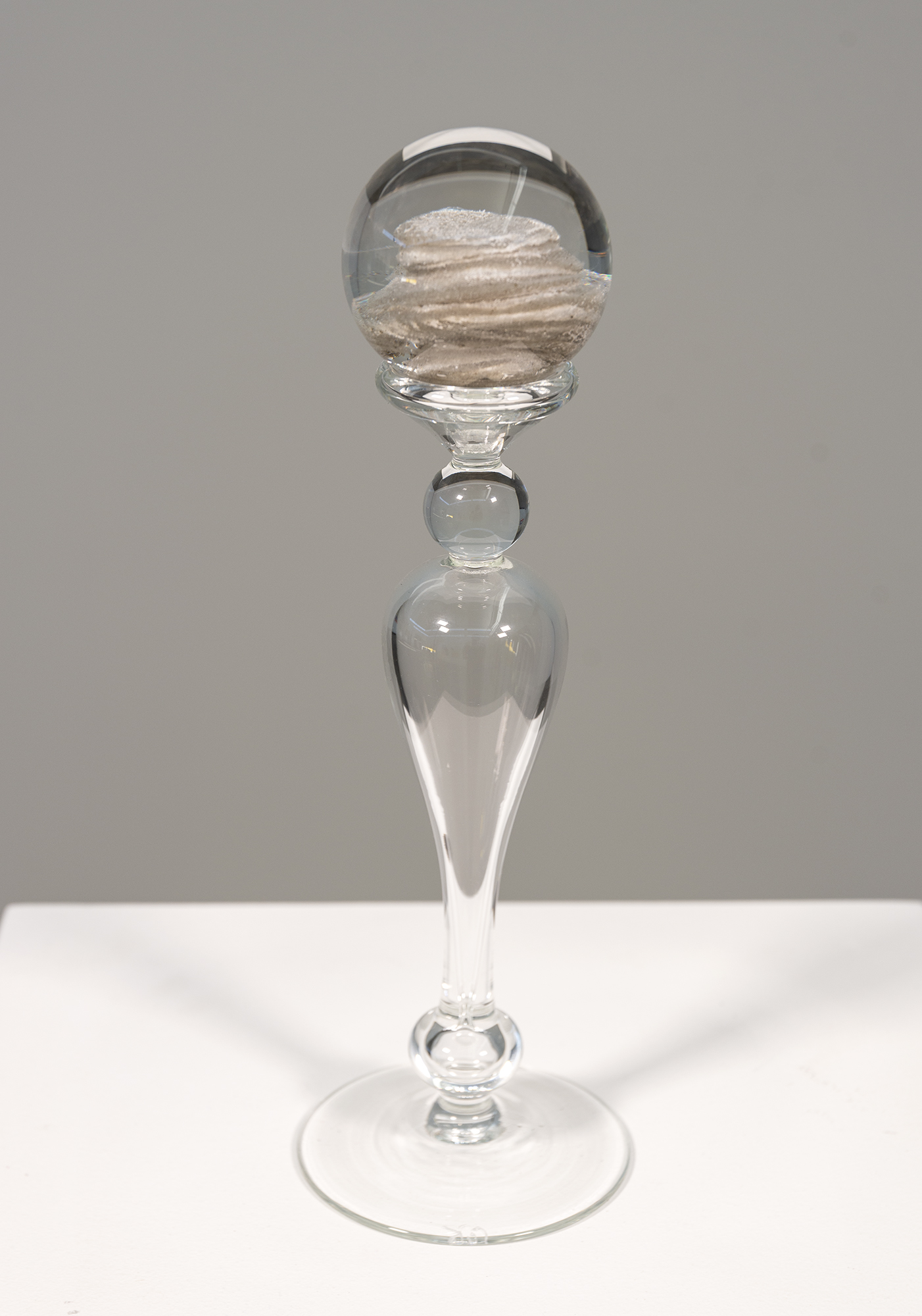 “I love collecting stones, as do many of my friends, and I am often in awe and wonder of what that simple-looking stone went through, both geologically ( pressure and forces) and historically. And when you hold the sphere that the " stone" is encased in, up to a window, you see the optics of the landscape outside. It is condensed and inverted. ( so you are seeing the world).” Cheryl Wilson Smith