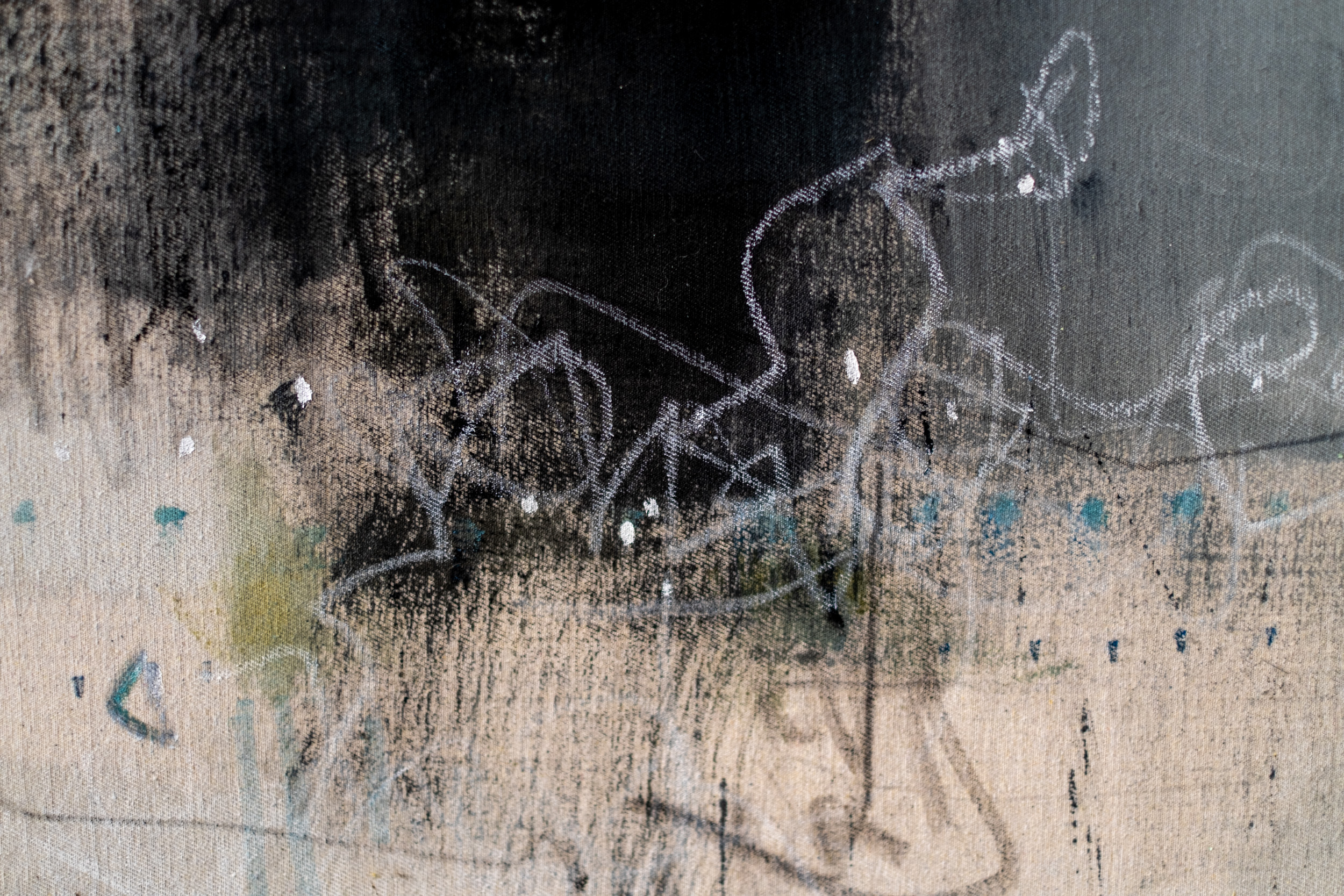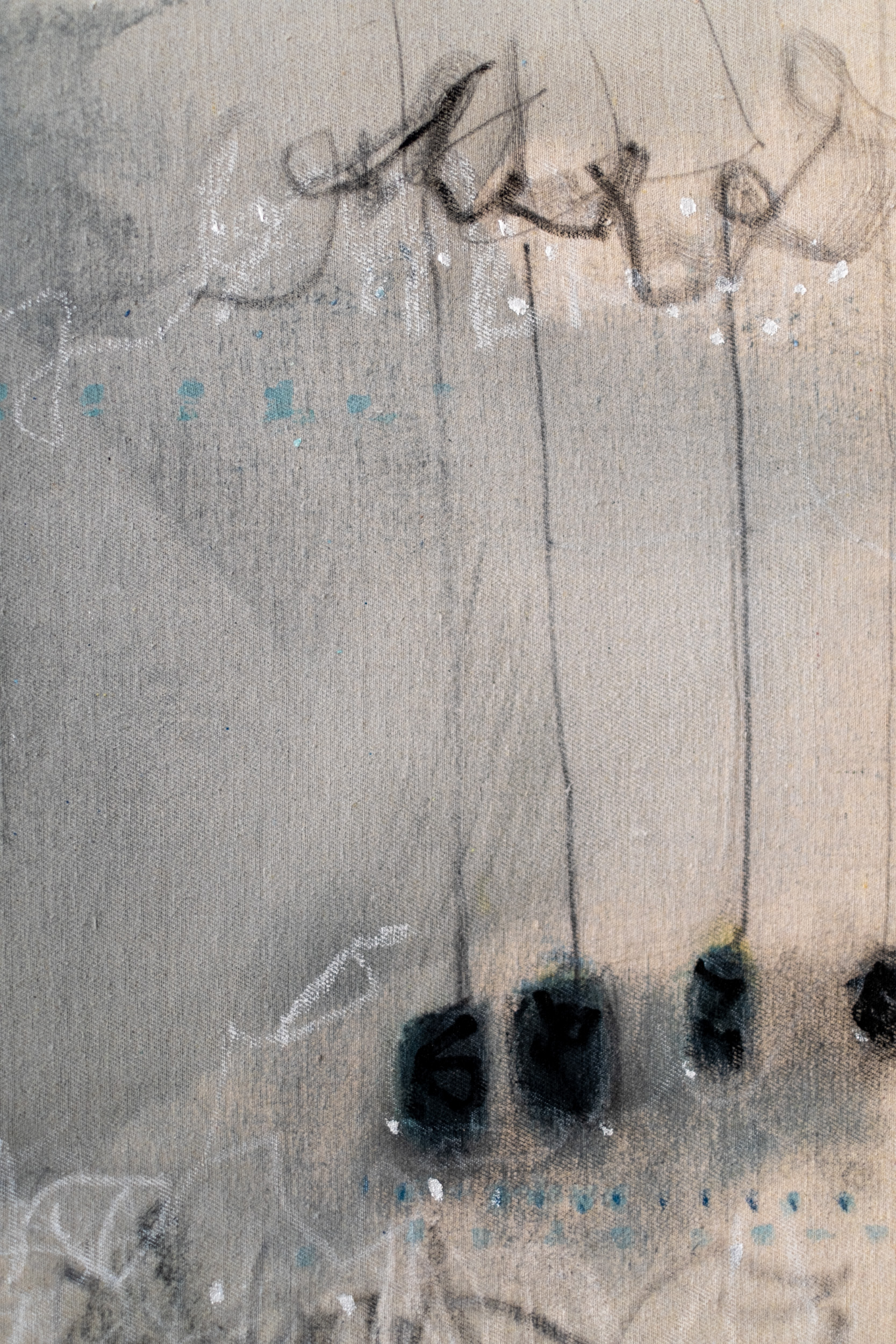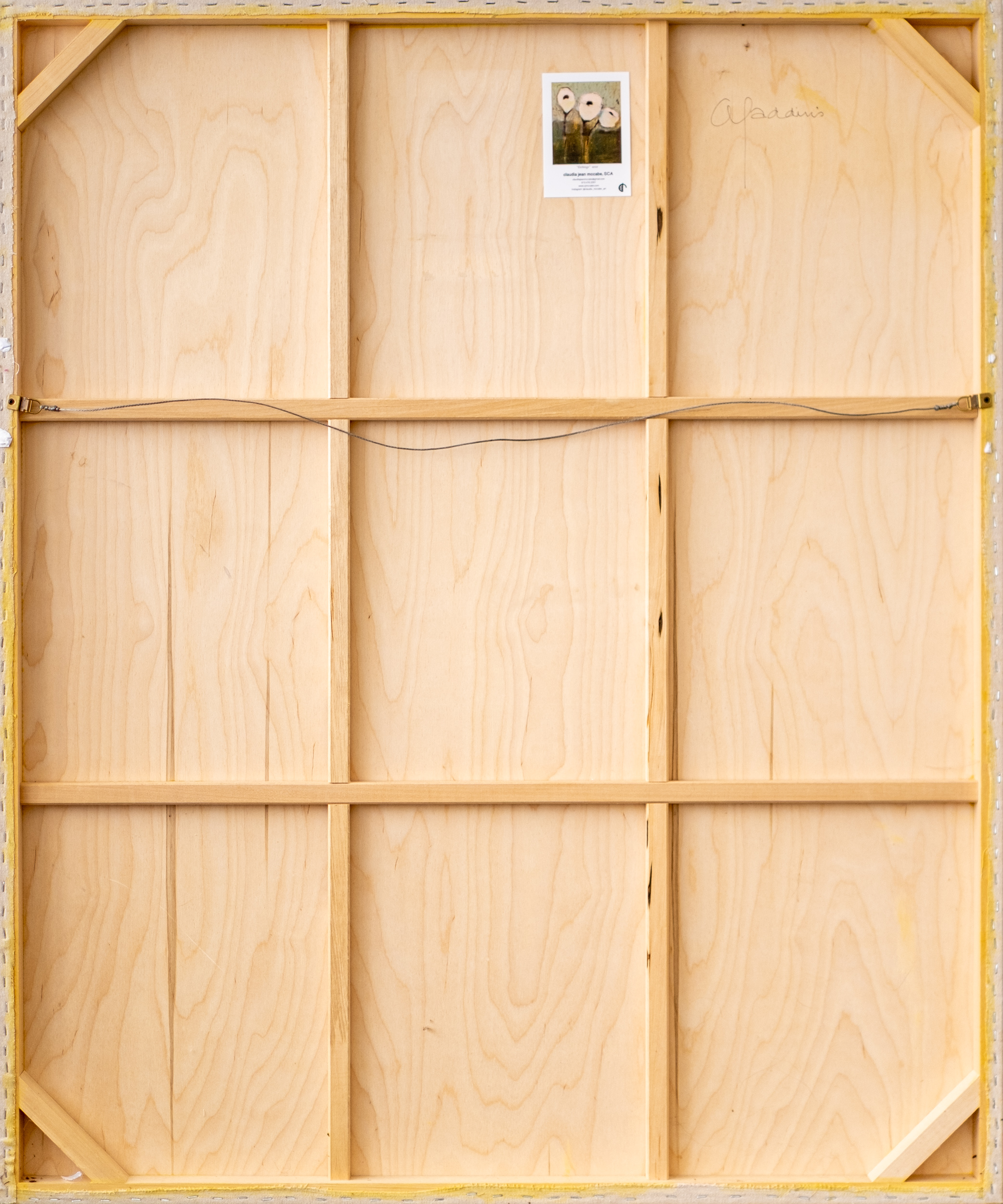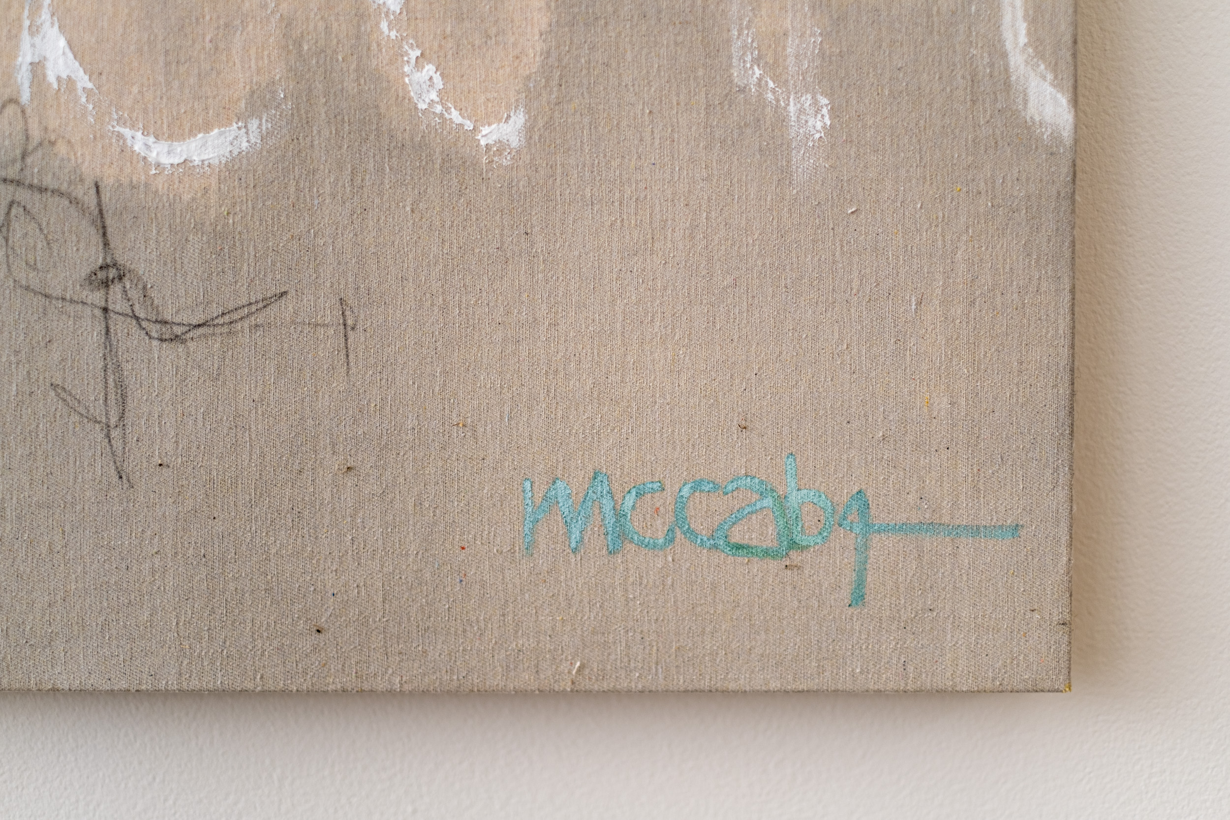 “By incorporating gestural lines and obscured patterns, this painting aims to create a space where uncertainty can be contemplated. Subtle markings and ghostlike lines instill whispered stories waiting to be discovered.” claudia jean mccabe