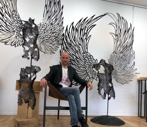 Danny Perkins is a self-taught artist who grew up on a farm in Kingsey Falls, Quebec. It is there that he realizes his sculptures. Since he started working with metal in 2016, his style has evolved. Many of his sculptures use metal along with a variety of other materials such as wood and stone. In addition to being an artist, Danny has his own gallery in the Eastern Townships of Quebec (Melbourne) with more than thirty artists, including his own works.