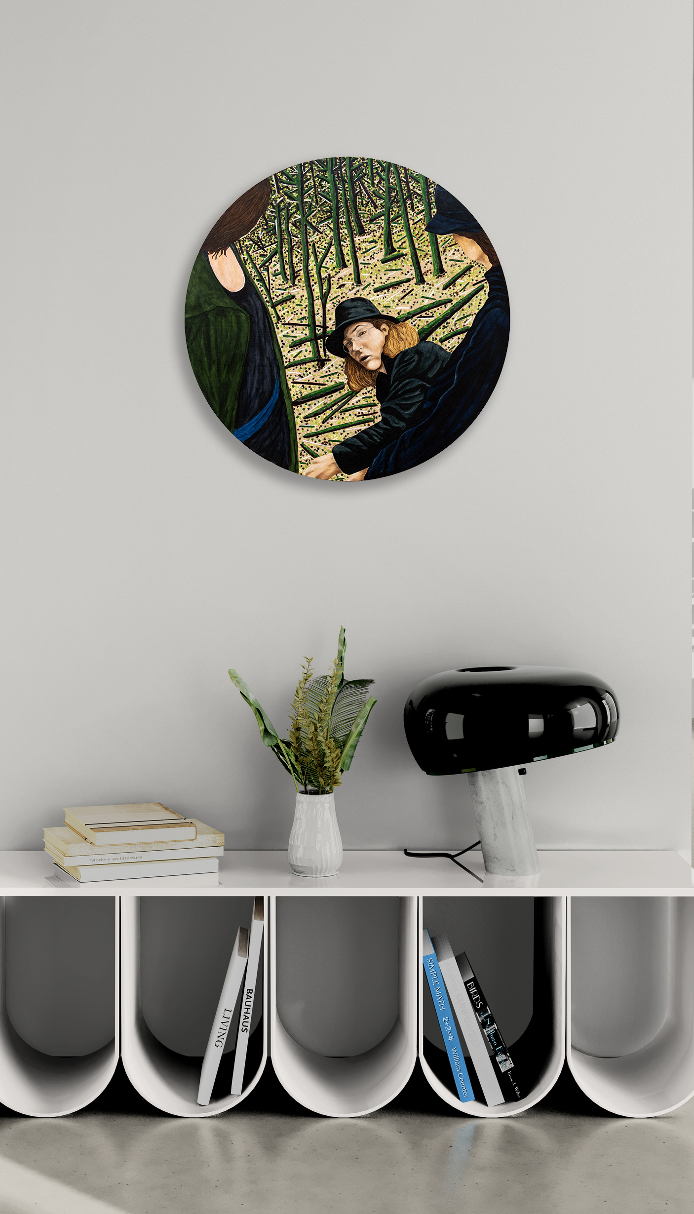 This contemporary figurative oil painting explores themes of politics and culture.Deborah Root’s dynamic colourful compositions tell an intimate story about her experience during socially relevant and politically important moments in time.