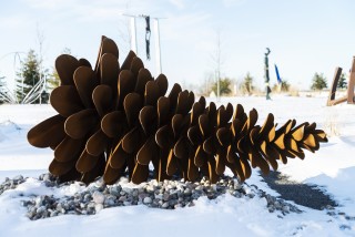 Canadian sculptor Floyd Elzinga’s work merges iconic imagery from the Canadian landscape – the maple leaf, pine branch and pine cone – with Pop art to create works that are both playful and inspiring. From his studio on the Niagara Escarpment, Elzinga creates unique indoor and outdoor steel and bronze sculptures that resonate with a distinctly Canadian perspective.