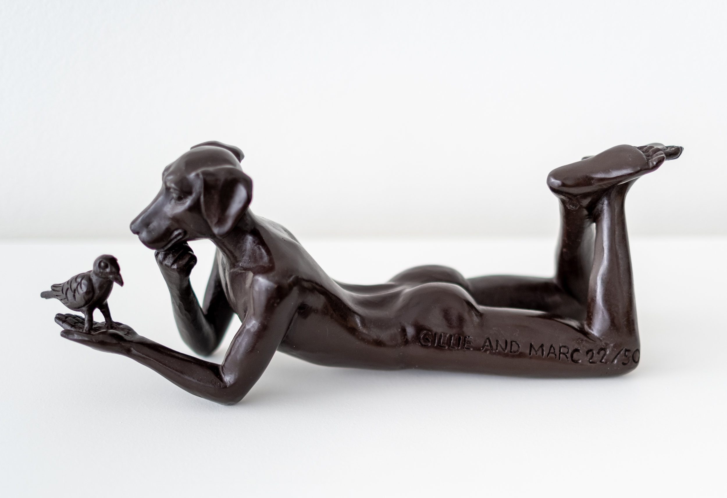 This contemporary figurative bronze tabletop sculpture featuring a dogman is by Gillie and Marc.Fanciful and fun, Gillie and Marc’s art is designed to be accessible. Their popular playful hybrid sculptures are beloved around the world. Love and an appreciation for the spiritual connection humans share with animals is always part of the story.