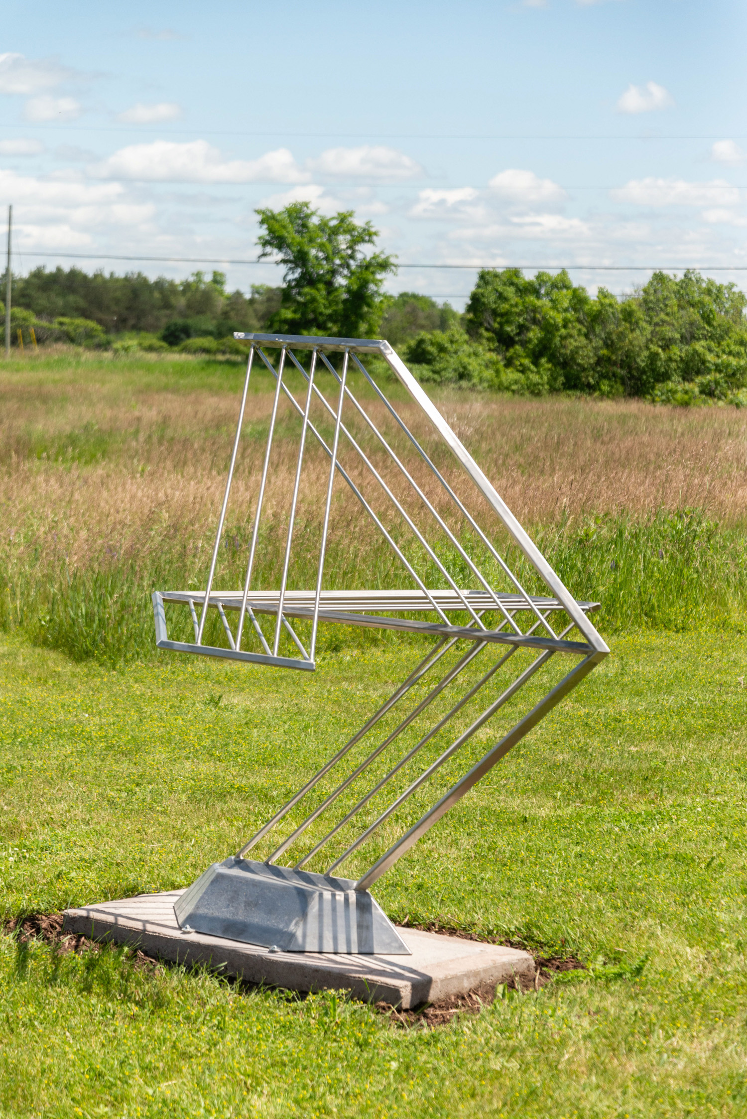 Manitoba sculptor Jake Goertzen’s dynamic Mach I sculpture is an homage to the historic event in 1947 that changed the face of aviation. The decorated US air force pilot Chuck Yeager broke the sound barrier while flying an experimental plane over the California desert. Mach I is 600-700 mph—the speed of sound. Fine rods of polished stainless steel are artfully welded into several arrow-like shapes—an abstracted representation of the nose and wings of a jet plane.“There is something very satisfying when you create something with your hands…. You can conceive a great idea in your mind, but when you make it tangible, it is now something to behold and to hold.” Jake Goertzen