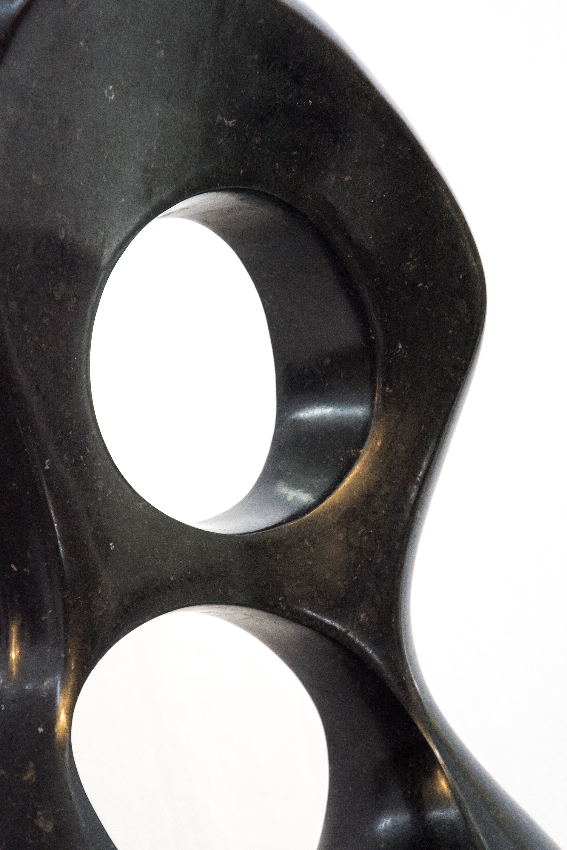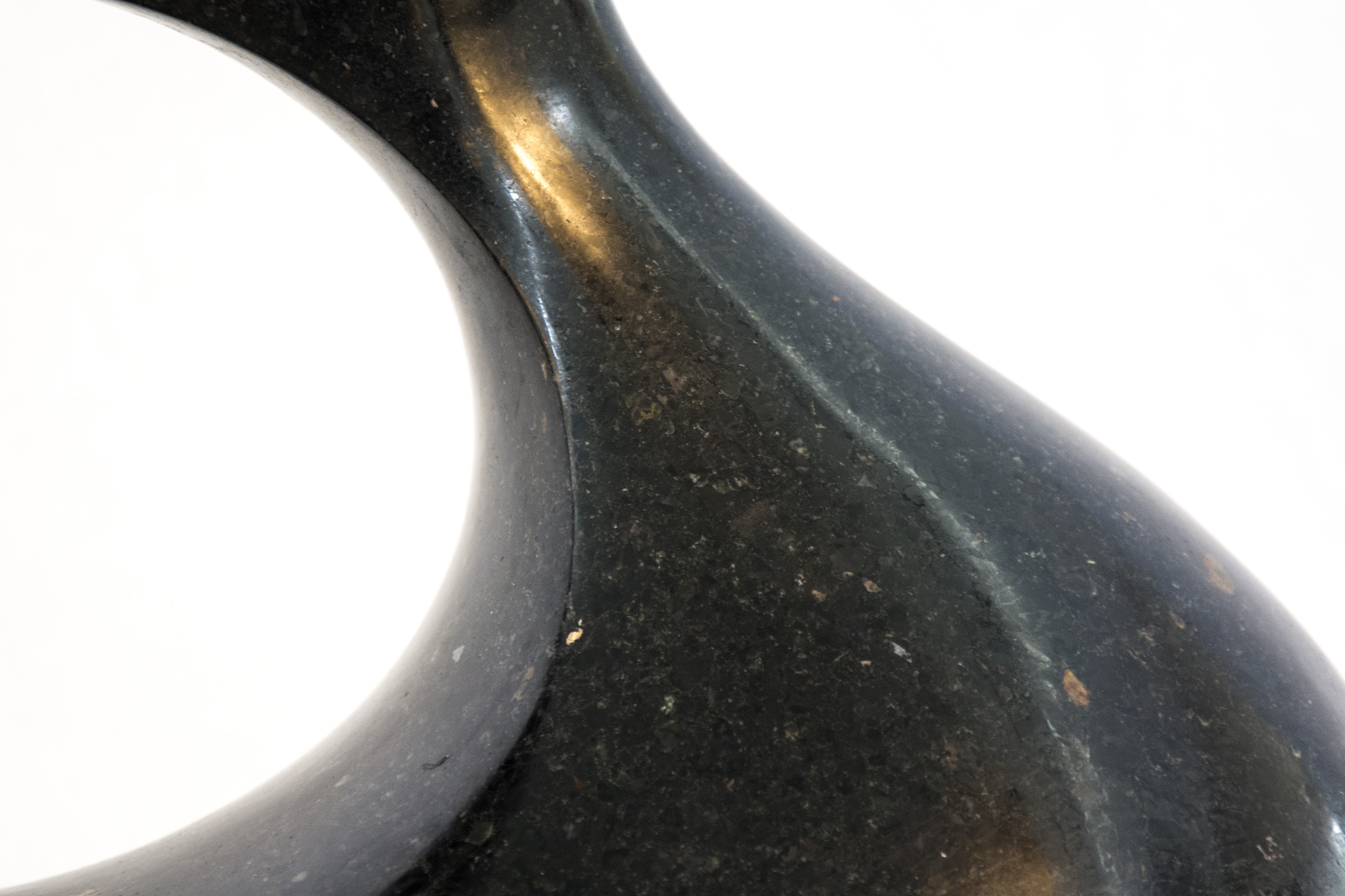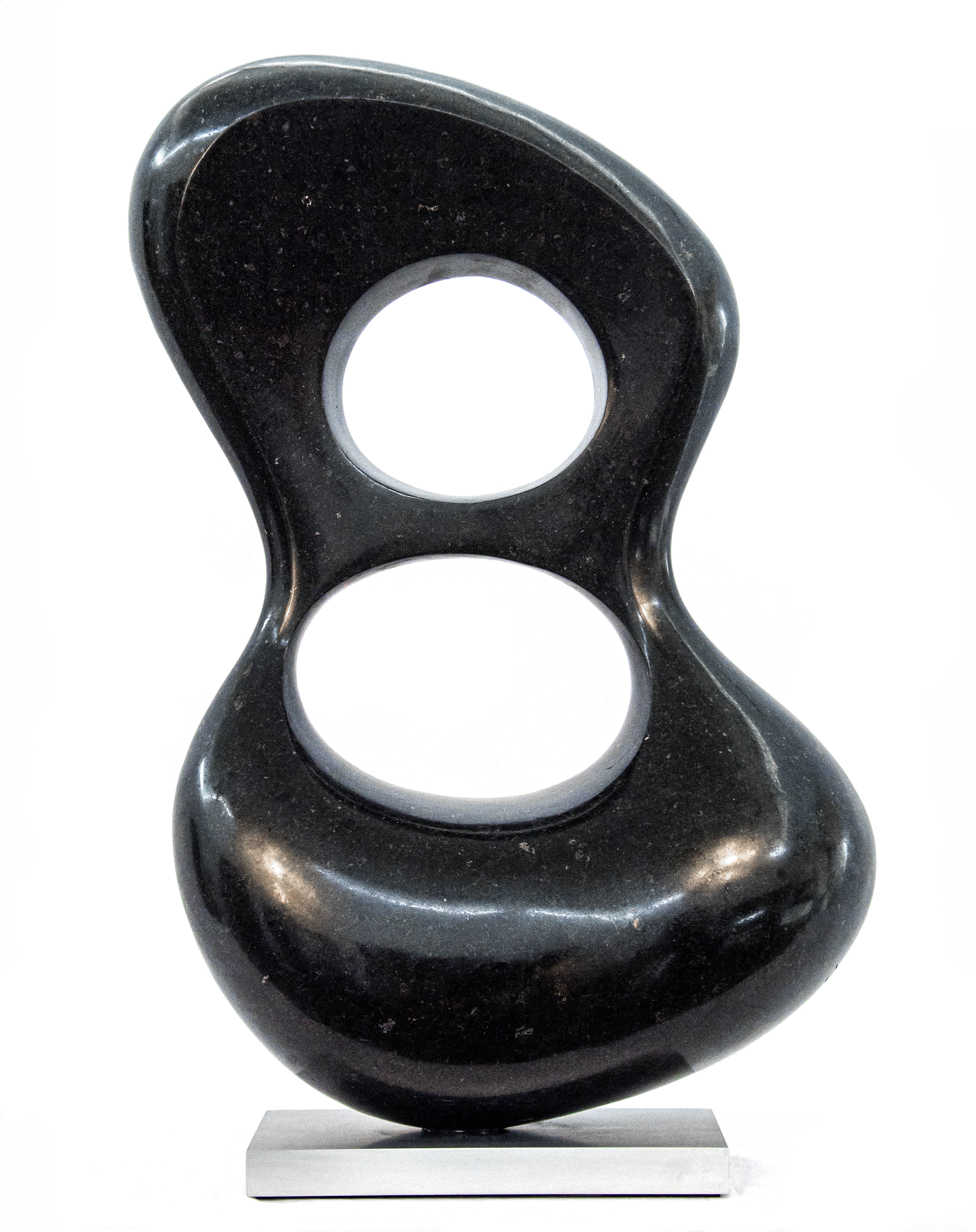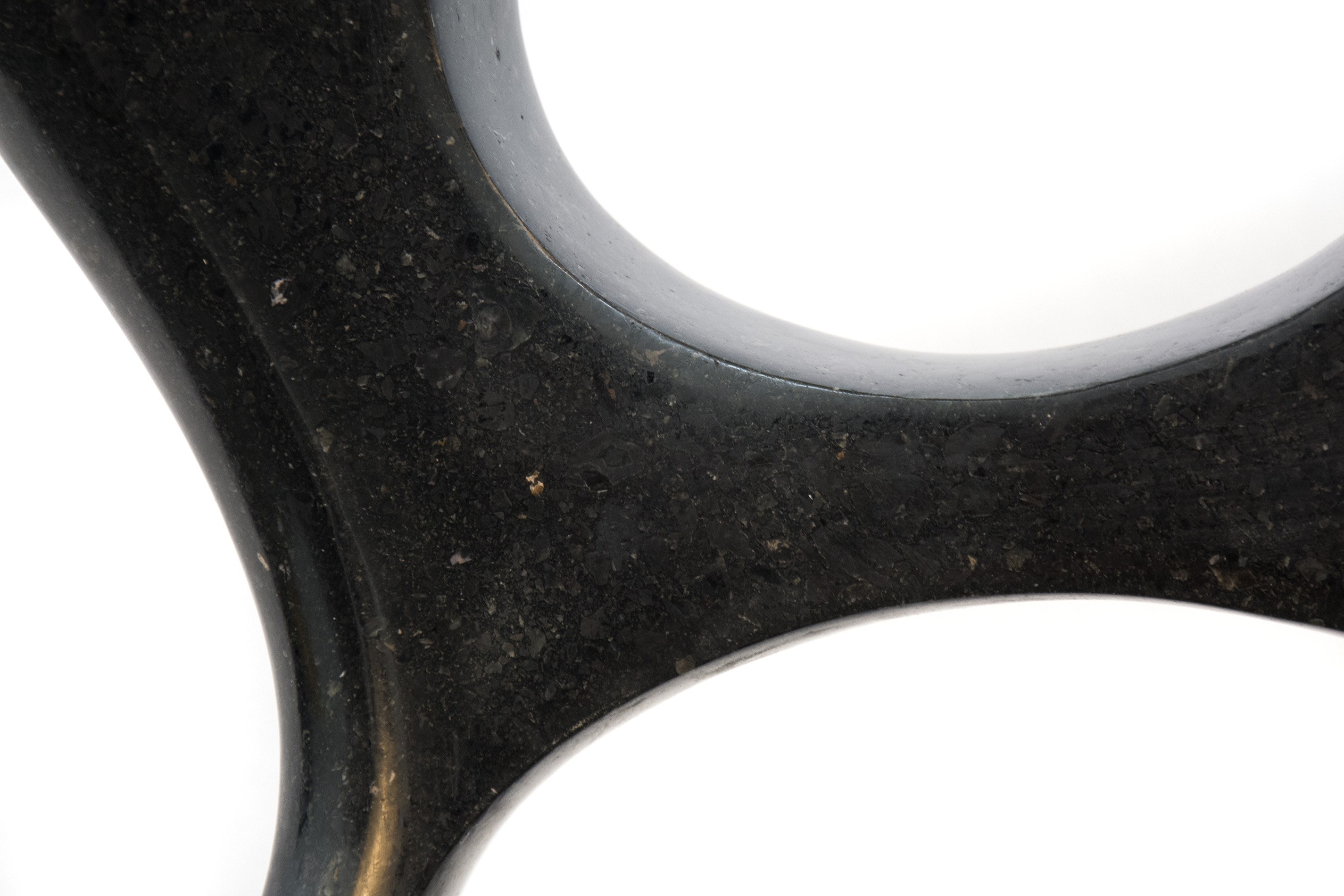 Smooth-surfaced, black granite has been engineered into an elegant figure eight shape by sculptor Jeremy Guy. Available on commission, please allow 6-8 weeks for completion.Duo is supported by a fixed base, available in the following finishes, choose from: