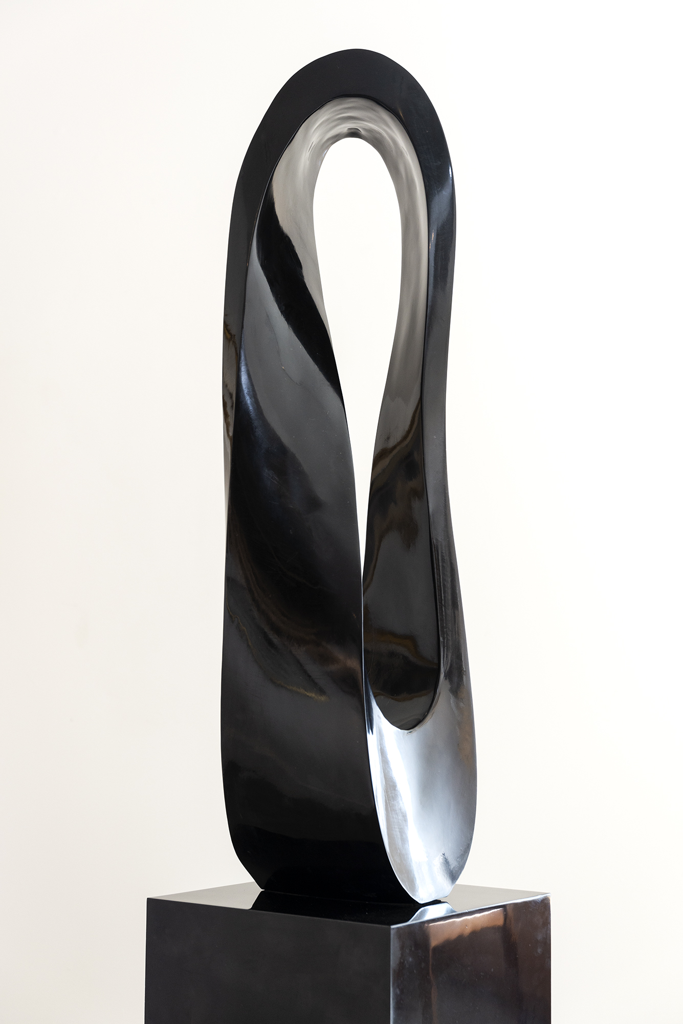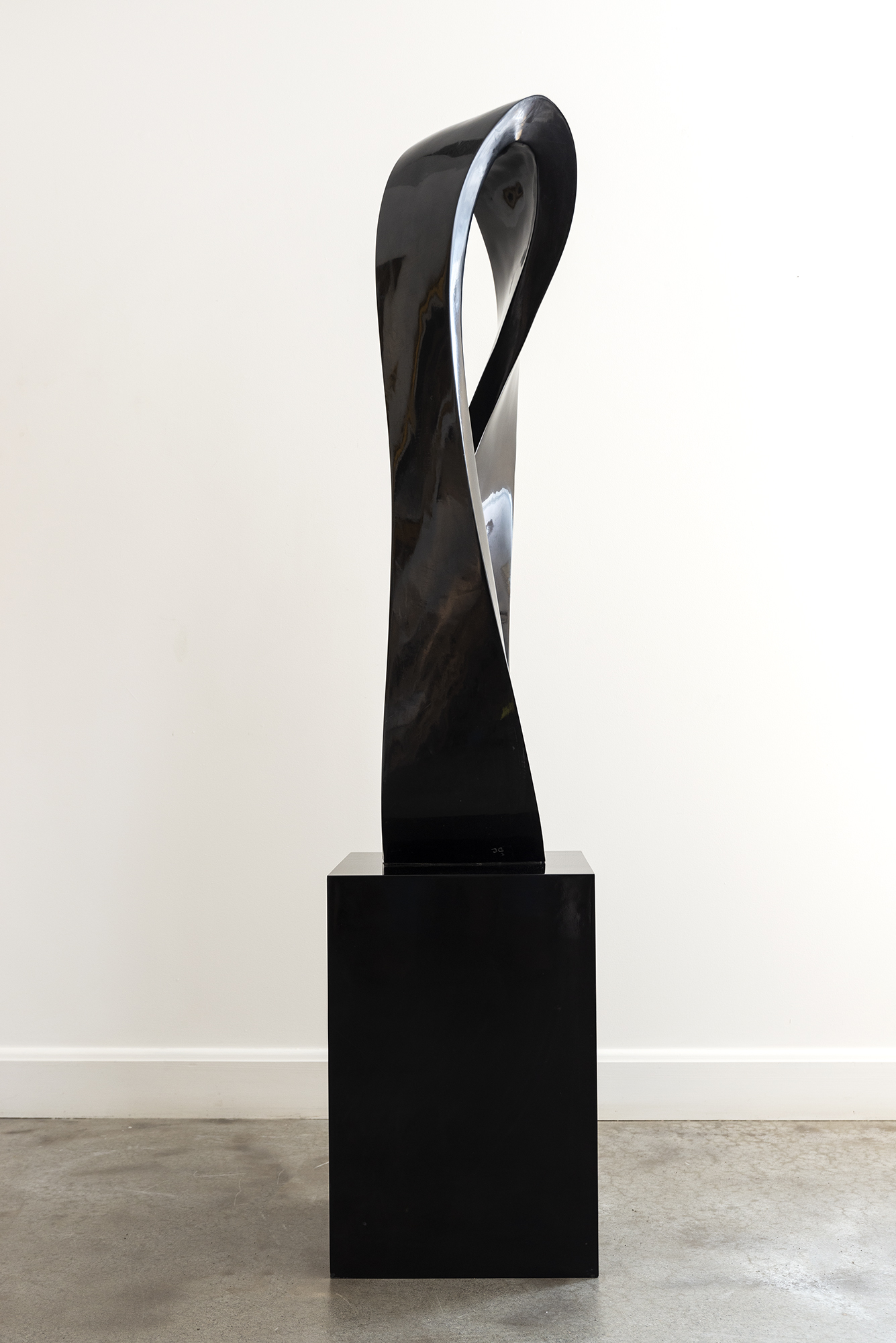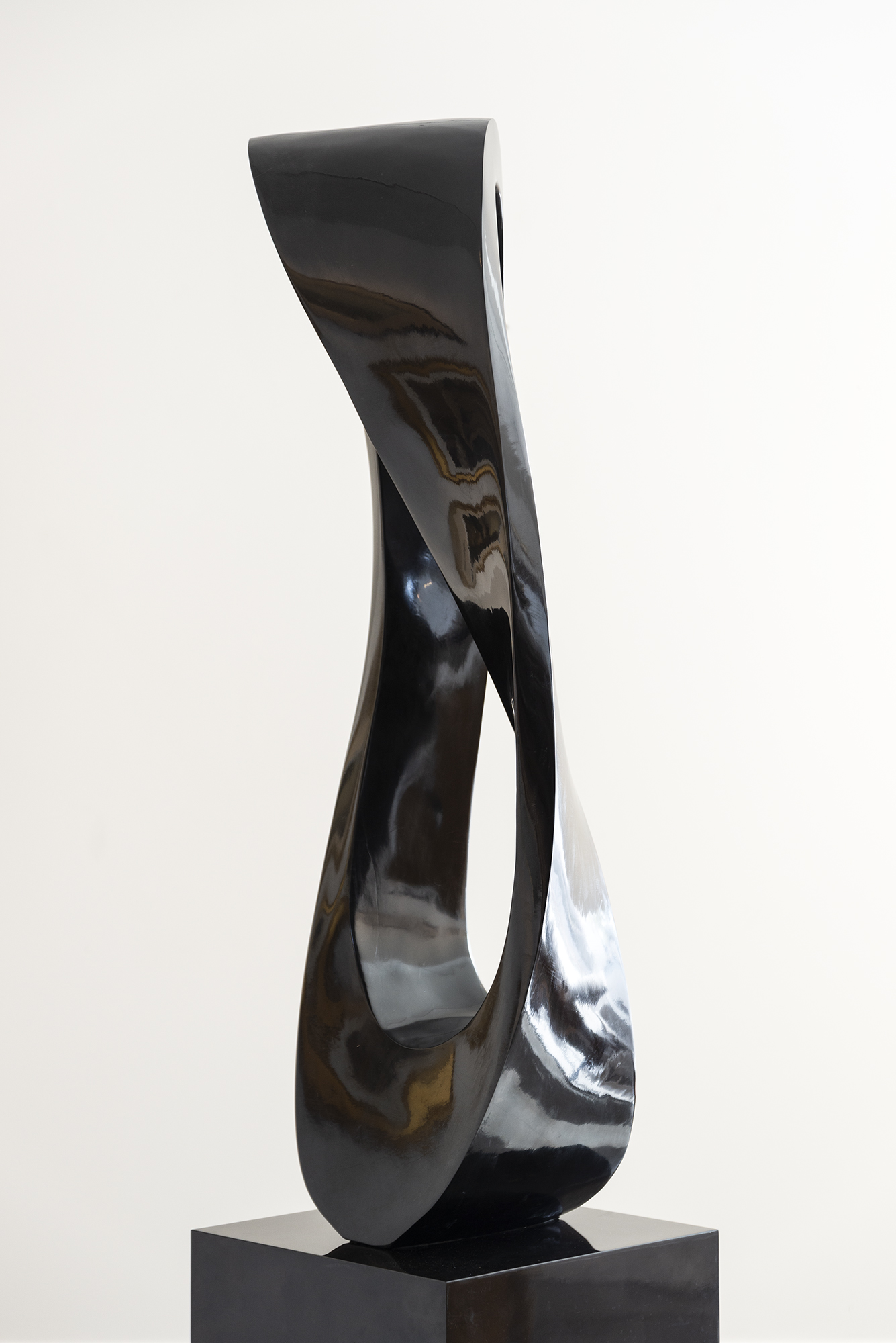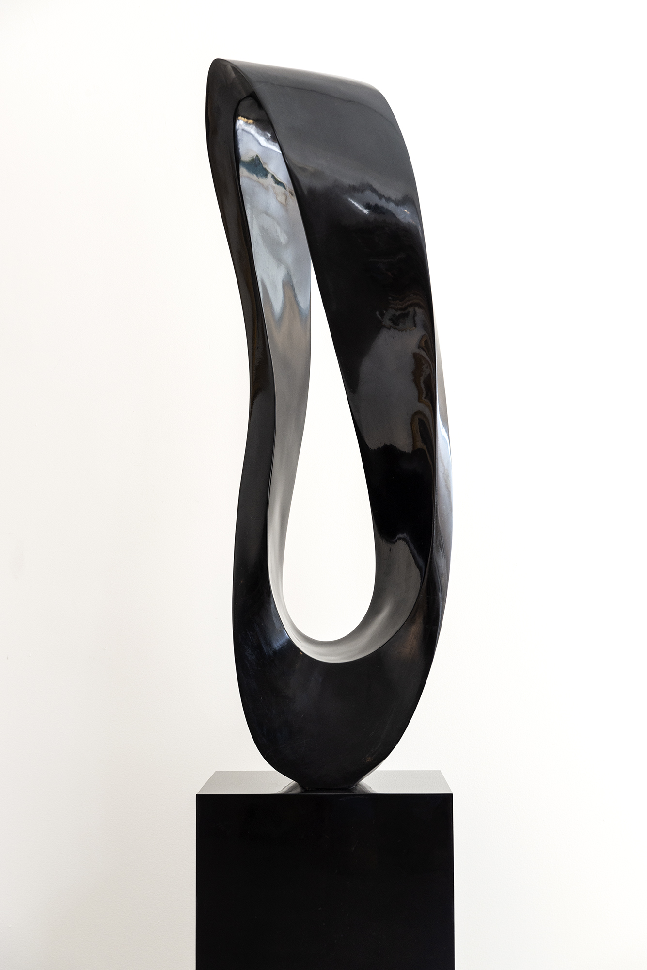 Early in his career, Guy’s superb work was inspired by the renowned modernist British sculptors Barbara Hepworth and Henry Moore. Möbius H4 sits on a rectangular black plinth.