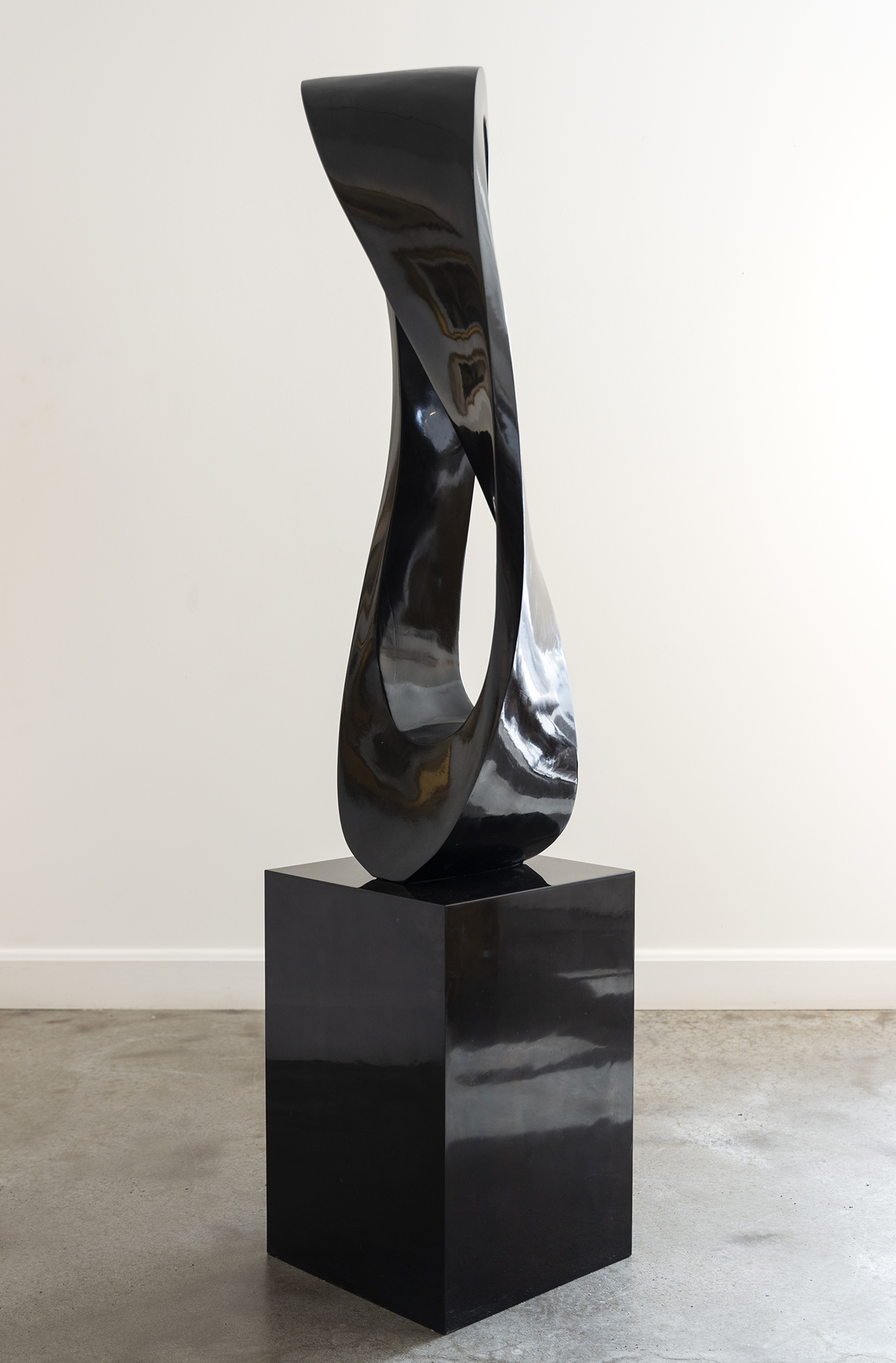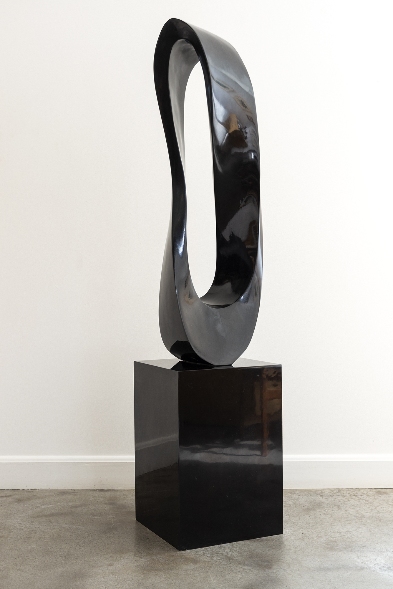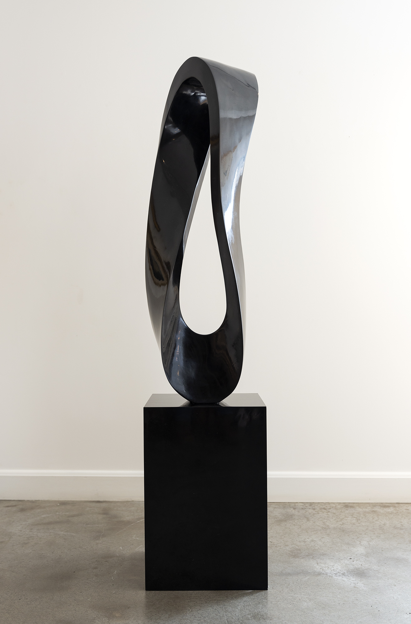 Early in his career, Guy’s superb work was inspired by the renowned modernist British sculptors Barbara Hepworth and Henry Moore. Möbius H4 sits on a rectangular black plinth.