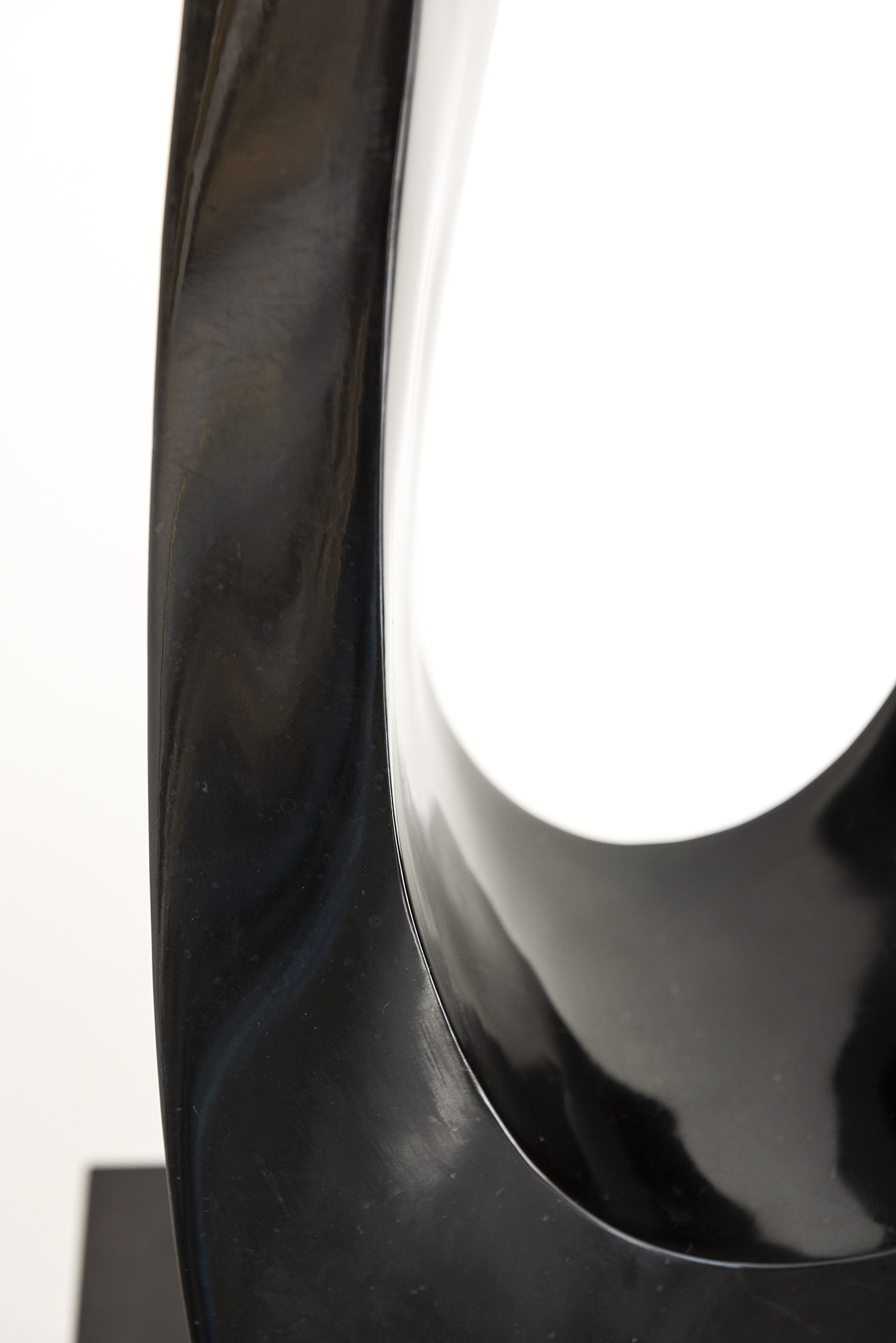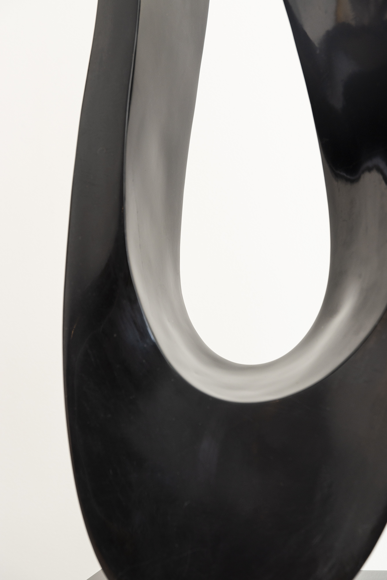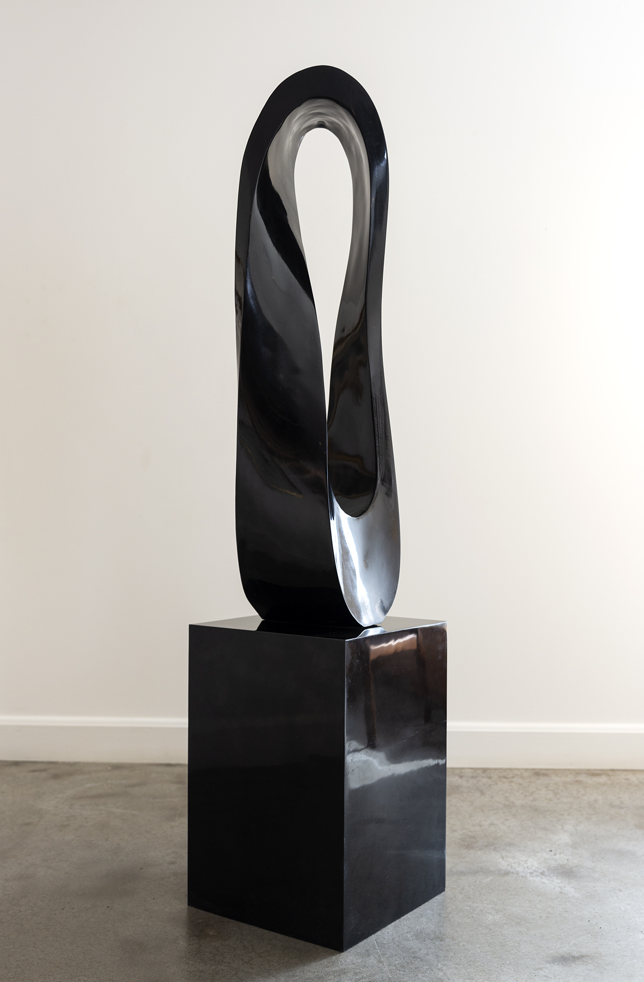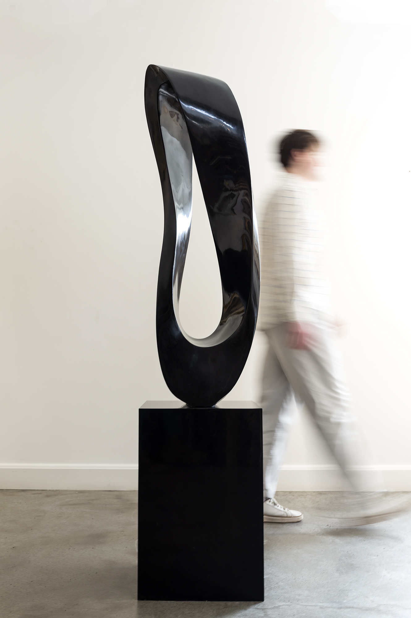 Early in his career, Guy’s superb work was inspired by the renowned modernist British sculptors Barbara Hepworth and Henry Moore. Möbius H4 sits on a rectangular black plinth.