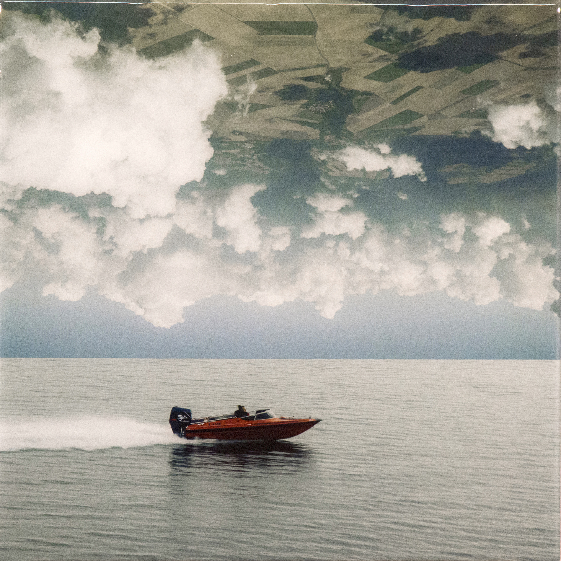 Photographer Mark Bartkiw often re-interprets the world in his compelling surreal work.This is a photo of a red speed boat flying across the water. On second look, the viewer will see that an inverted landscape actually hovers above the line of clouds on the horizon. As an artist, Bartkiw is fascinated by the effect of slightly distorting reality to create a somewhat imaginary world. He uses a variety of techniques to create a collage of images in his artwork. Artist’s proof.
