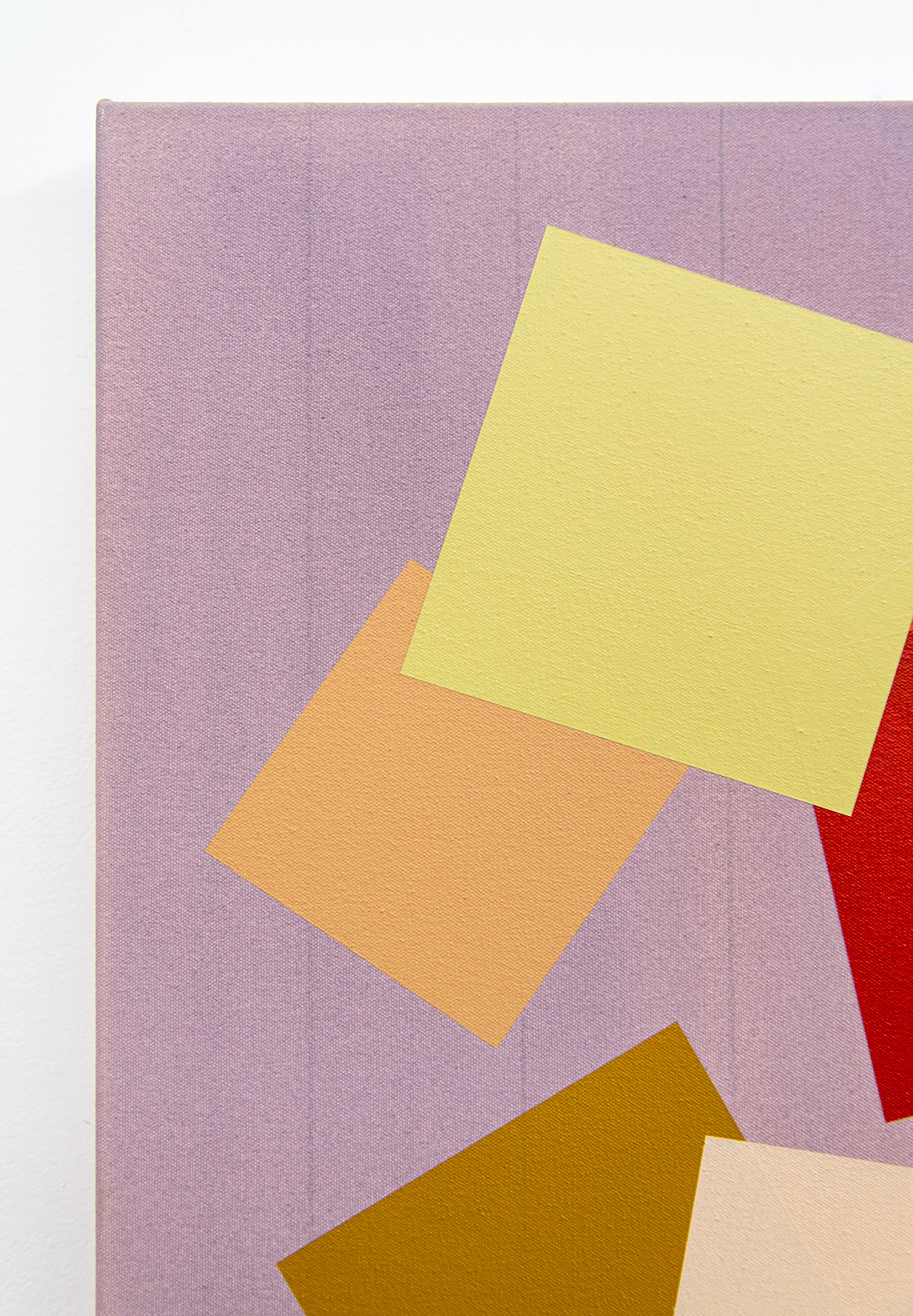 In the hands of master colourist Milly Ristvedt, the grid pattern becomes more than a ‘container’ for colour. Hailed by critics and collectors as one of Canada’s finest abstract artists, Ristvedt has often used the geometric form of the grid to express a dynamic visual narrative. Grey Grid showcases Ristvedt’s formidable ability to use this classic form as a backdrop to a carousel of coloured squares in yellow, orange, cerise, lilac, purple, gold, melon and white. The subtle vertical lines of the grid are visible in the grey-mauve ground of the picture plane.