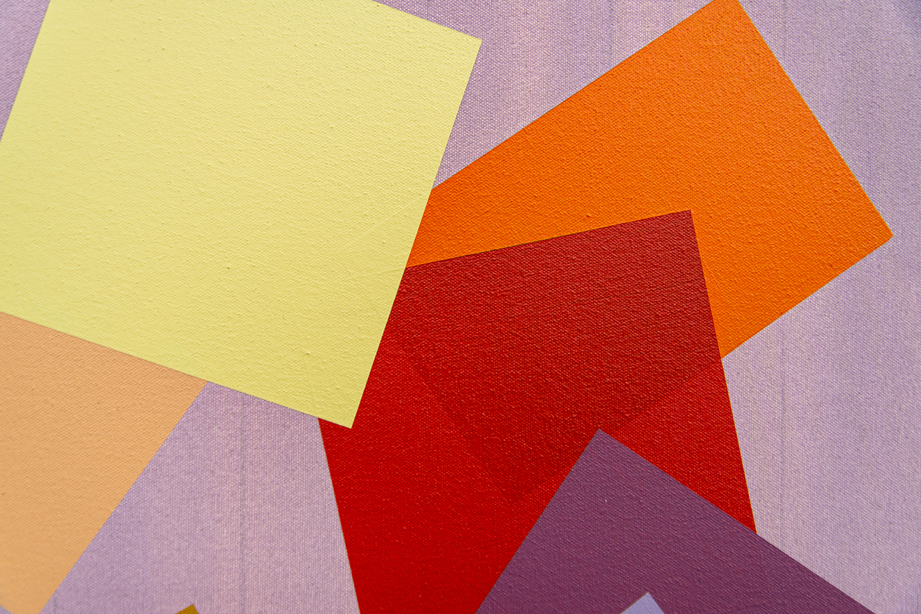 This colourful acrylic abstract painting by Milly Ristvedt is geometric in form.