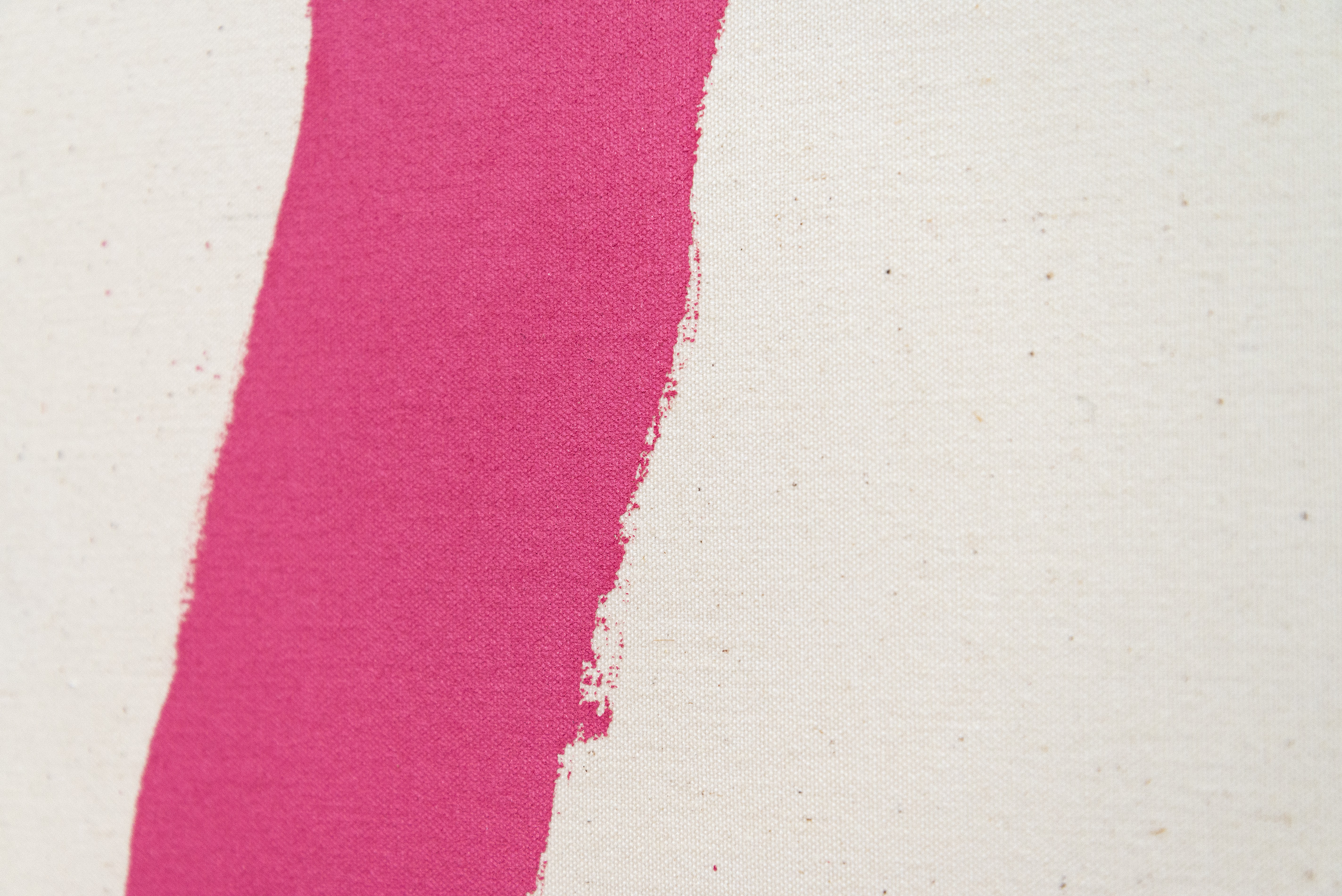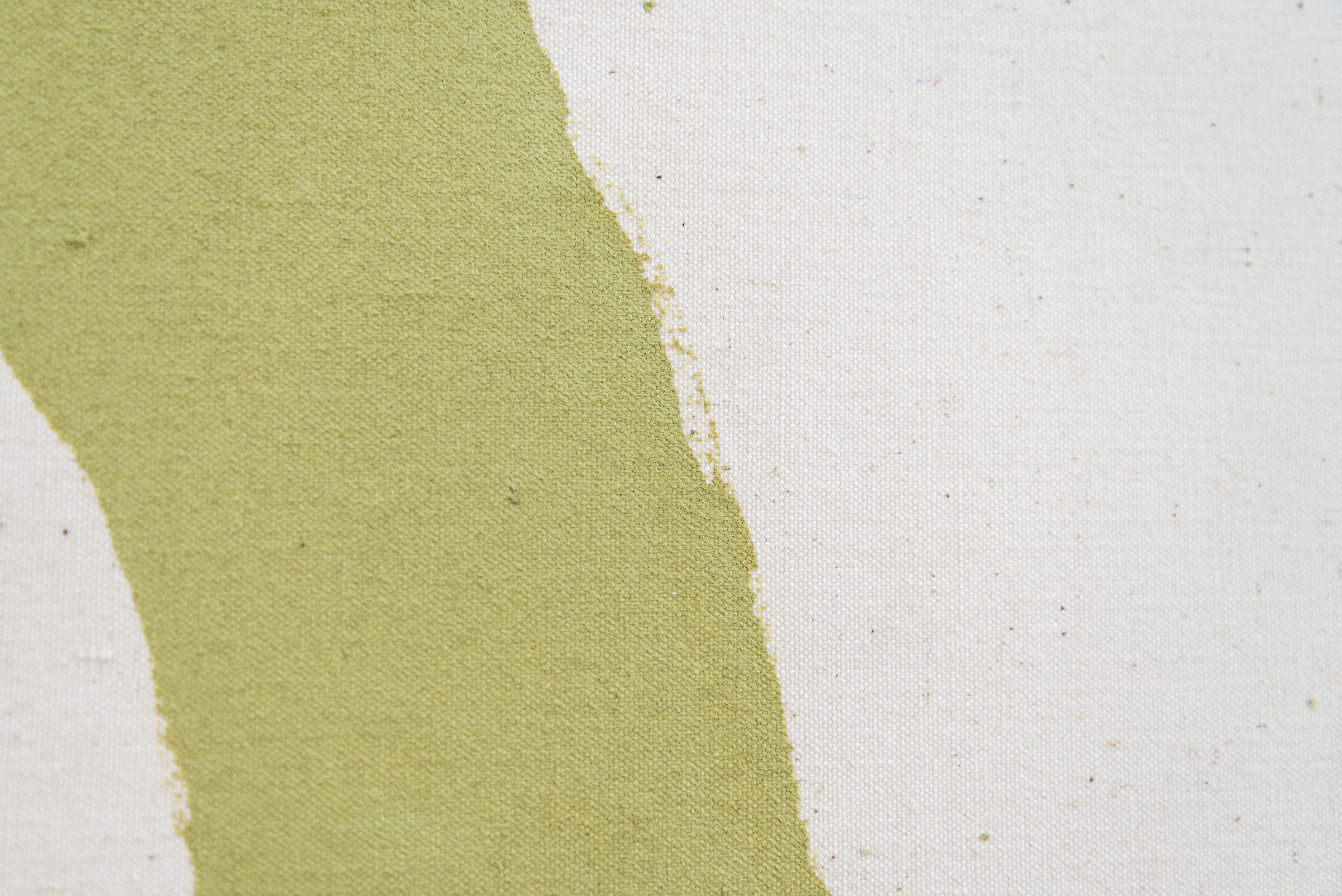 “In the Ribbon paintings…the mostly raw canvas surface is animated by gestural ribbons of colour reminiscent of pick-up sticks.” Milly Ristvedt