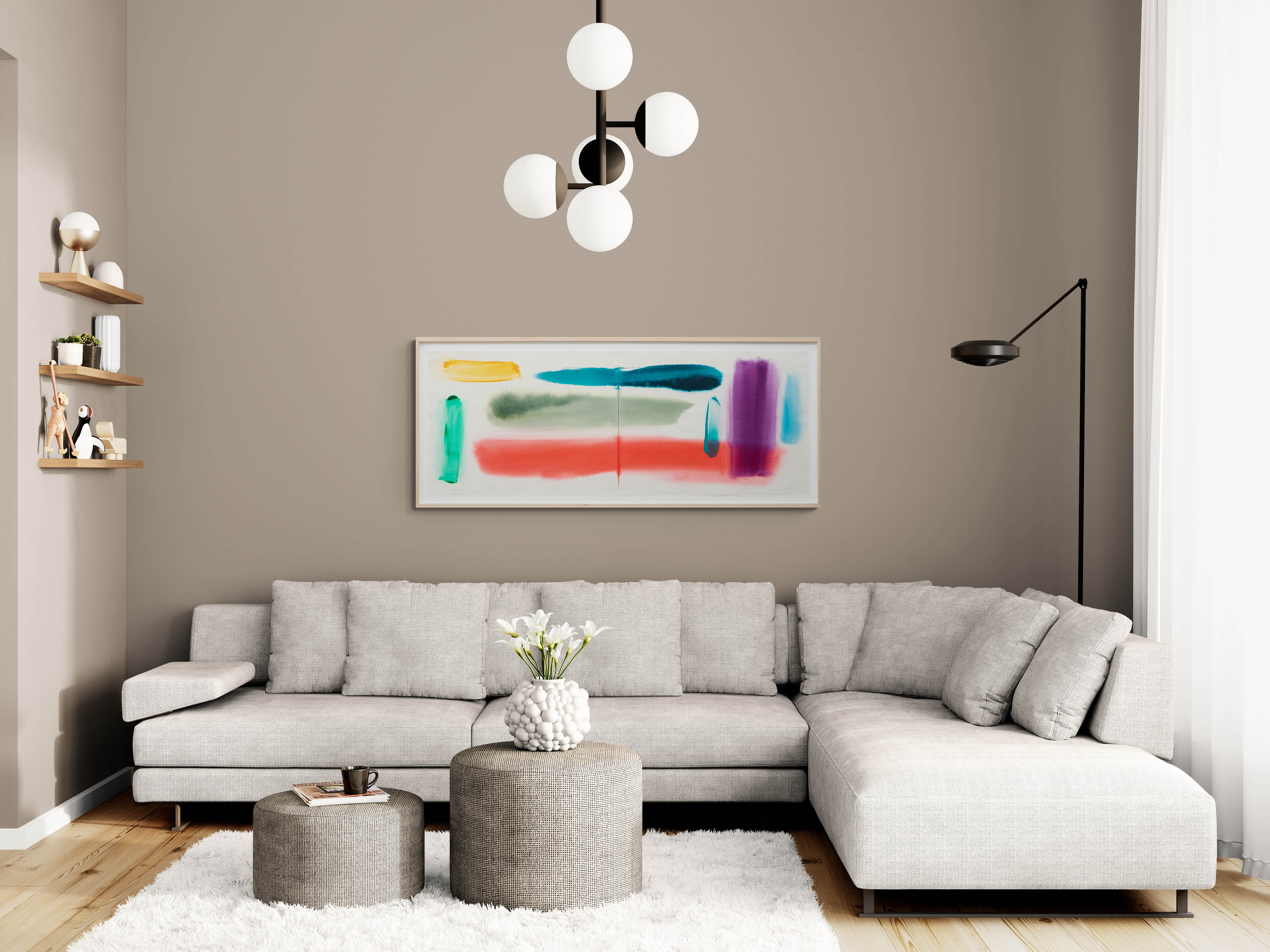 This large acrylic abstract painting is a diptych by Milly Ristvedt.The beauty of a vast prairie sky is suggested by the grand gestural brushstrokes of brilliant colour in this diptych by one of Canada’s finest abstract artists.
