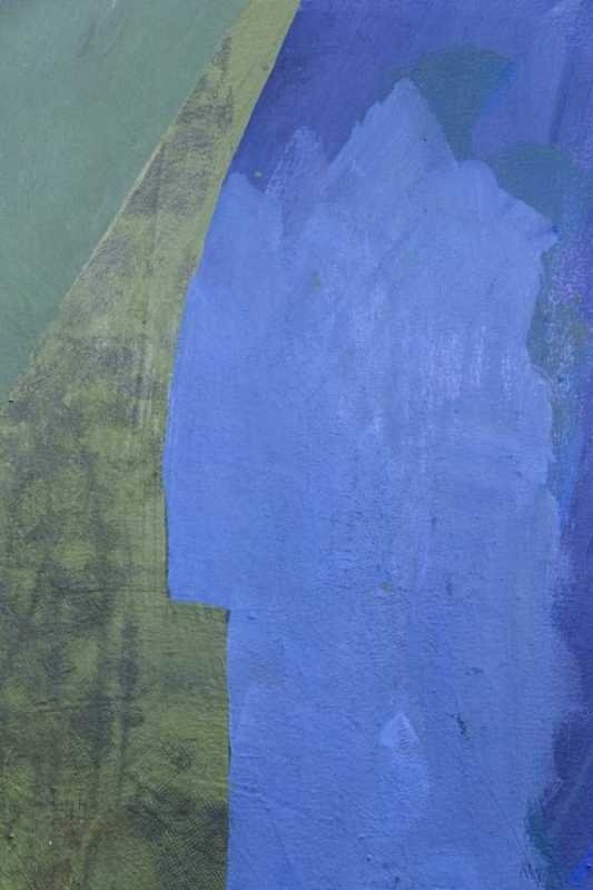 In this beautiful composition by abstract artist Otto Rogers, a single leaf appears to be fluttering to the ground against a vibrant backdrop of red, green and blue. Rogers was strongly influenced by the modernist artists of the twentieth century, but his interpretation of that genre is uniquely his own. Rogers was recognized by the renowned NY art critic Clement Greenberg as a ‘big attack painter” early in his career. Rogers' work was inspired by both nature and his deep faith as a Baha'i. This is one of his last paintings.“Art is a means of elevating consciousness and can reflect attributes of the soul.” Otto Rogers