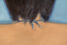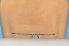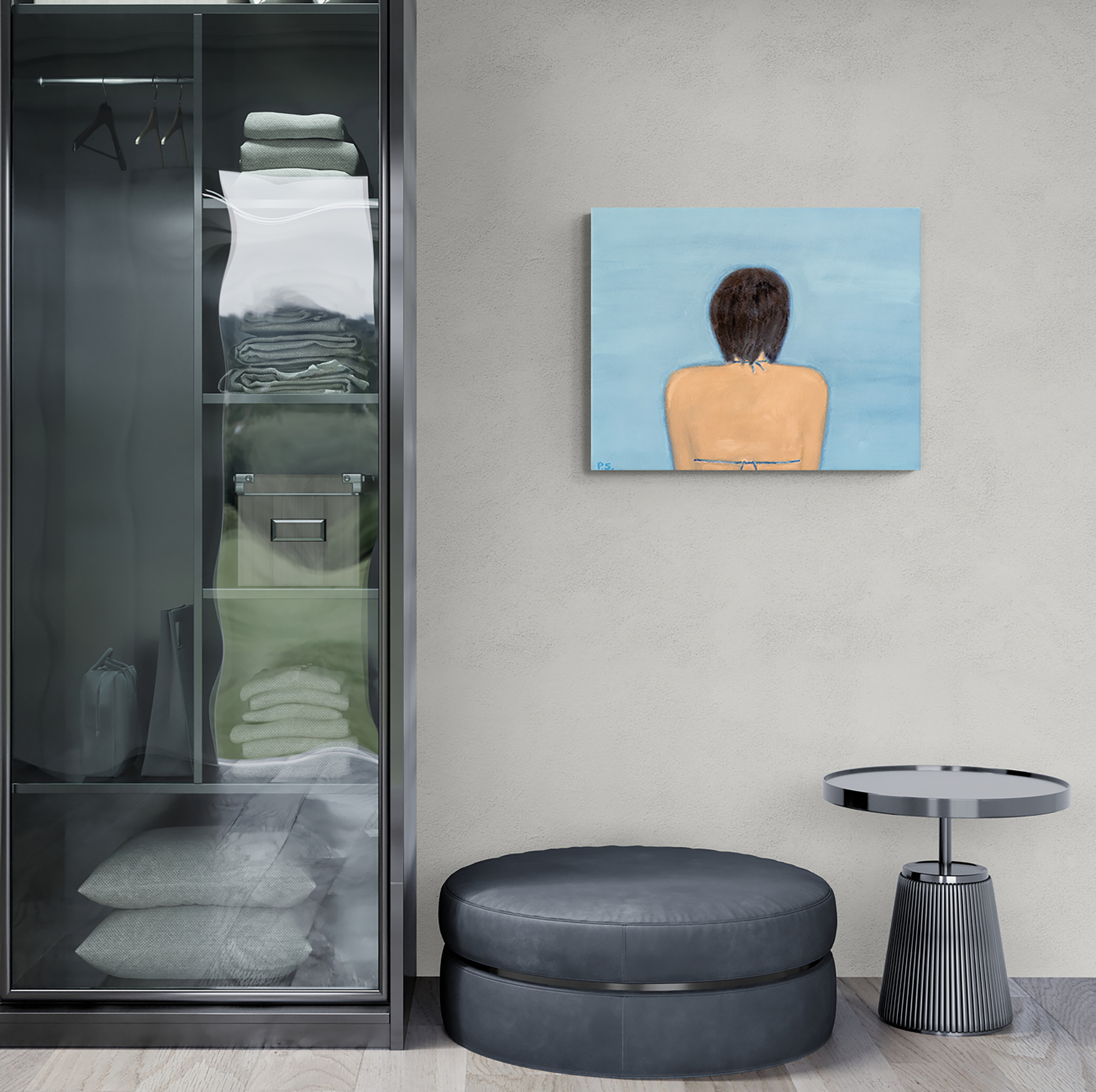 “Swimmers have always been a favourite subject matter for paintings. In this case, the innocence of the young person is protected by the back view, and there is the simple colour palette to repeat, skin colour, hair colour, bathing suit straps, and background.” Pat Service