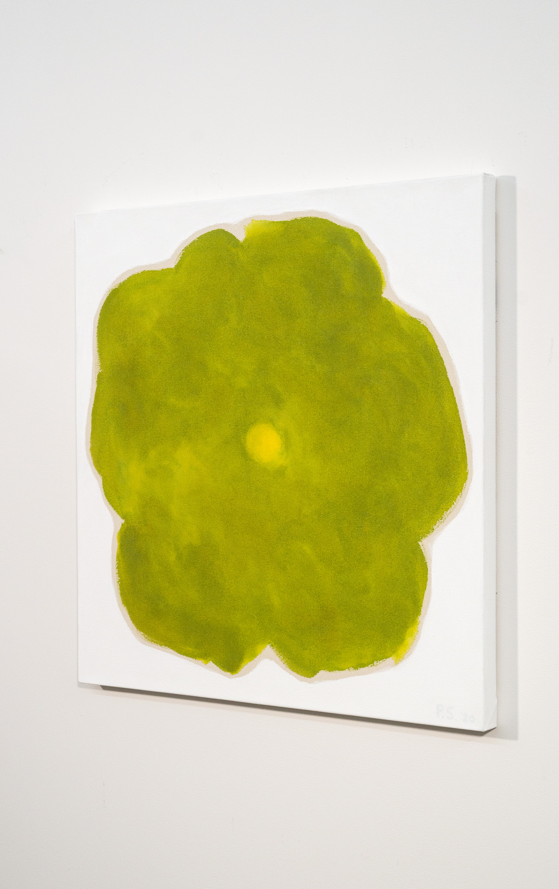 Pat Service has painted florals throughout her long career. Here, a single blossom in a stunning celadon and yellow fills the canvas. Reminiscent of Andy Warhol, the Vancouver artist’s flowers are pared down to the essentials--simple shapes without leaves or stems. This is number two in a series of two. Displayed together, these florals make a dynamic statement.“The flowers with their radiance and intensity initiate the act of putting paint on canvas but they don’t control the result. The result has more to do with the curious act of ‘painting’, playing with hue, surface texture and mark making.” Pat Service