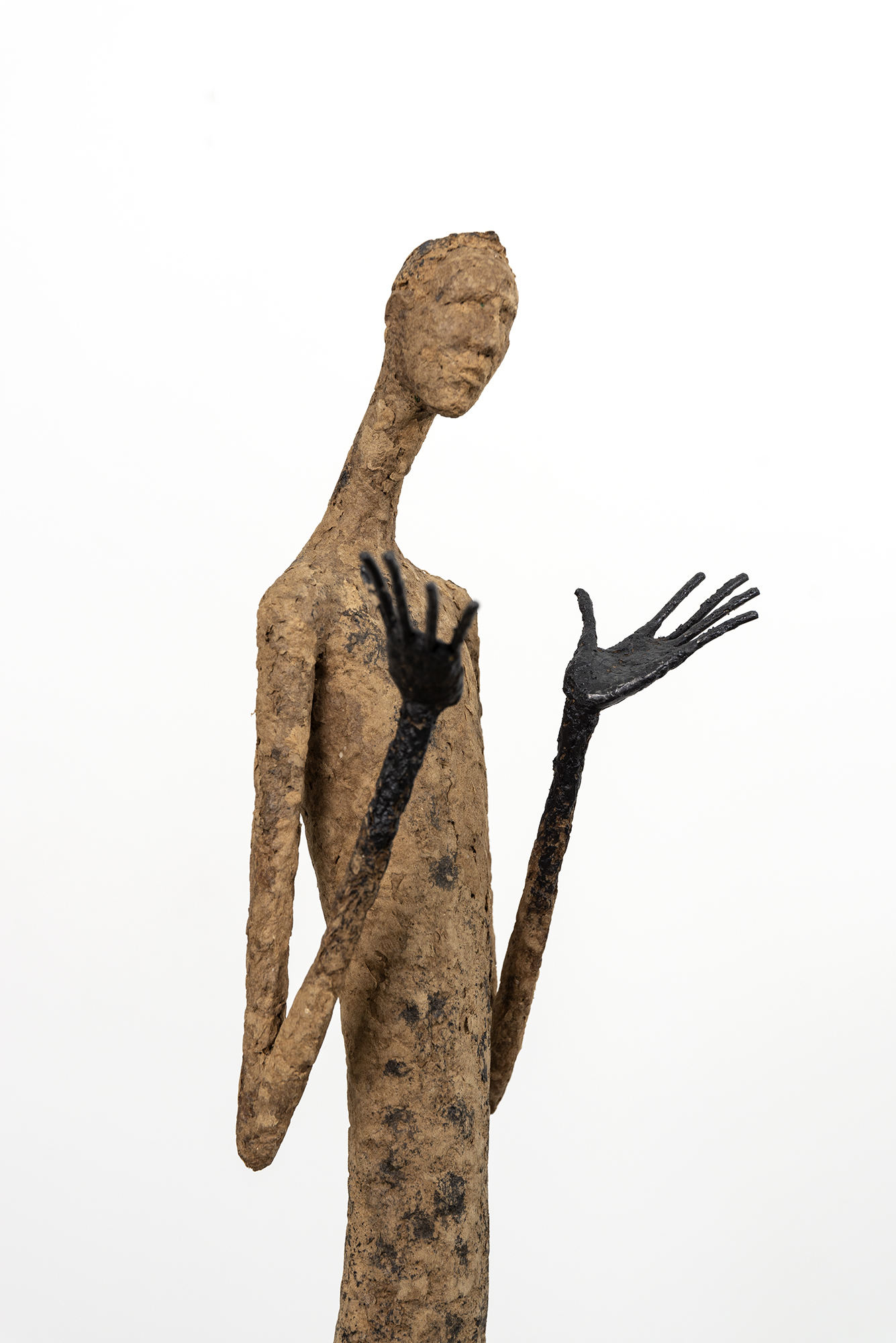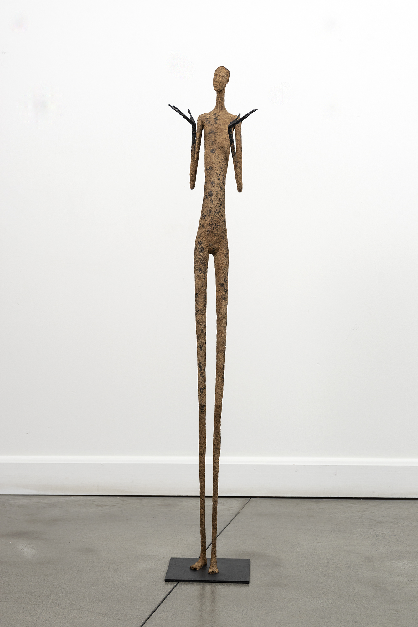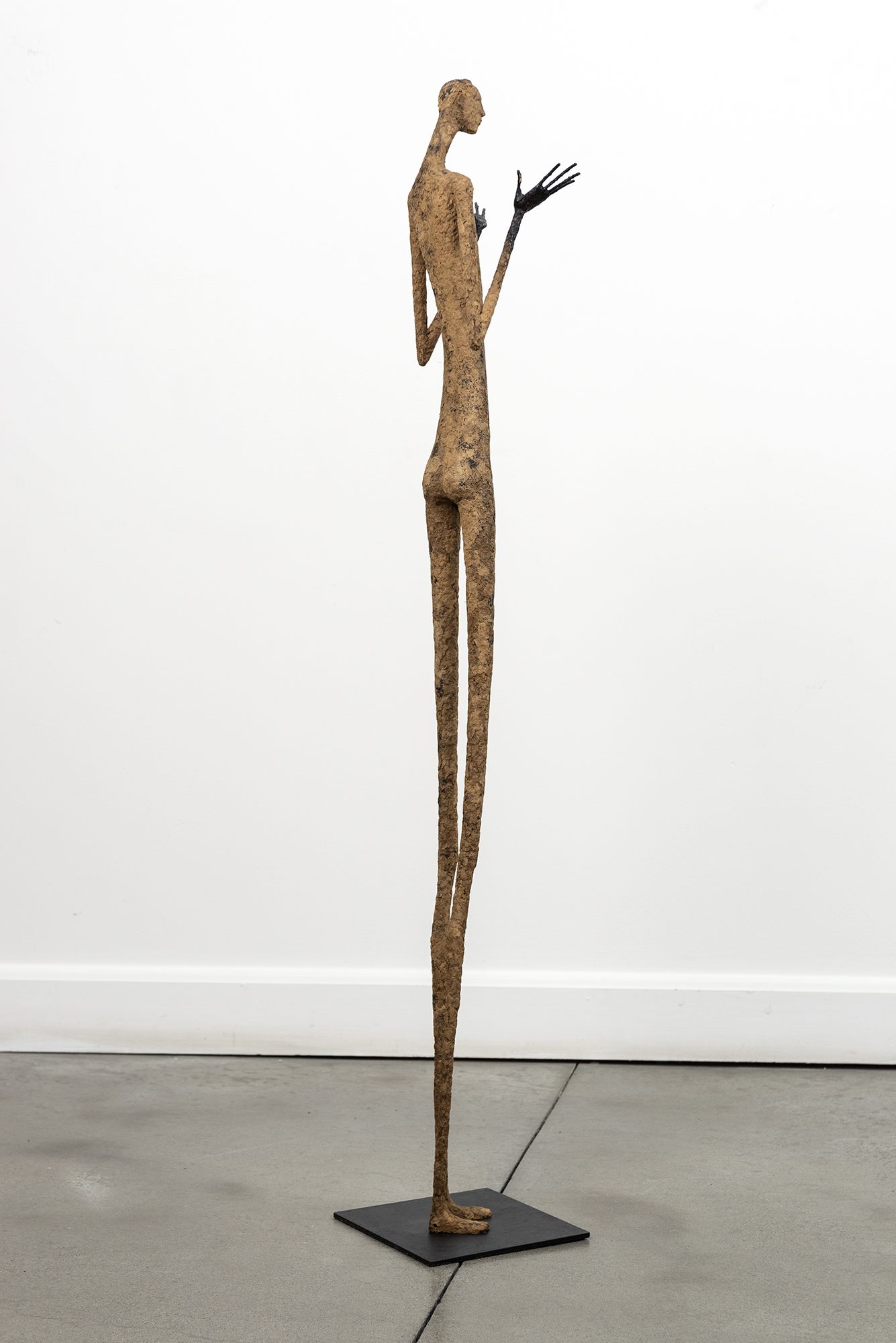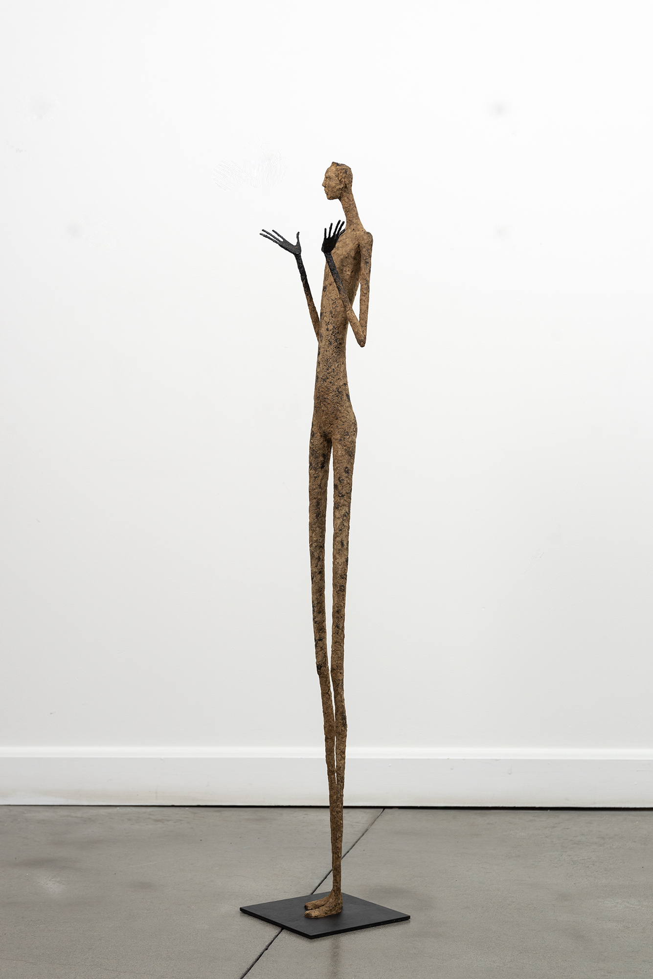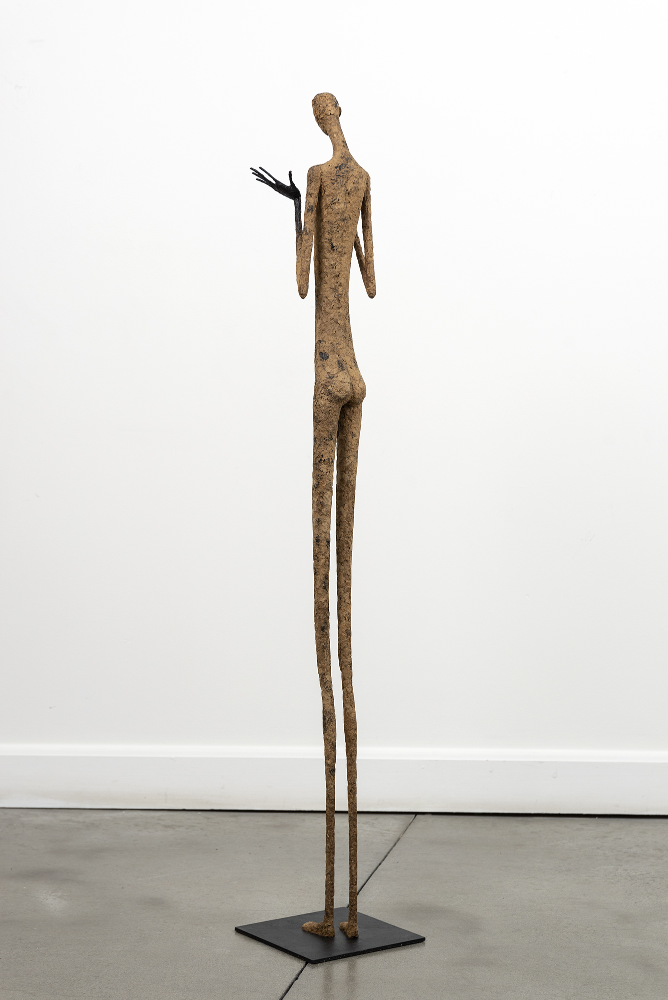 This contemporary figurative floor sculpture is created from papier mâché.For decades Paul Duval has reimagined the human form in charming sculptures beautifully handcrafted from papier mâché and wire. Duval’s series of indoor sculptures capture the human ‘condition’ in simple form. Each one possesses a visibly unique personality expressed as a gesture, a pose, and a mood that defines their character.