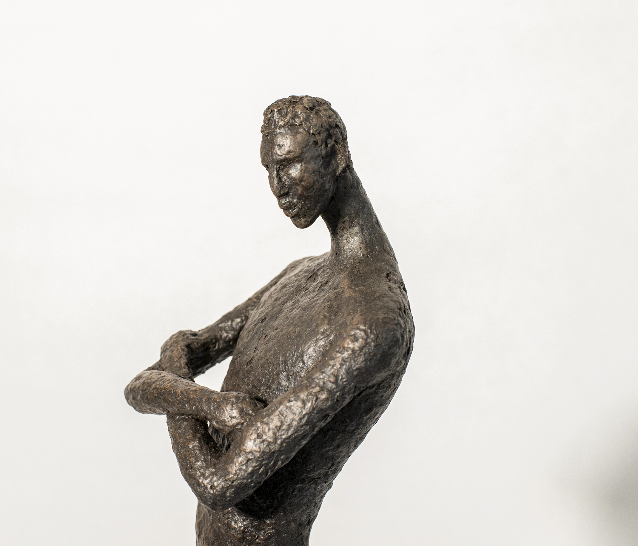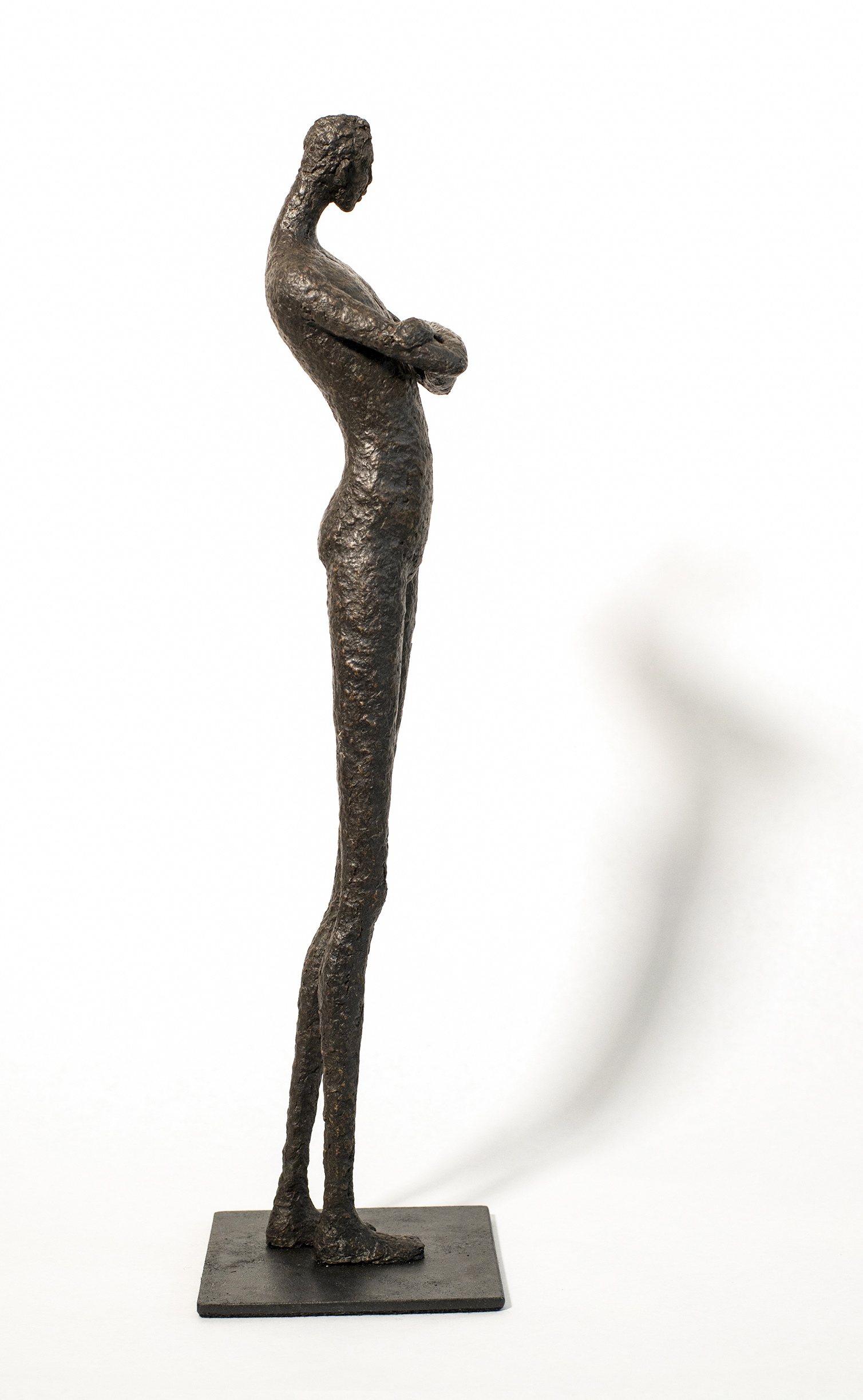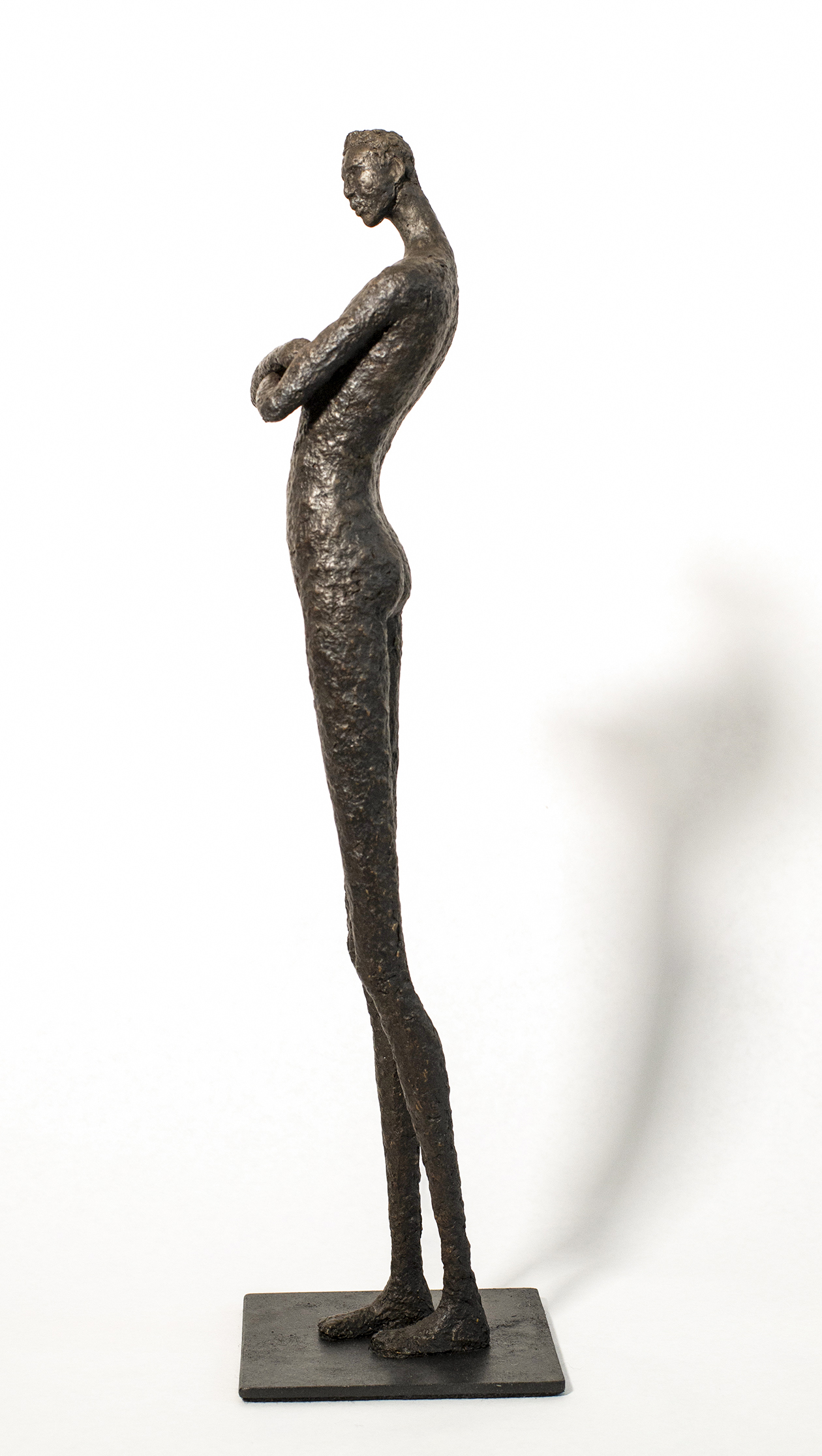He stands tall—a slender naked figure, arms crossed, head slightly tilted. This is Norbert. He is one of a series of figures sculpted from paper mache and wire by Paul Duval. The Quebec artist has imbued personality into each of these delightful table top pieces through a skillful use of gesture, pose, and colour.“Who are the witnesses of our daily life? I also try to make the viewer an integral part of the work as if their presence only adds dimension.” Paul Duval