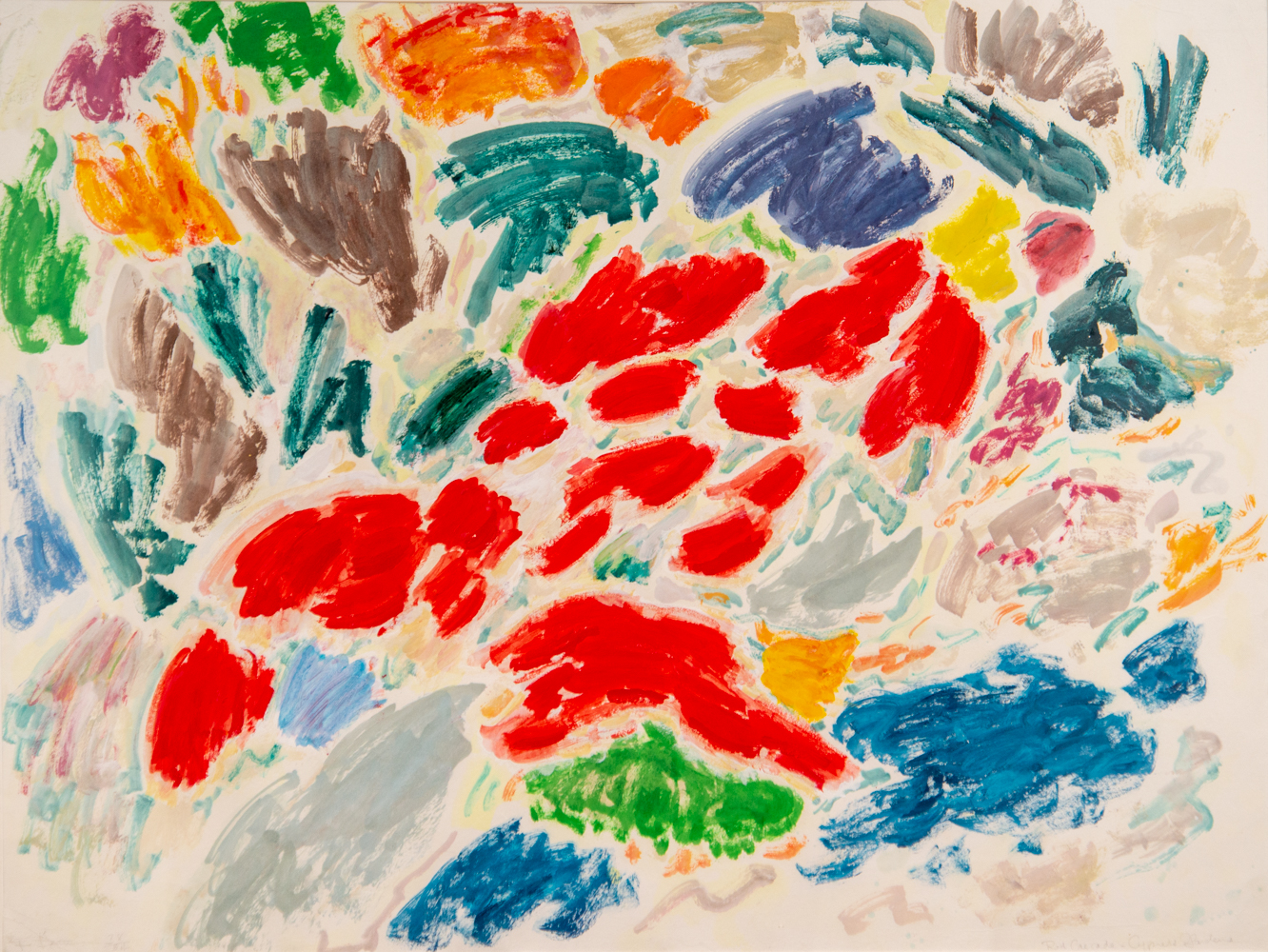 The kaleidoscope of colours and the dynamic form of nature are expressed in this joyful celebration of nature. Rendered in right red, yellow, blue, green, orange and yellow—the colours of this famous Florida garden pop against the white background.Considered to be one of Canada’s most significant abstract expressionists, Fournier received early praise from the distinguished NY art critic, Donald Kuspit, who described his work as that of an ‘exotic modernist.’ In the sixties, Fournier was part of a group of celebrated Toronto painters…Milly Ristvedt and David Bolduc, among them who explored the techniques and forms of abstraction.
