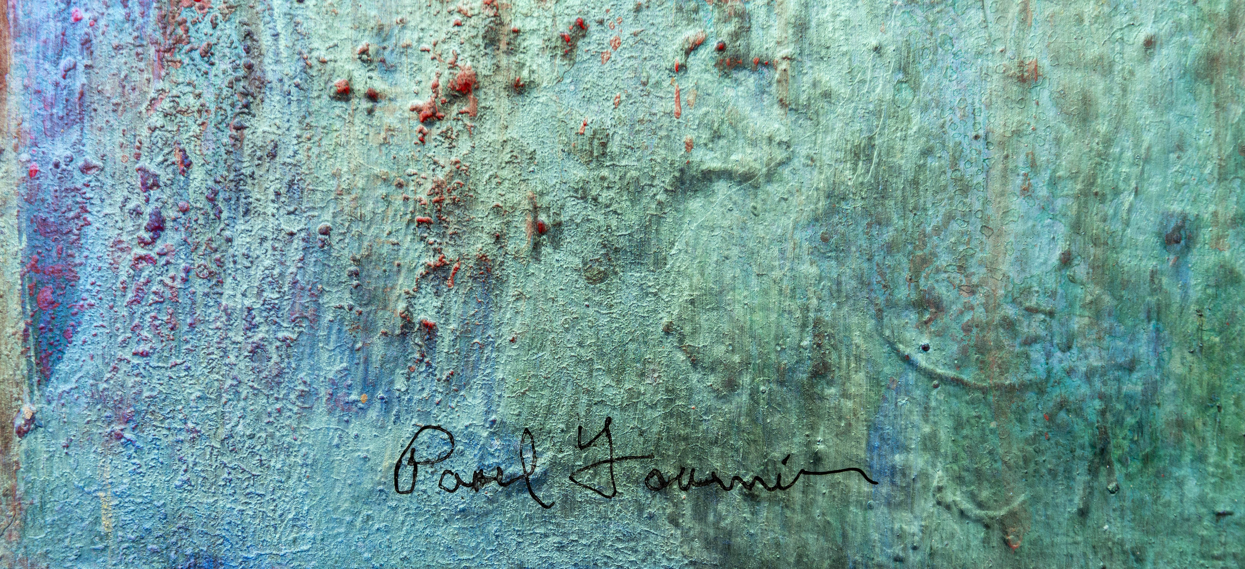 This contemporary abstract painting by Paul Fournier captures the tropical colours of the Caribbean.For more than six decades, the brilliant, colourful artwork of Paul Fournier has delighted critics and art lovers alike. Fournier is an important Canadian artist.