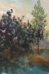 This contemporary landscape painting is by Peter Hoffer.The distinctive artwork of this Canadian artist lies somewhere between realism and impressionism. Lauded internationally for his ethereal landscapes Hoffer’s artwork is reminiscent of the idyllic visions of the 19th century romanticists.