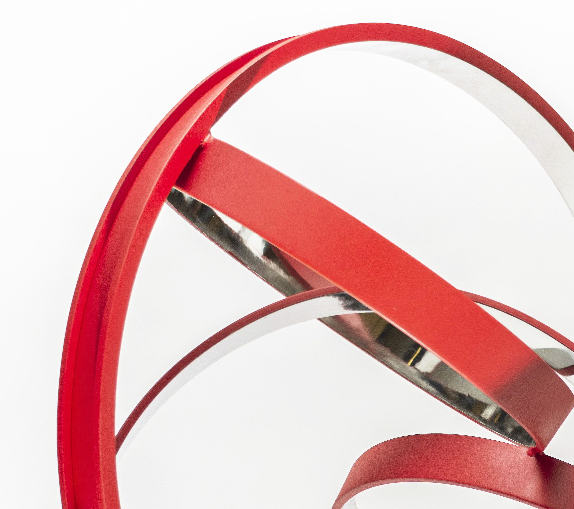 Four stainless steel rings, polished on the inside and matte red on the exterior, are curated into an elegant yet playful composition by Philippe Pallafray. This work is editioned and available by commission. This can also be commissioned in varying sizes. Please allow up to 6 weeks for commissions to be delivered.“What is removed from the sculptures, the voluntary emptiness, recalls the ephemeral and fragile nature of life.” Phillipe Pallafray