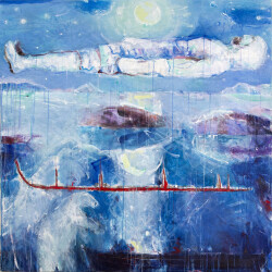Influences in his artwork are varied and derive from Shamanistic imagery of ancient peoples the world over (North American Indian, Inuit, Australian Aborigine, Norse, Oceanic, Siberian). Equally influential are Western and contemporary influences from various artists and art movements (such as: Edvard Munch, German Expressionism, Abstract Expressionism, Antoni Tapies, and Paterson Ewen, to name a few). His work involves combining and re-interpreting the iconography of various Indigenous peoples in a contemporary perspective. Earlier works challenged the history and mentality of colonialism while later works explore the journey of the human spirit. Rivet’s approach is introspective, involving the existential nature of being - the spiritual, the psychic and the physical aspects of human experience.