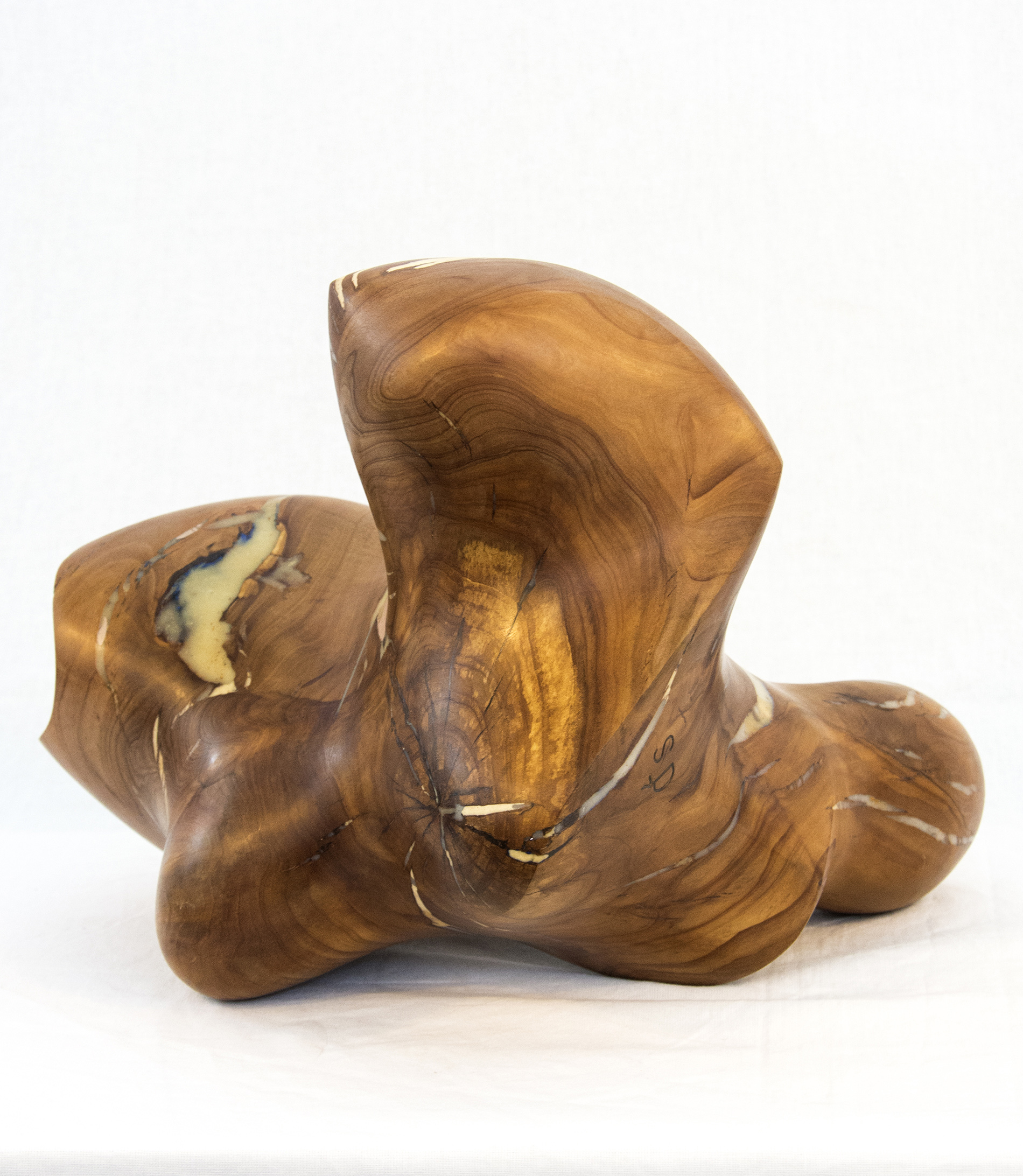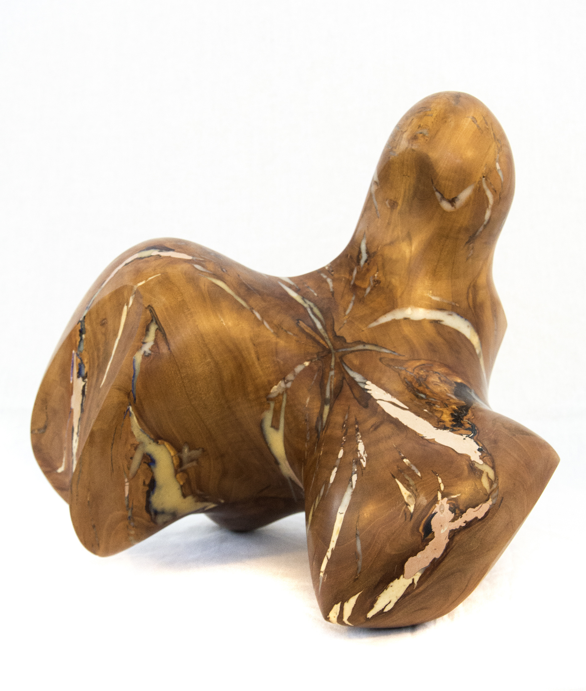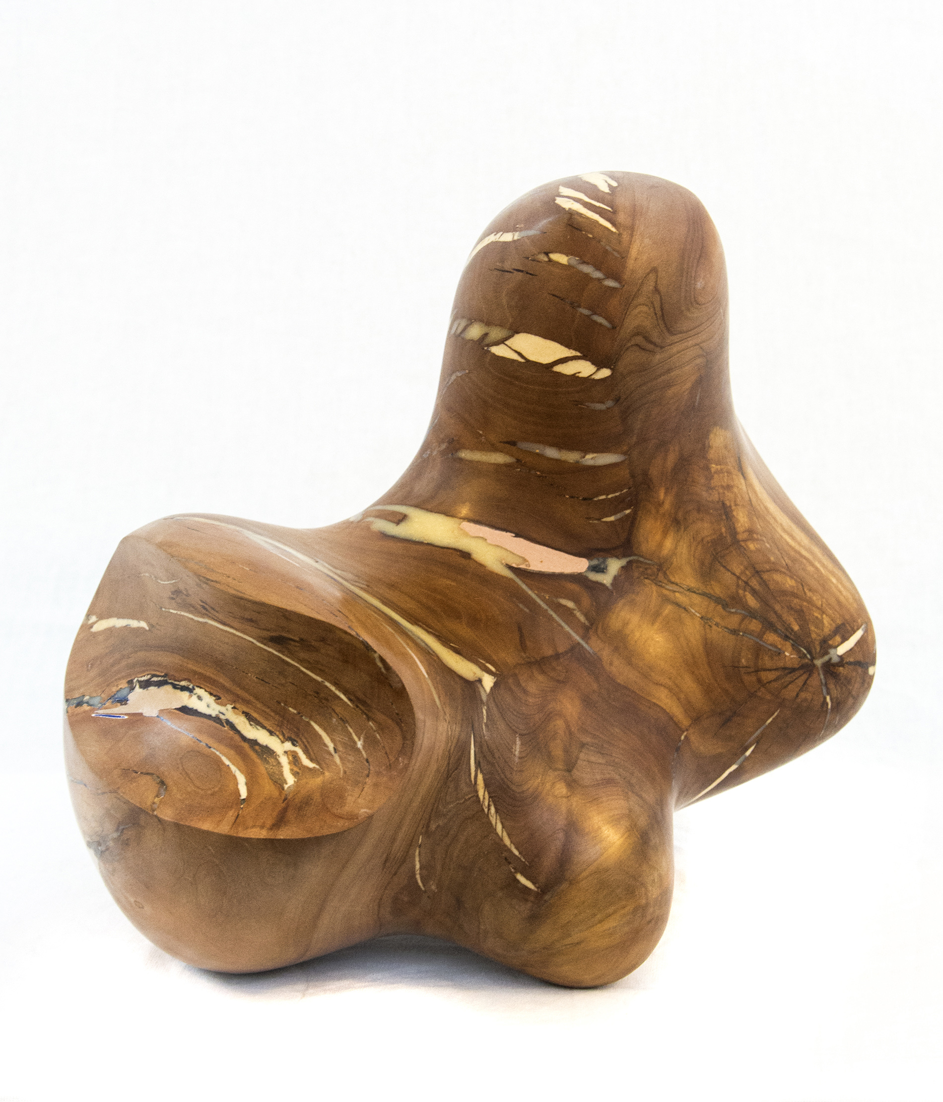 Applewood burls from orchards in Prince Edward County, Ontario were collected by master sculptor Shayne Dark to create this unique piece, one of a series.Historically, local apple farmers were paid by the government to cut down healthy mature apple trees to help control the market for apples. Dark stripped the bark from the remaining dense knotty burls and allowed them to dry for several years. While repairing the cracks in the dried burls, he was reminded of the Japanese art of fixing broken pottery--Kintsugi. Their philosophy views breakage and repair as part of the history of an object. Dark decided not to coat the burls in paint, leaving their natural beauty exposed.