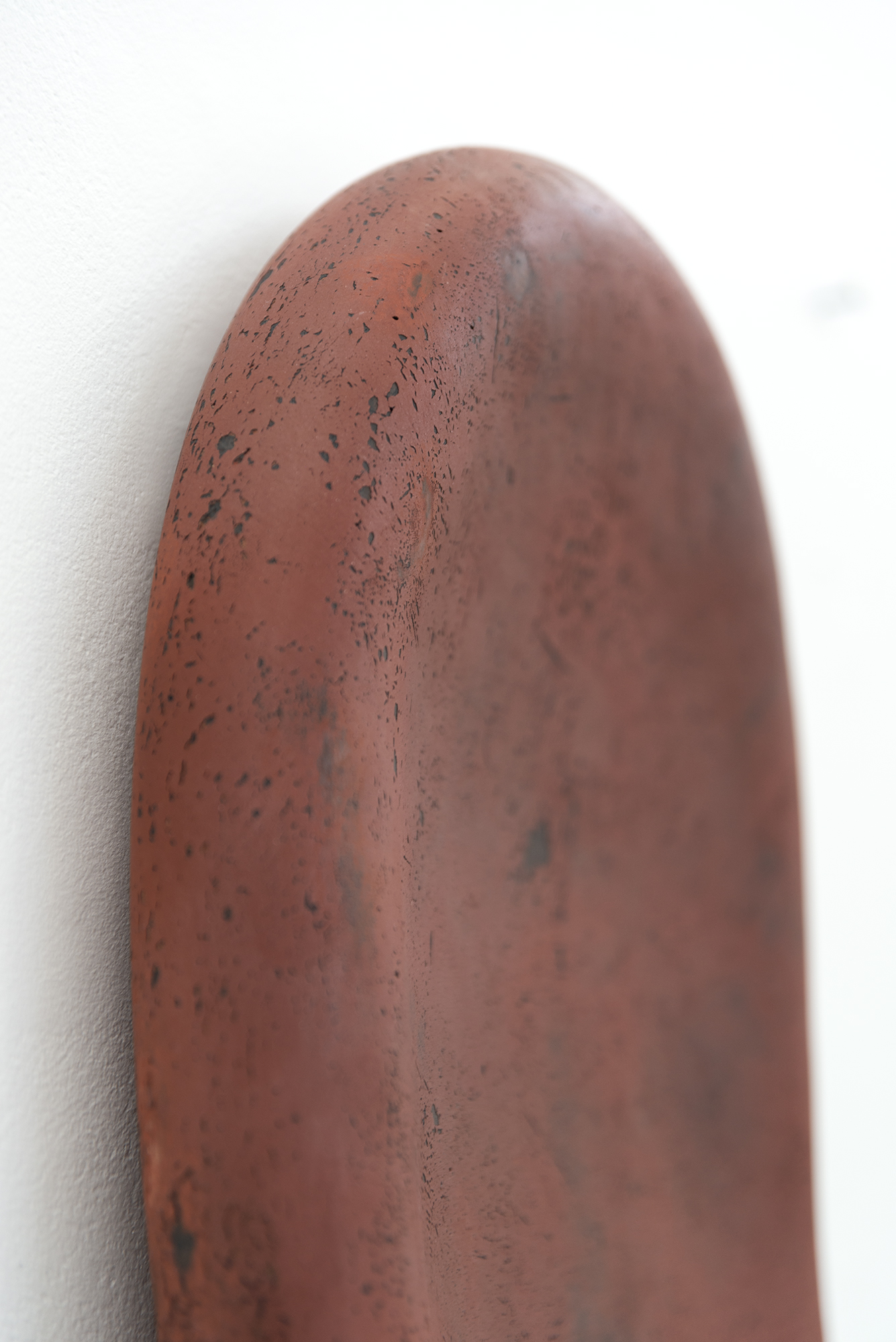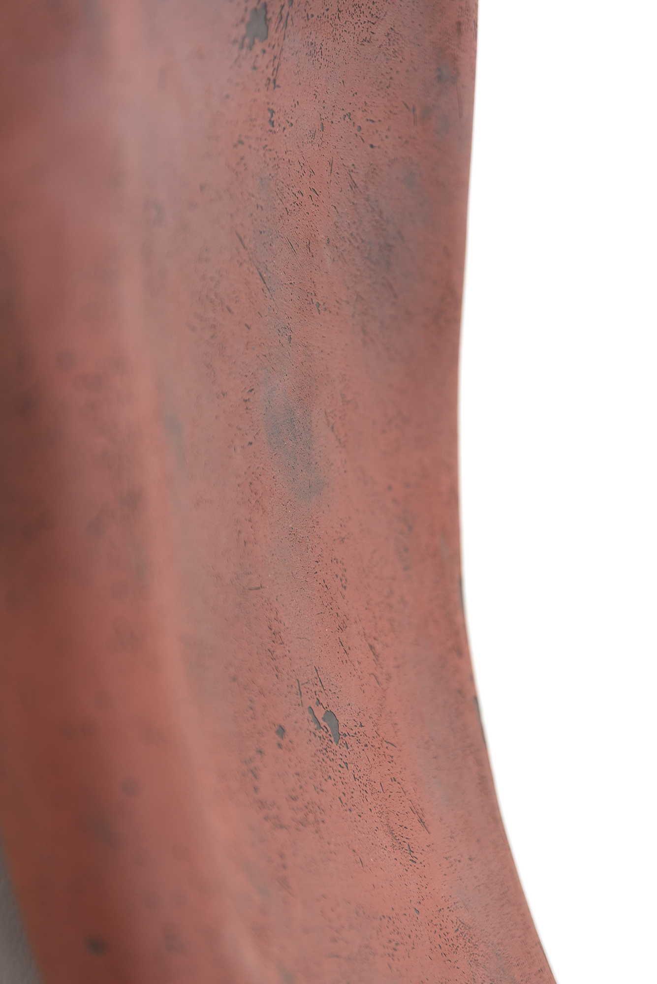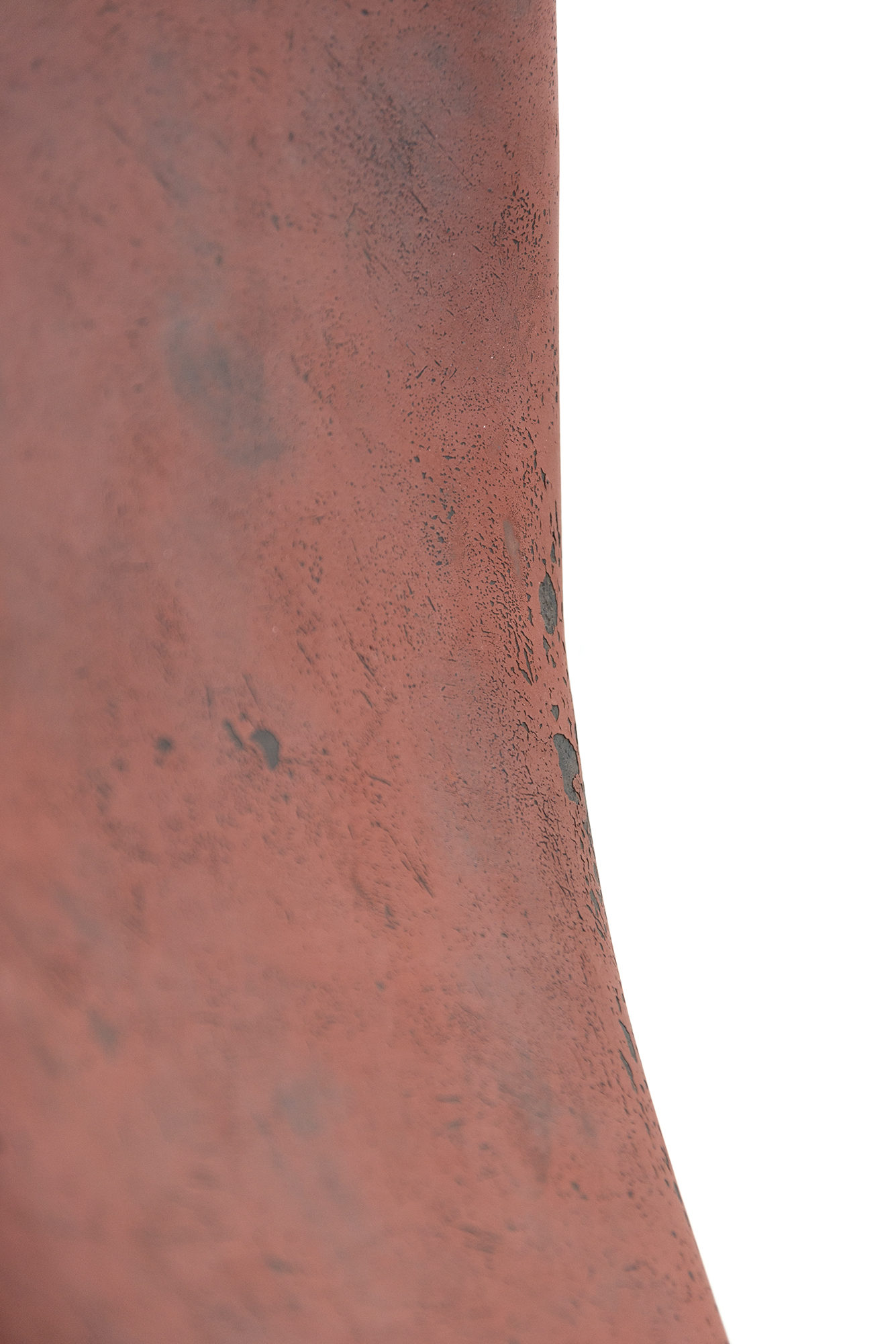 He uses slip cast moulding—a technique that allows him to hand-build shapes that cannot be easily made on a potter’s wheel. The elongated organic form of this piece is inspired by nature. Its rich red coloured surface is achieved through meticulous layering of clay that adds intriguing details. Cracks and markings naturally appear as each layer dries, shrinks and reveals its ‘underbelly.’ This striking effect is a signature of Heinemann’s work. The catchy title is named after an iconic blues track by the American singer, Jay Hawkins, originally released in 1956. Heinemann loves music.