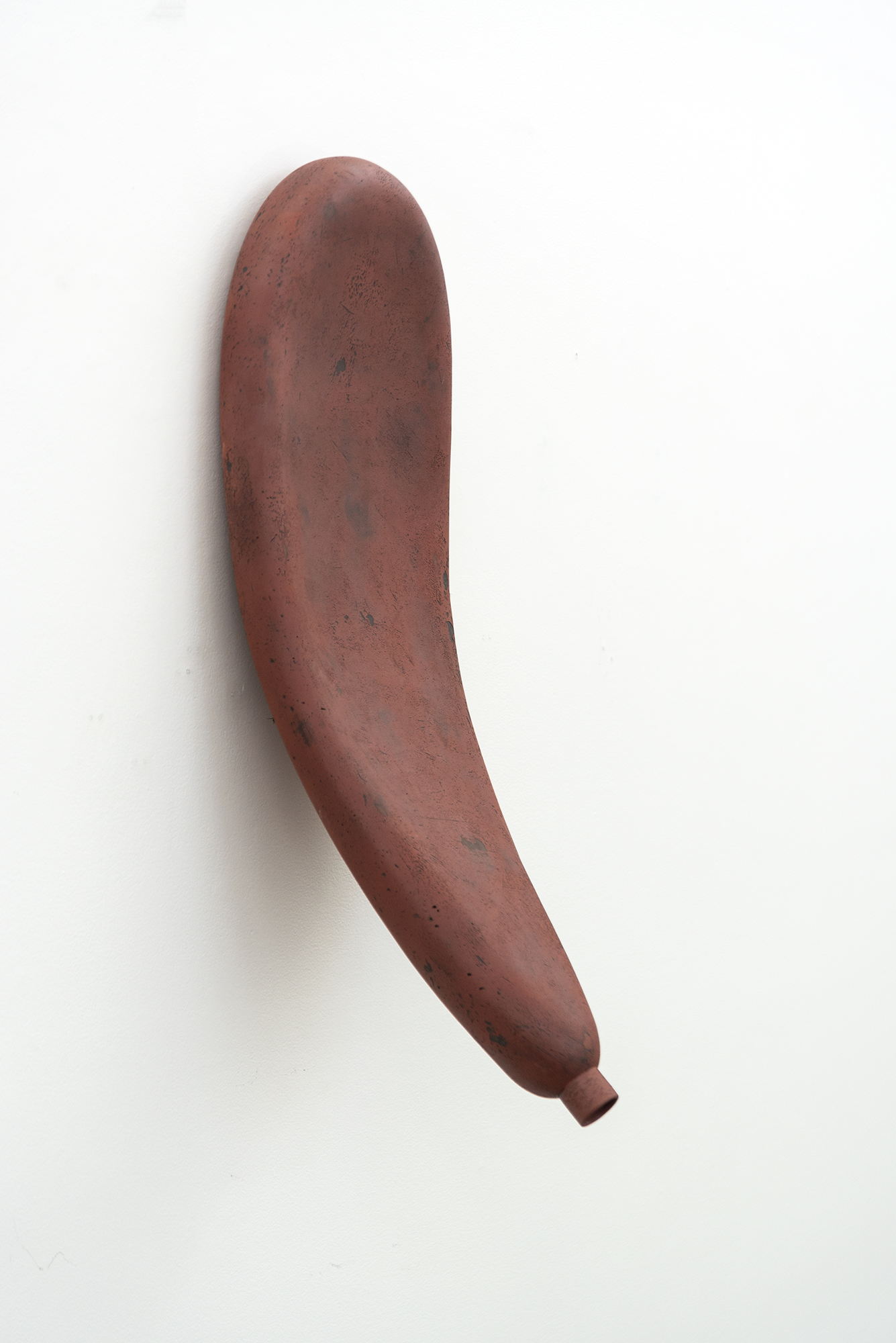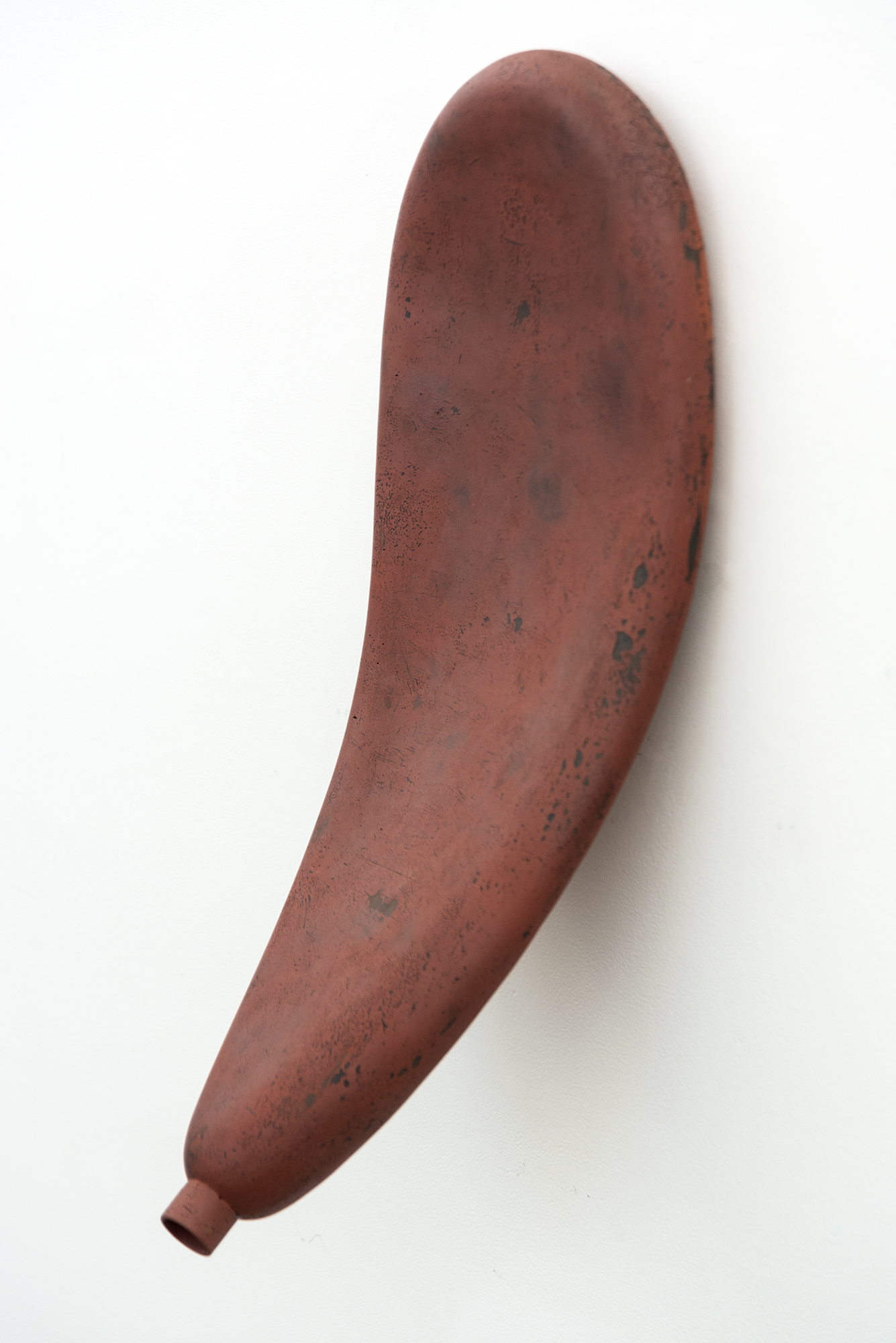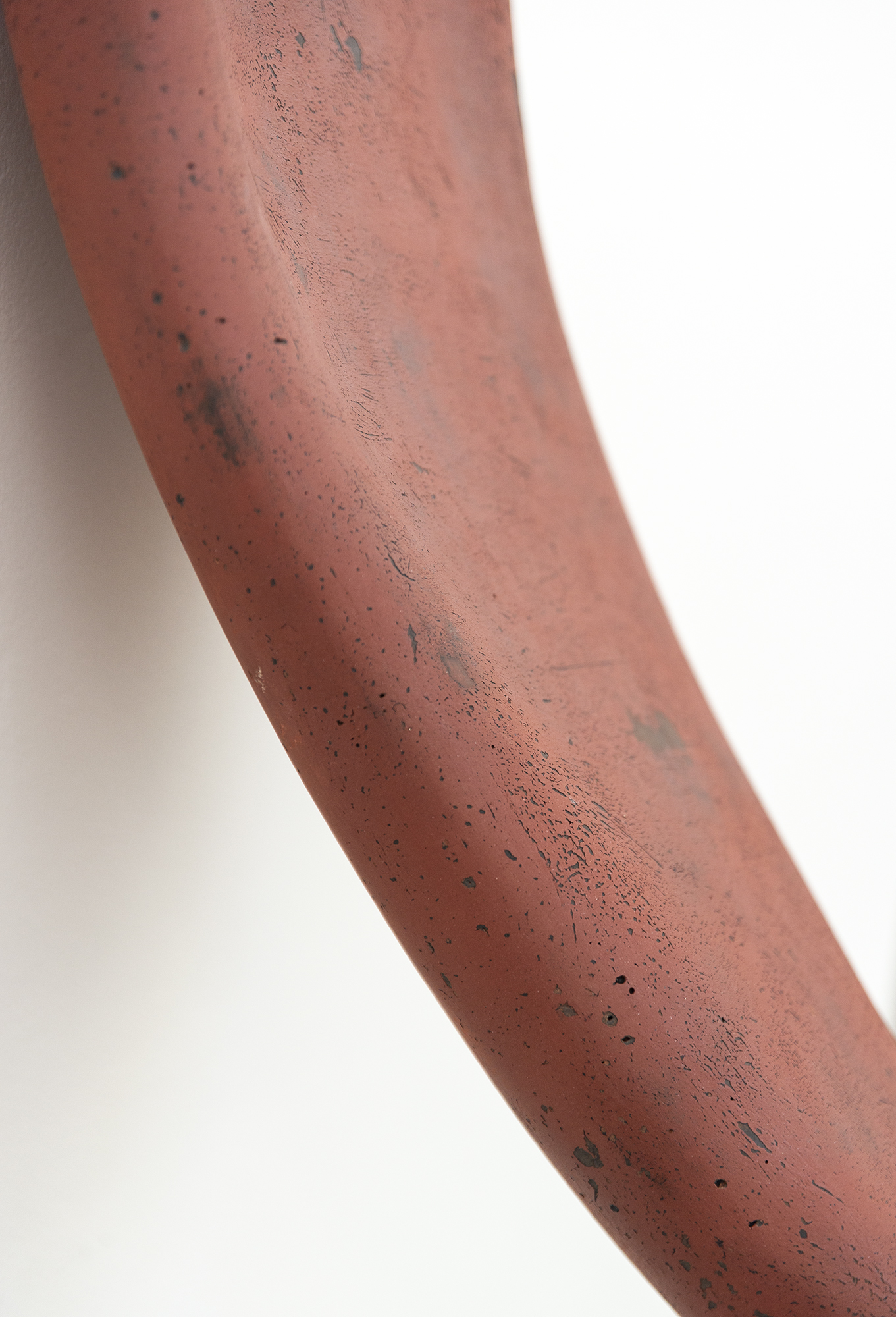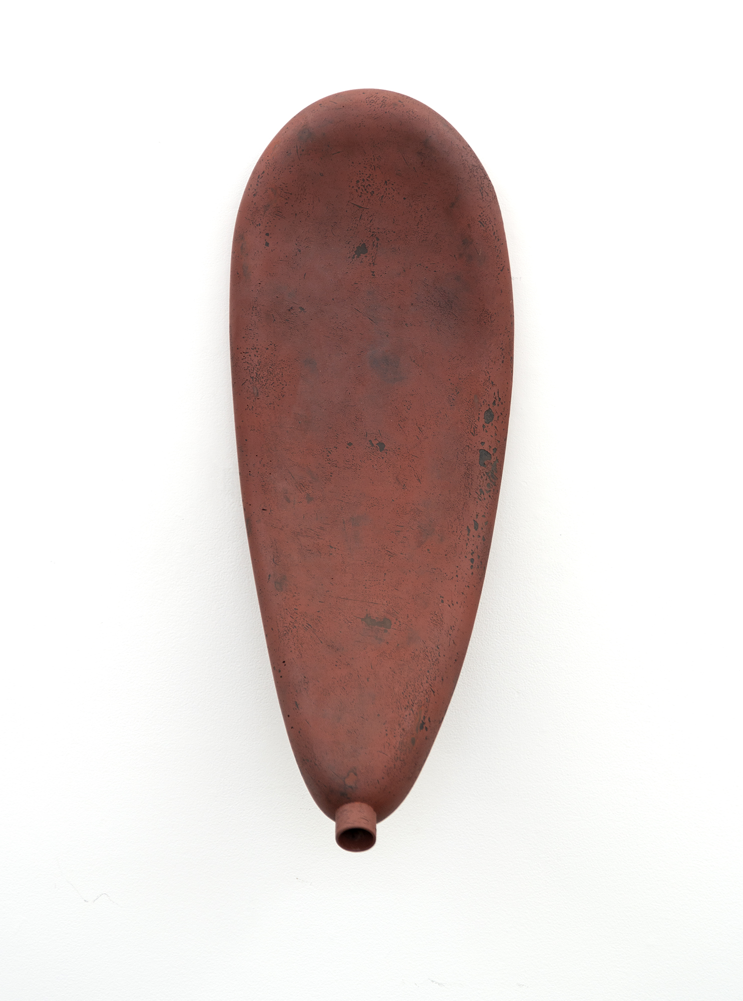 He uses slip cast moulding—a technique that allows him to hand-build shapes that cannot be easily made on a potter’s wheel. The elongated organic form of this piece is inspired by nature. Its rich red coloured surface is achieved through meticulous layering of clay that adds intriguing details. Cracks and markings naturally appear as each layer dries, shrinks and reveals its ‘underbelly.’ This striking effect is a signature of Heinemann’s work. The catchy title is named after an iconic blues track by the American singer, Jay Hawkins, originally released in 1956. Heinemann loves music.