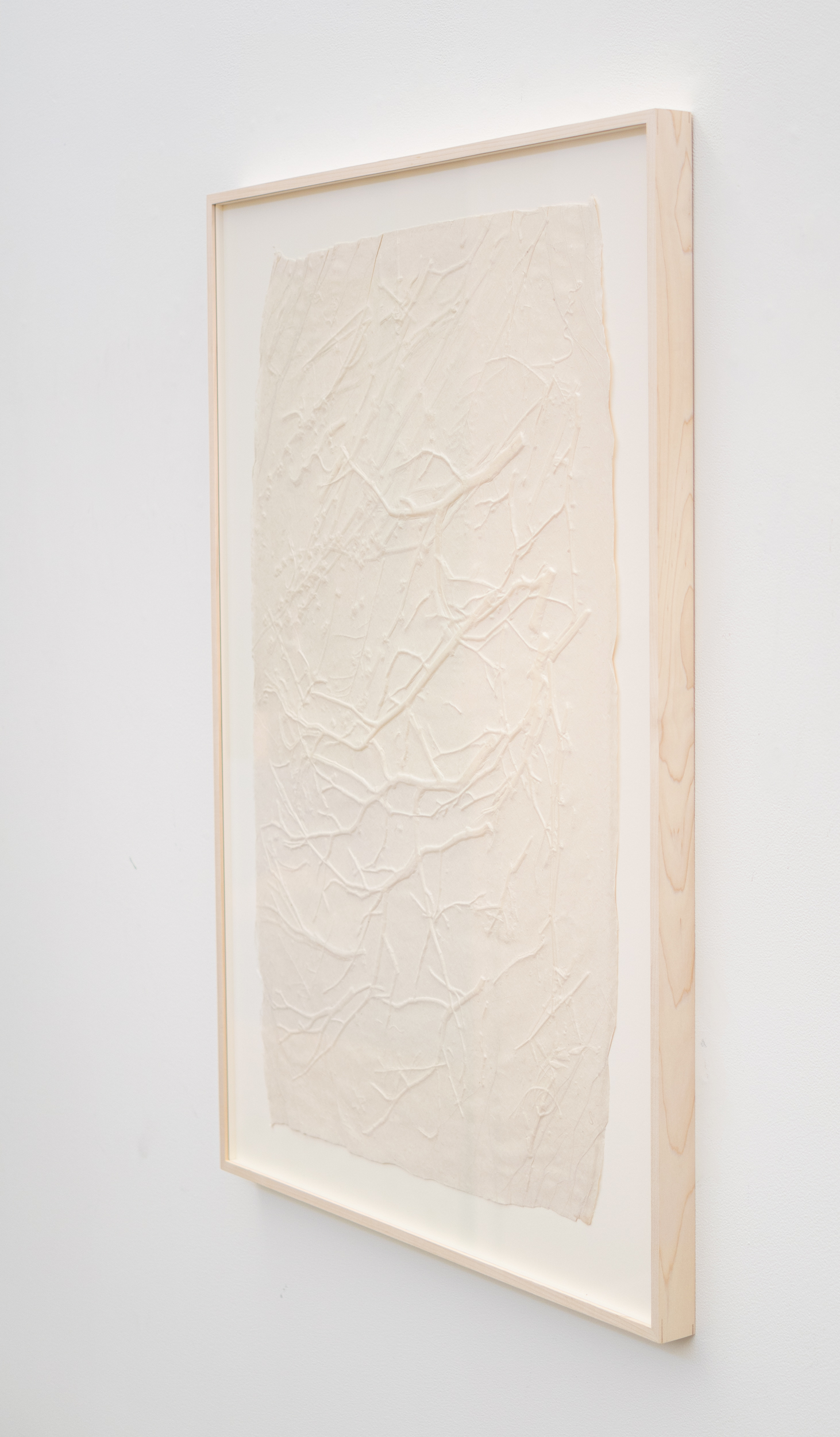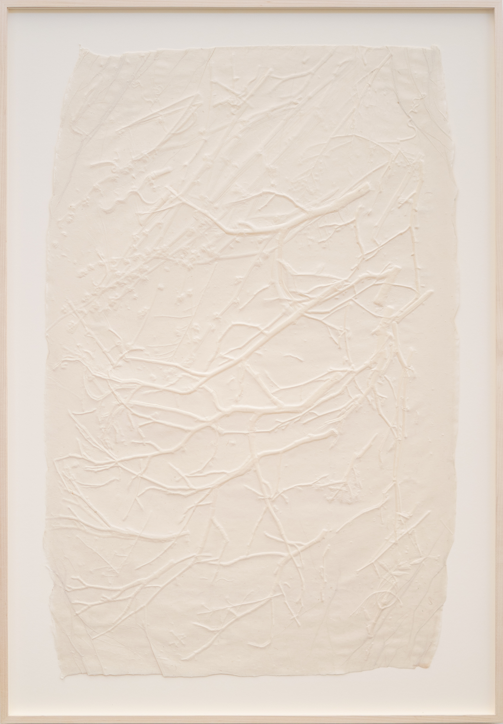 The award winning ceramicist’s work in clay has influenced the delicate sculptural design of her printmaking. Like her ceramic artwork, this ‘white-on-white’ monoprint is sculptural in nature and appears to capture the fine details of tree branches. Organic tracings are embossed onto the paper so that each image is original. No one print is ever exactly the same. One of two.