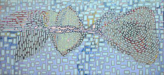 Viktor Mitic's rain paintings are emotional landscapes that are realized en plein air, incorporating gentle showers, thunderstorms, and even hail. These elements create surprise encounters with the oil paint that Mitic then fluidly builds into his process. Gary Michael Dault observes that, "there is a strong suggestion of synaesthesia with sound and colour in these paintings, as if a visual music present in their composition lifts them to a multisensory expression." And this of course calls to mind the father of abstract painting, Wassiliy Kandinsky, who envisioned his painting as a medium through which to achieve the highest form of being. Mitic's rain paintings are likewise transcendent with their large scale, muted palette, and smooth structuring of coloured forms.