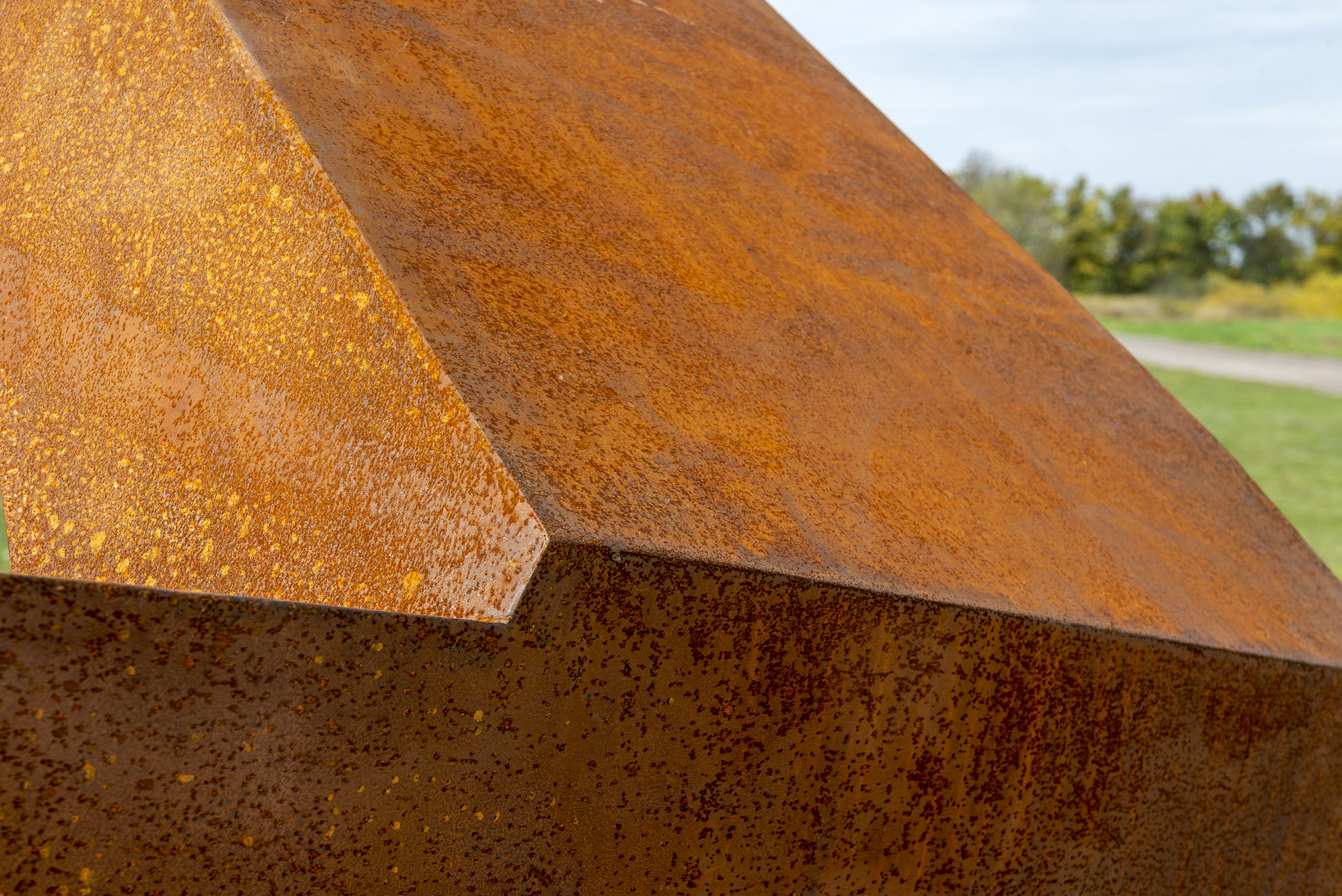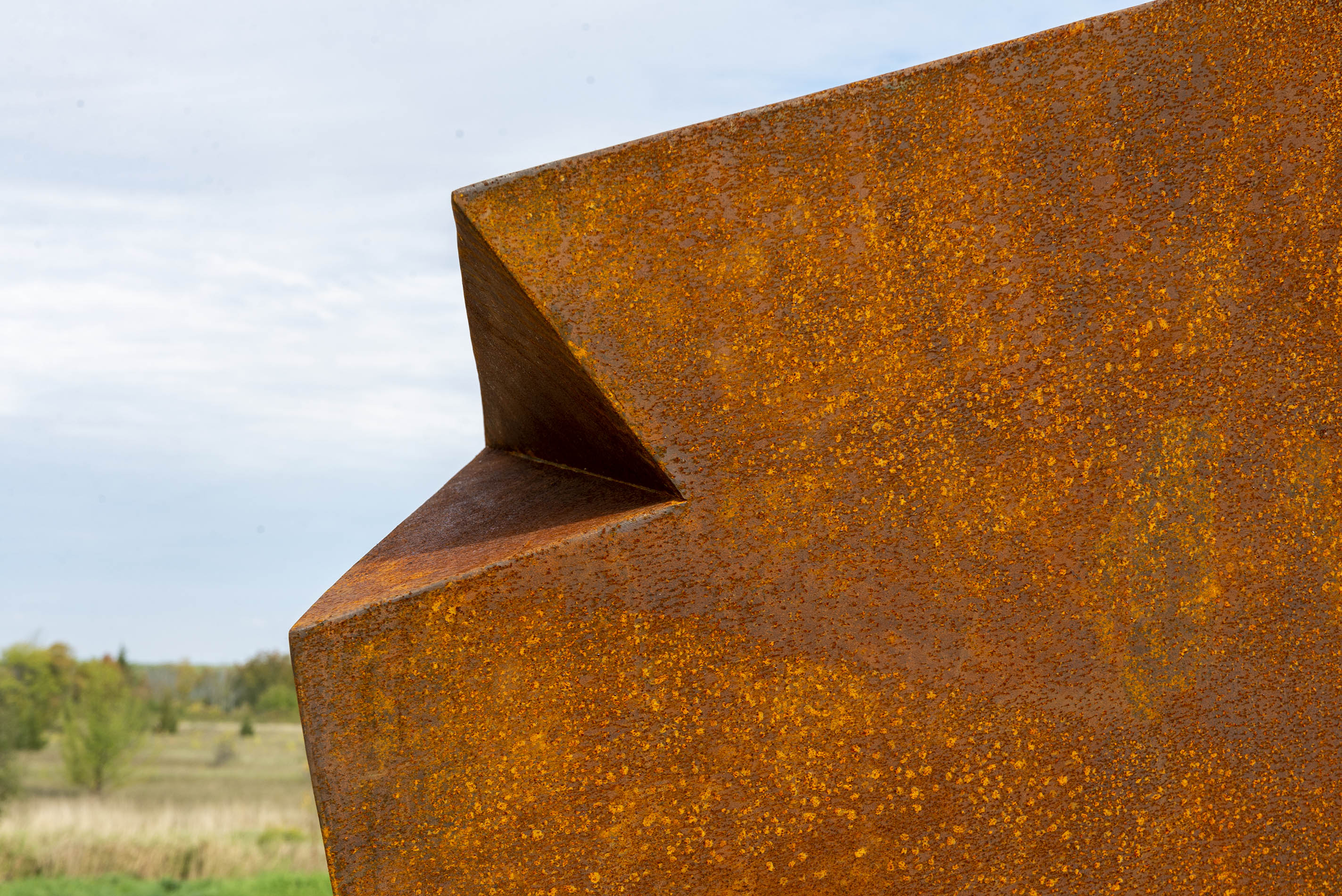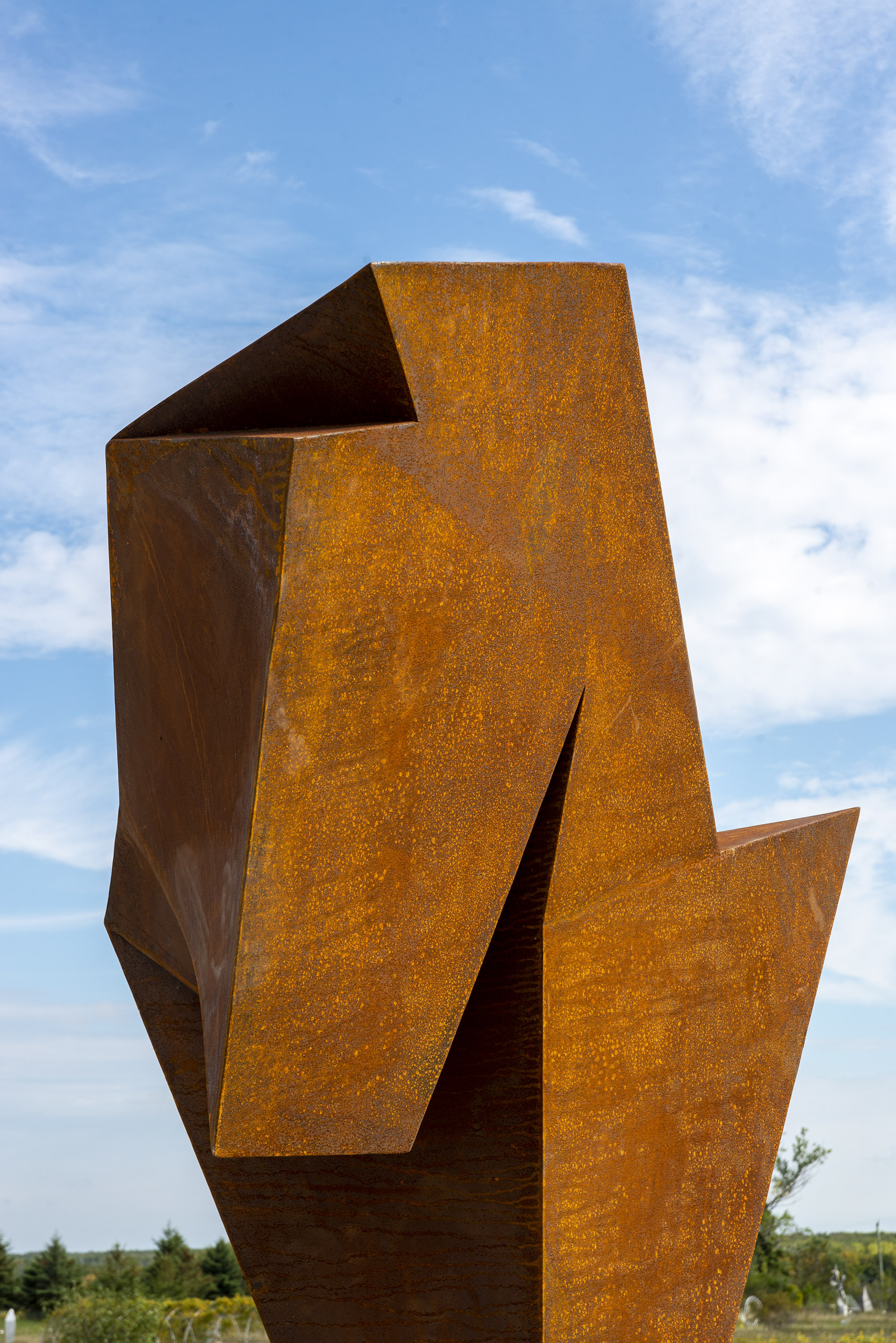 This monumental contemporary outdoor steel sculpture is by Viktor Mitic.This compelling sculpture by Viktor Mitic is named for Sirius, the brightest star in the night sky. Forged from corten steel, its rust-coloured patina accentuates its dynamic form. Angles meet fluid curves in this piece, which appear to marry both geometric and abstracted shapes. Viktor Mitic has garnered an international reputation for his provocative and imaginative contemporary artwork, including sculptures and paintings.