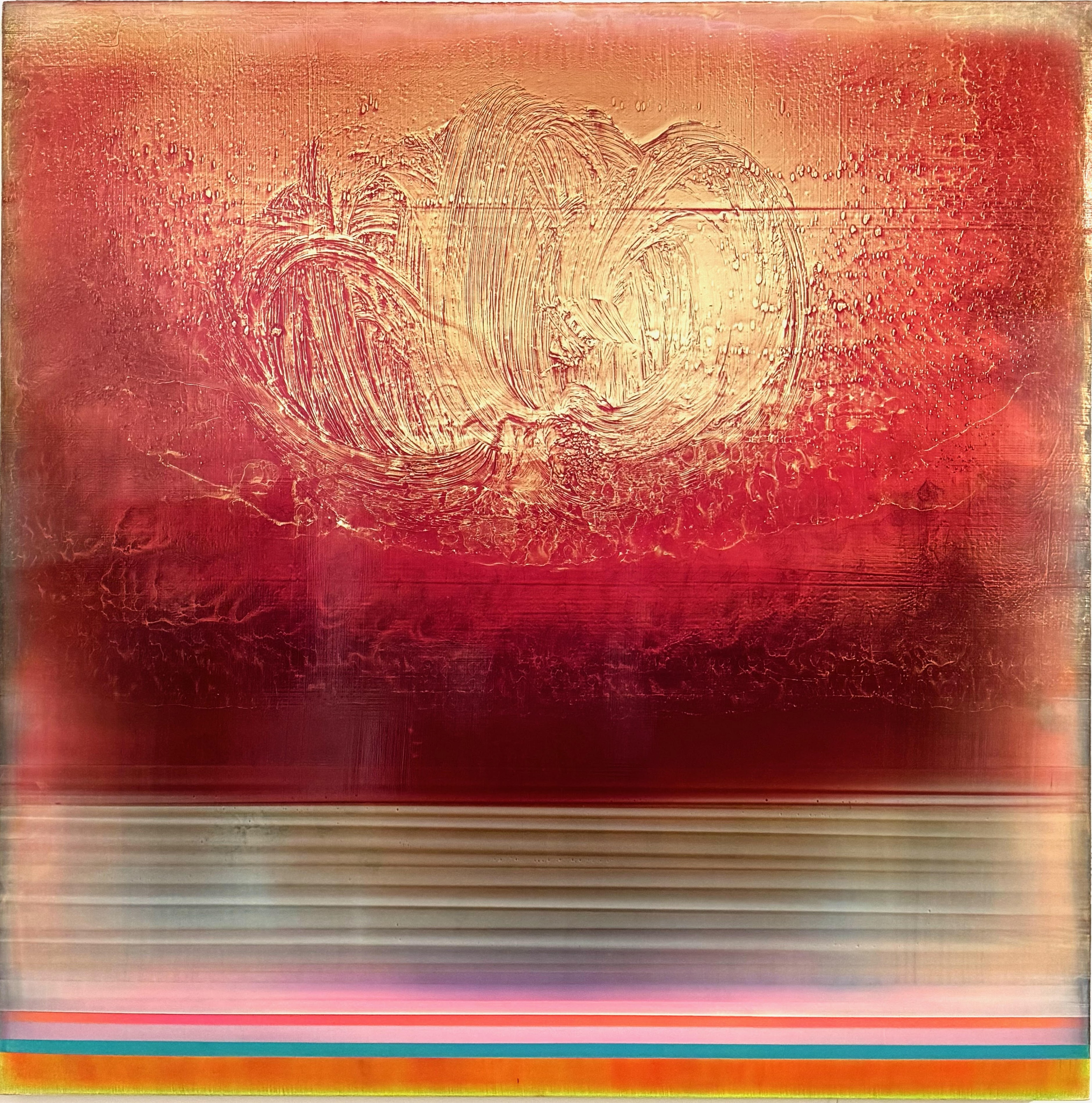 The title resonates with contemporary artist Alice Teichert as confluence describes the magical interplay of colour, form and light evident in each of her deeply evocative compositions. For more than four decades, Alice Teichert’s luminous art has captivated critics and collectors on the international stage. She describes her ethereal artwork as "visual poetry"—an invitation to enter another "realm" and experience "colour in all its beauty." Her signature bold palette, the curated markings and lines, the layered visible textures that blend transparent and translucent colour—some glossy, others frosted coalesce creating remarkable almost holographic depth.