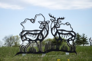 View the ‘Woodlands After Dark”—a uniquely compelling installation-a collaboration between Jeremy Freiburger and Indigenous Mohawk artist Adam Monture. Monture’s paintings of woodland animals—bears, deers and herons have been re-envisioned as 3-D metal sculptures accented by LED lights.